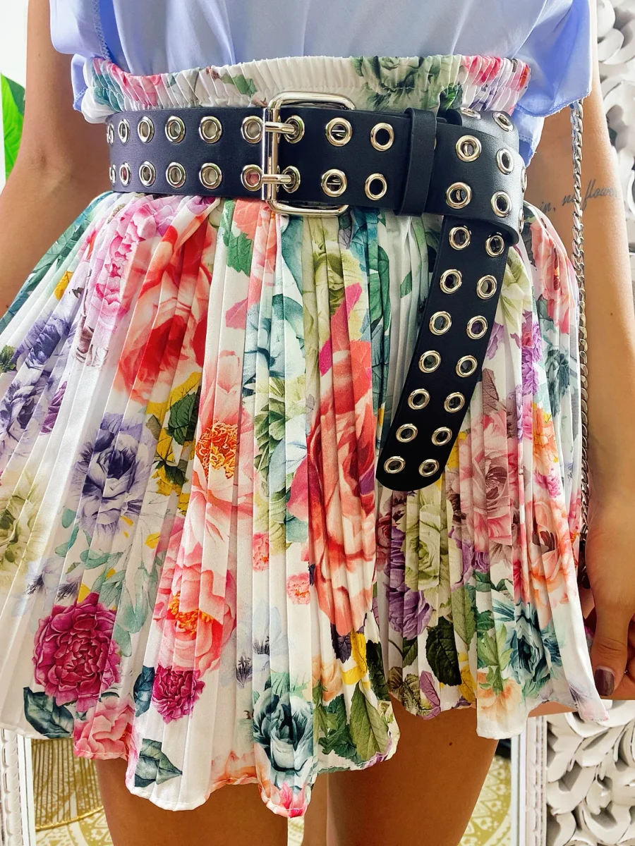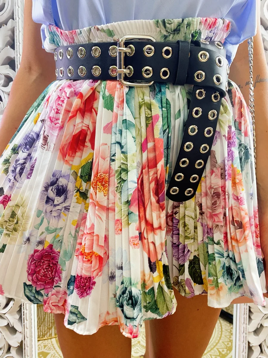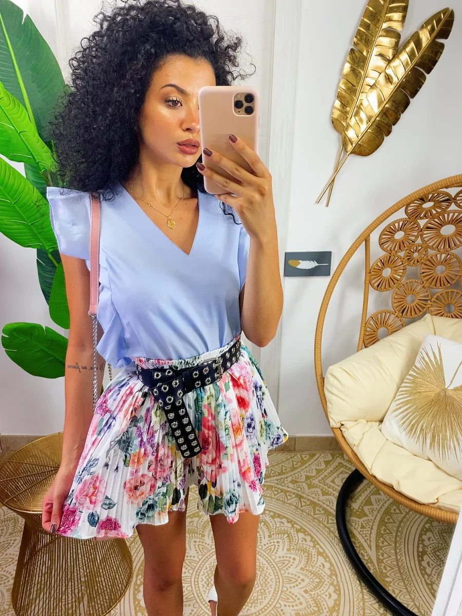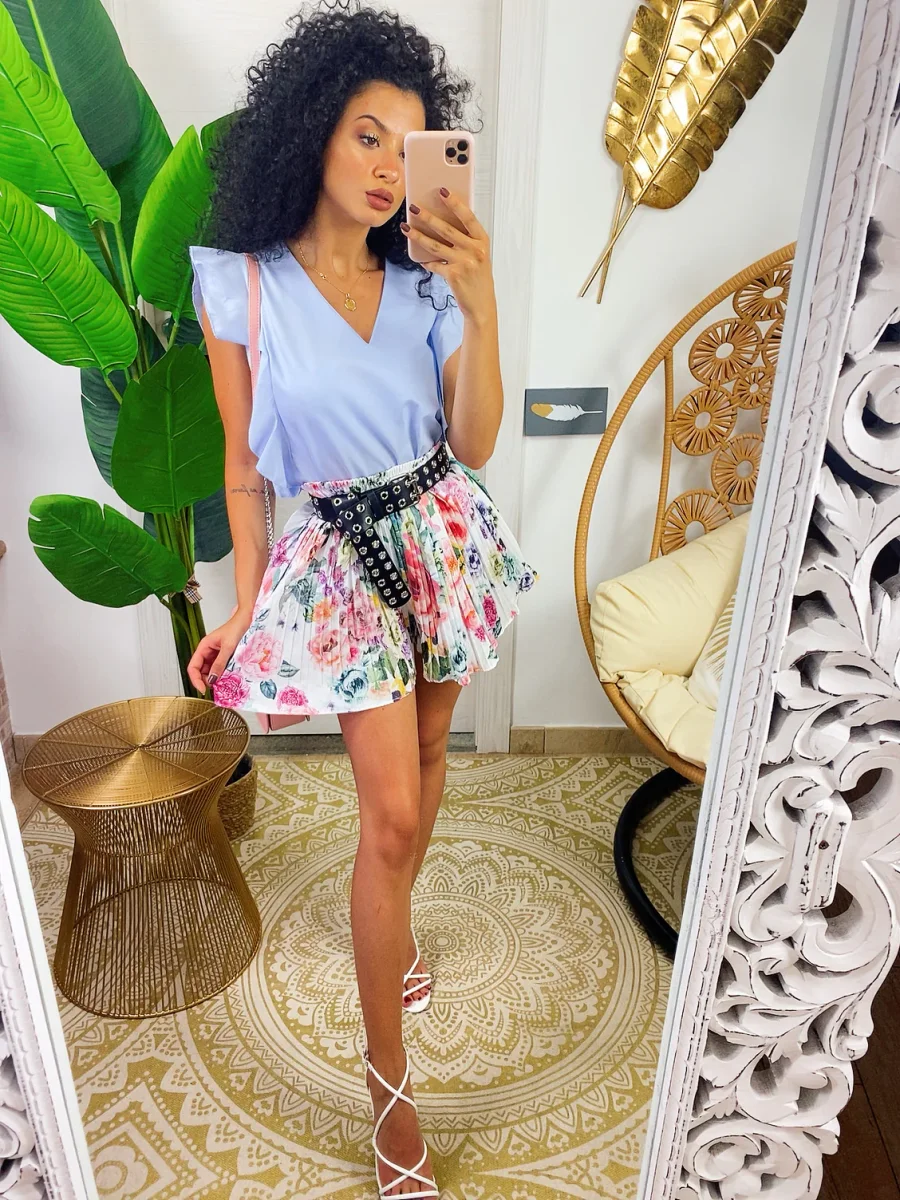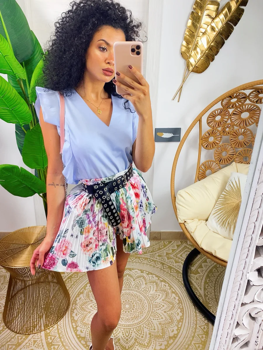Short a pieghine con fiori sfumati lilla