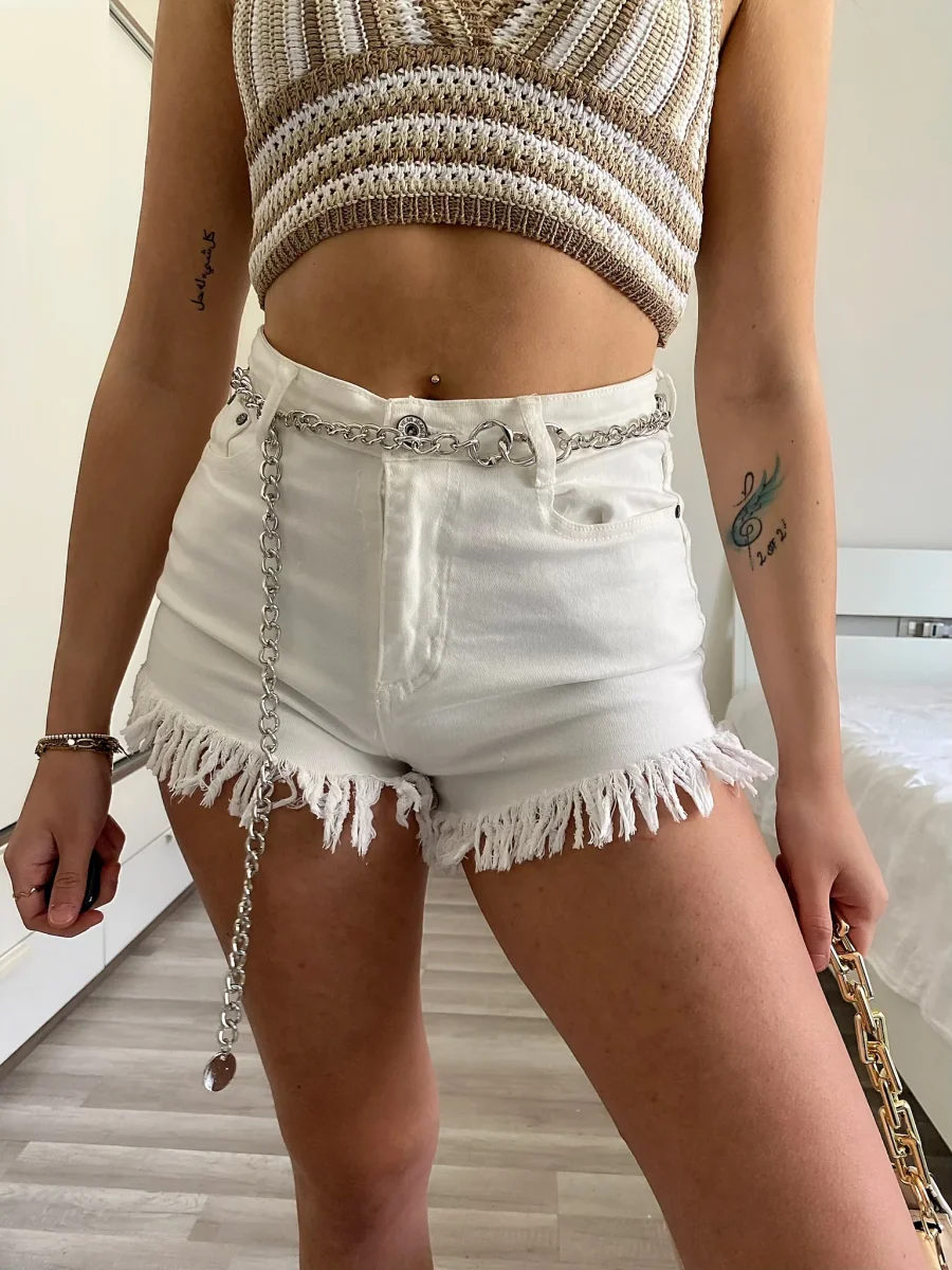 Short in jeans con frange nel sotto. In foto taglia M