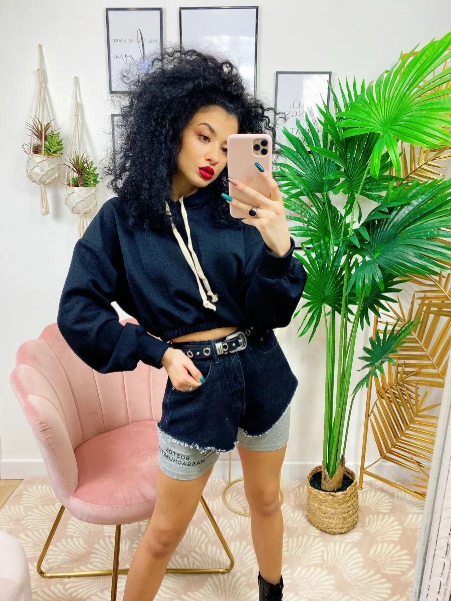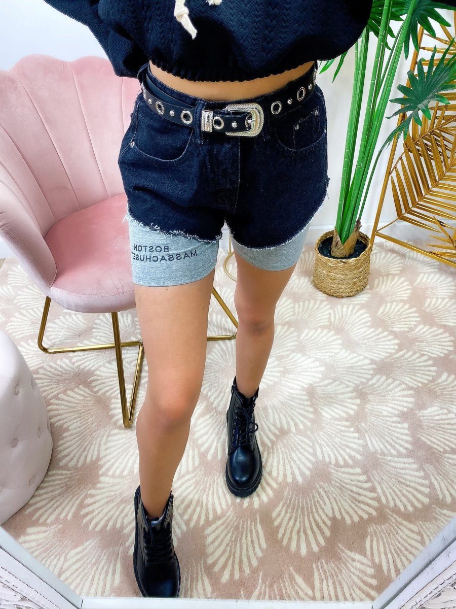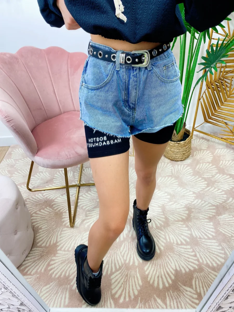 Short in jeans con leggins a contrasto incluso. Due pezzi separati.