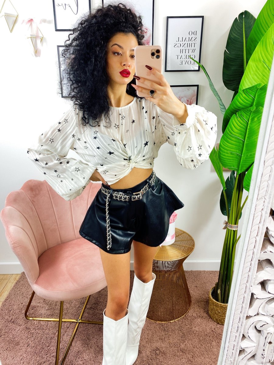 short in eco-pelle con tasche modello ampio sotto elasticizzato in vita.