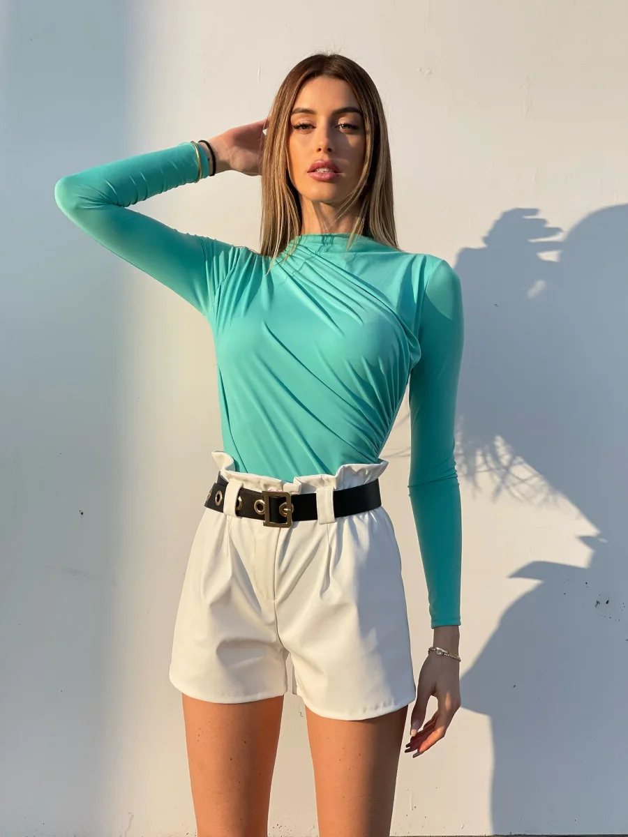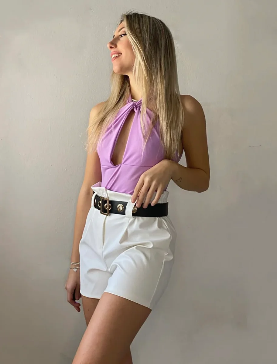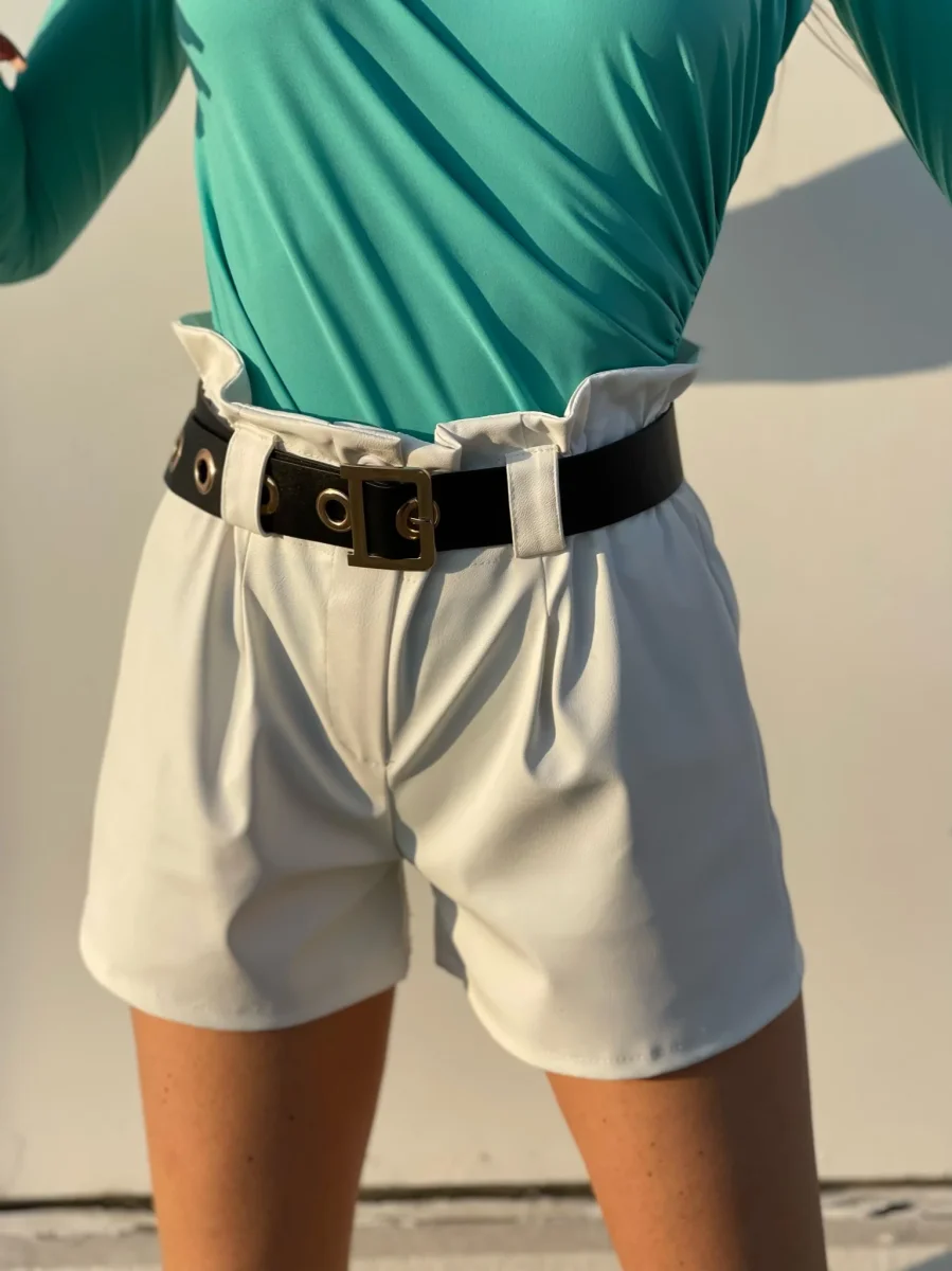 Short in ecopelle con cintura tono su tono. Vita elasticizzata