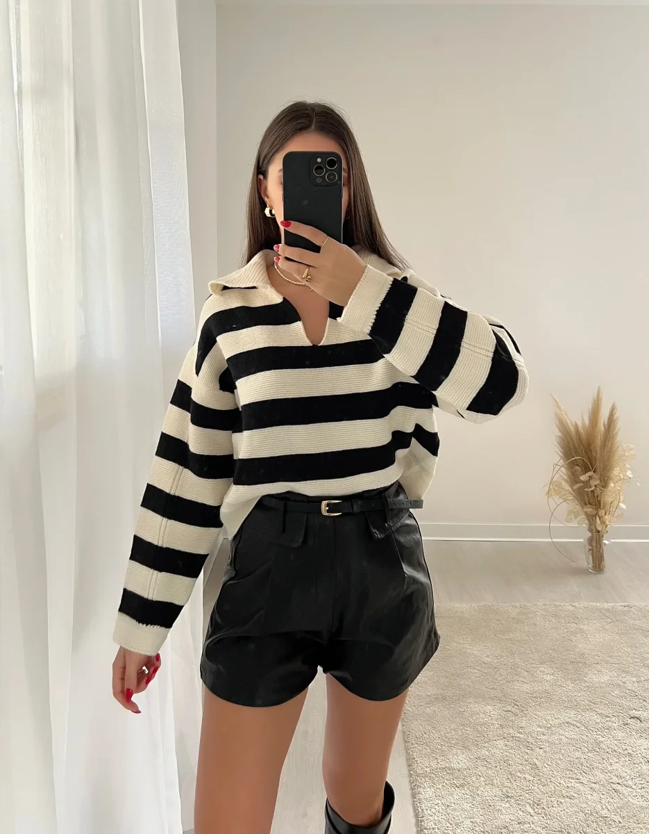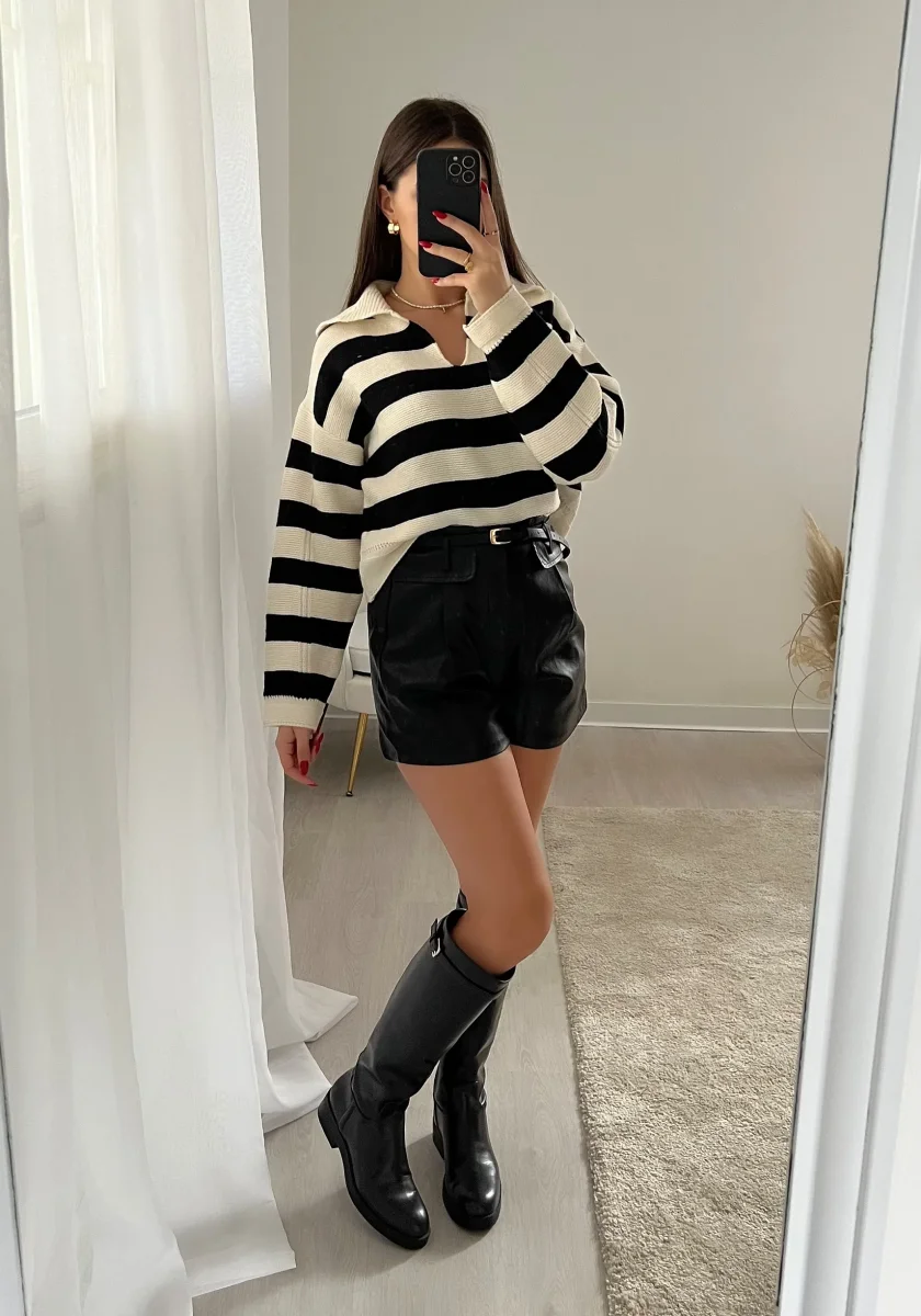 Short in ecopelle con tasche e cintura tono su tono con dettaglio oro. In foto taglia S