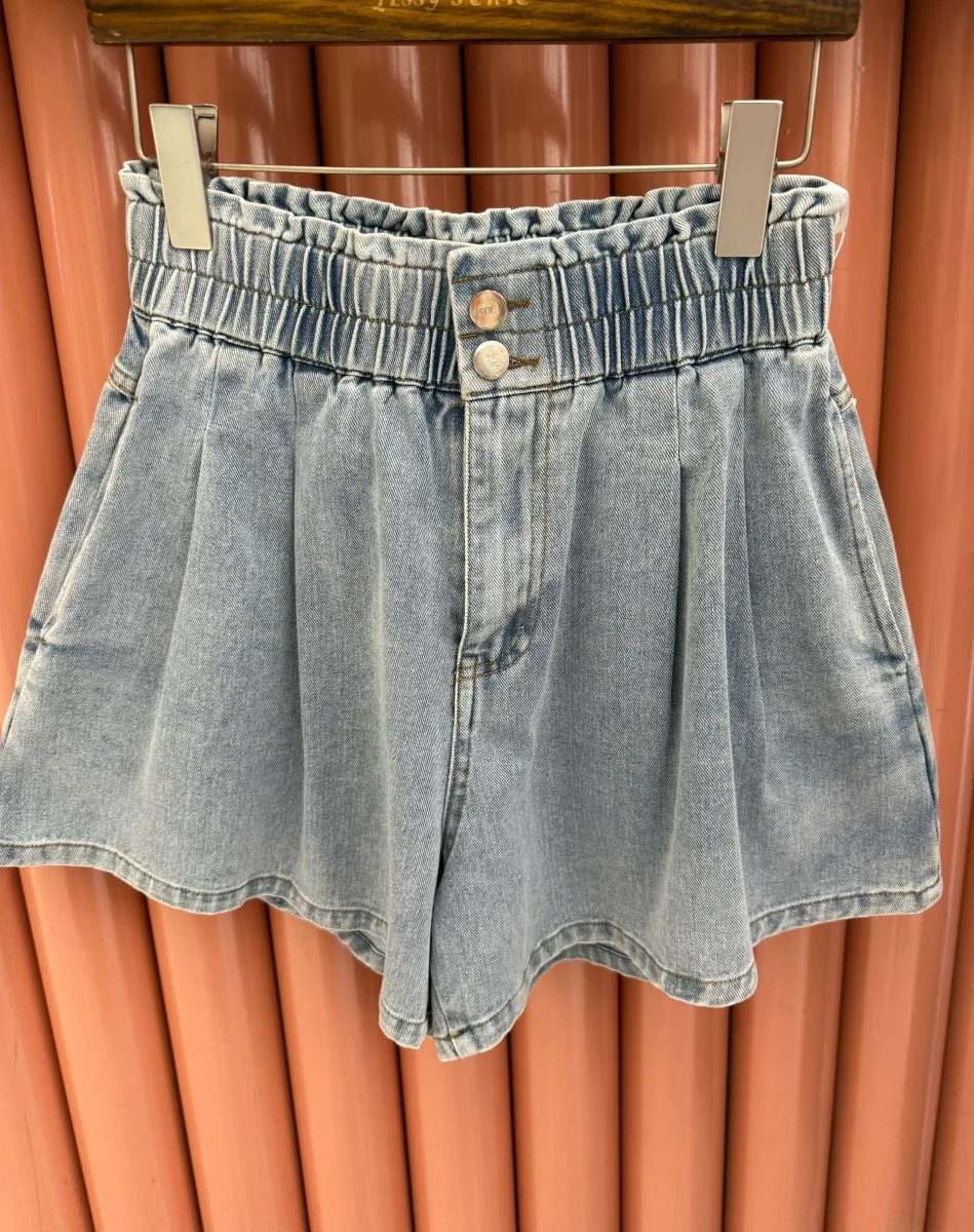 Questi Short in jeans con elastico sono comodi e alla moda. Con la loro vita elasticizzata, si adattano perfettamente alla tua figura e ti offrono un comfort duraturo.