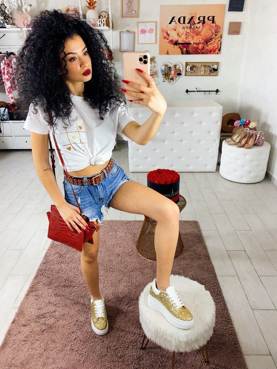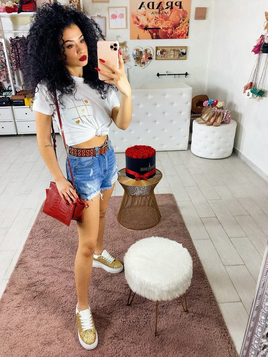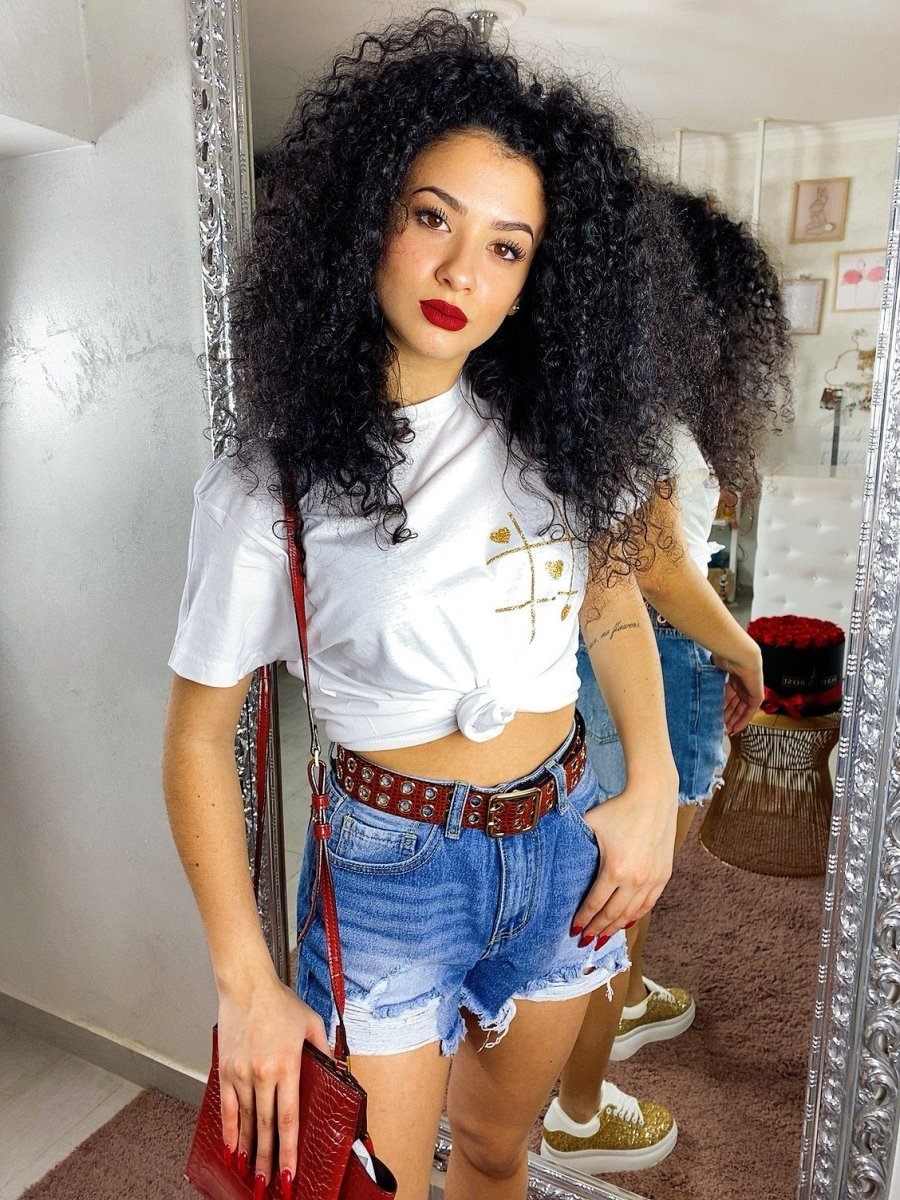 Pantaloncino corto in jeans a vita alta con strappini. Vestibilità regolare