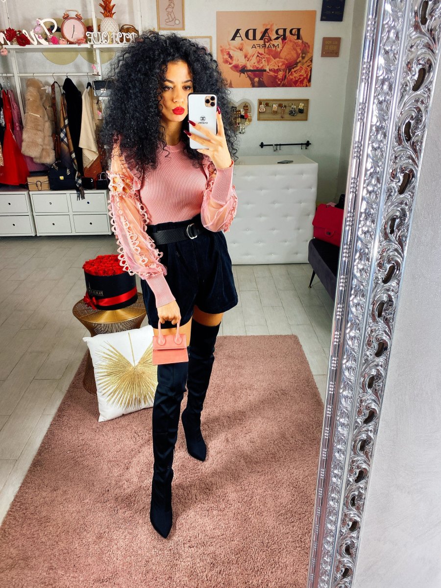 Short nero in velluto dotato di cinturino. Vestibilità piccola