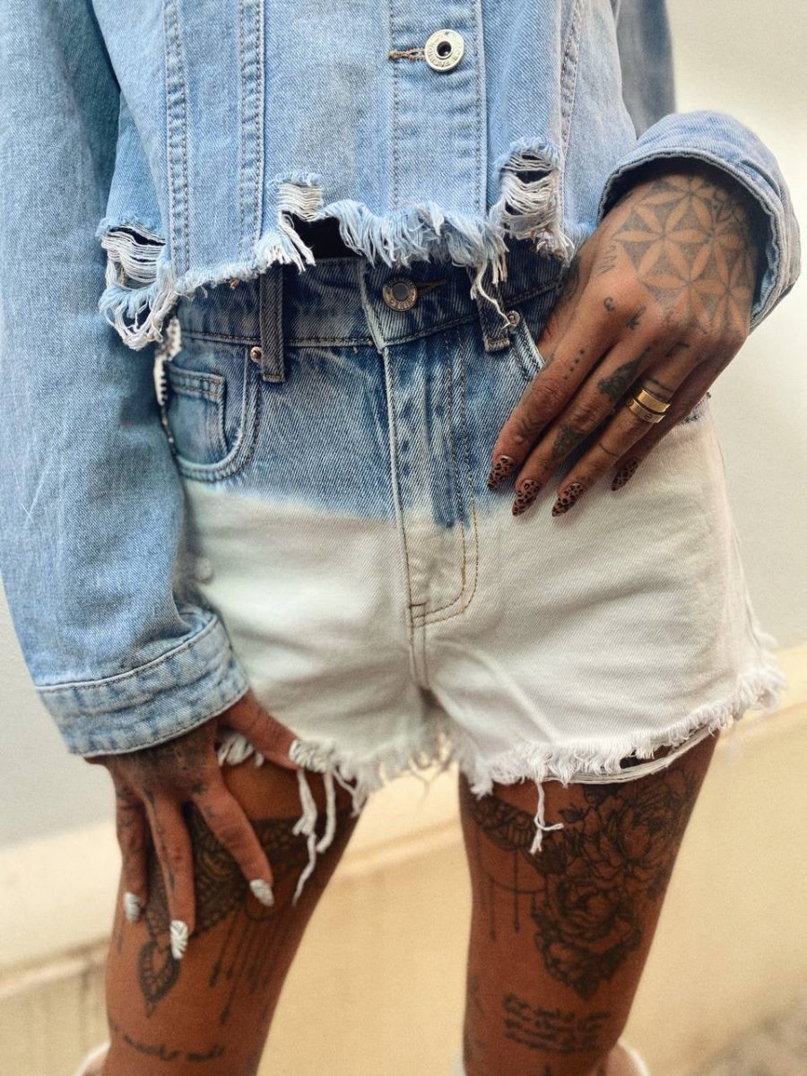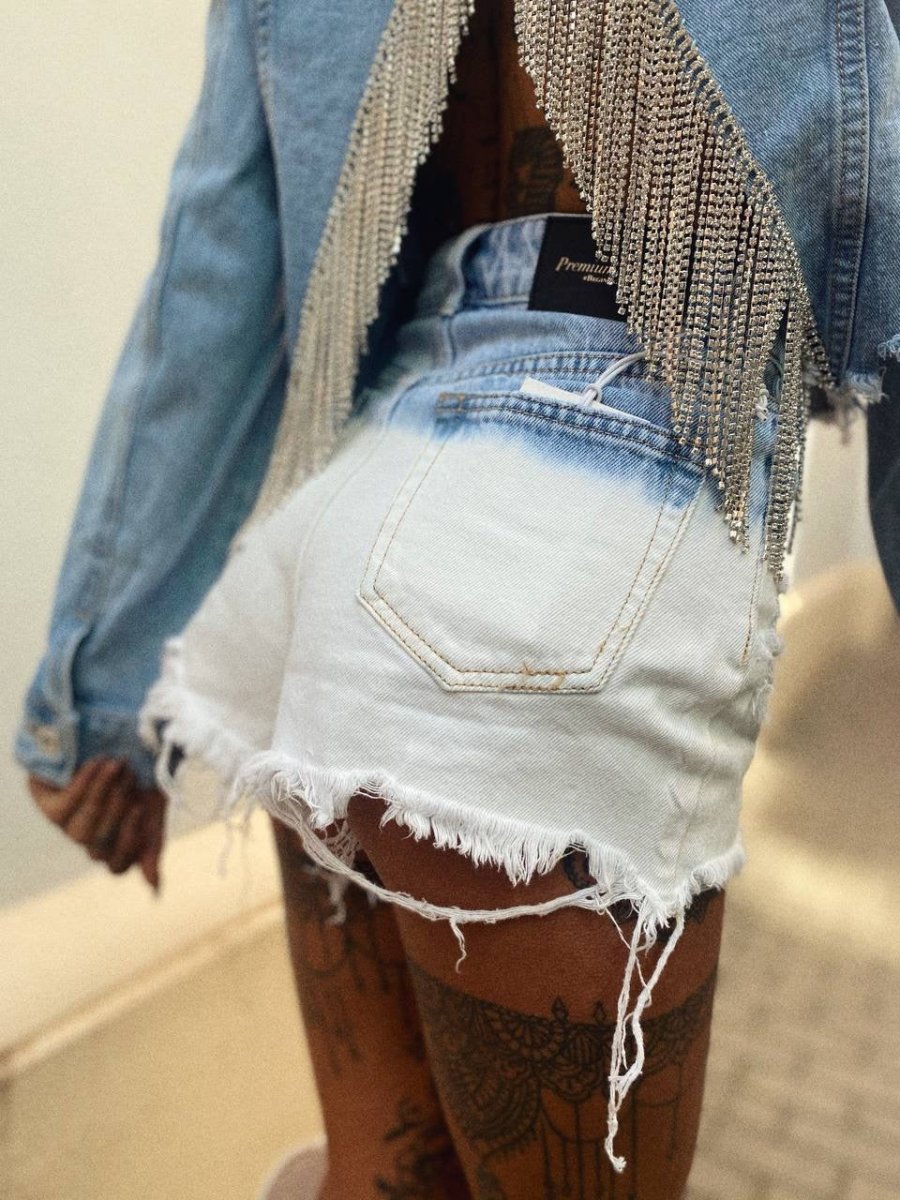 La meraviglia di un jeans Short estivo. Sfumato dal jeans al bianco.