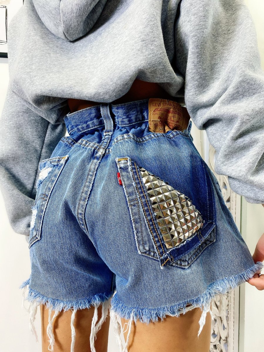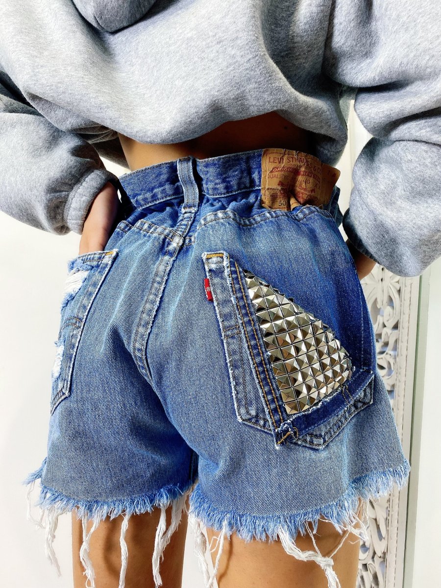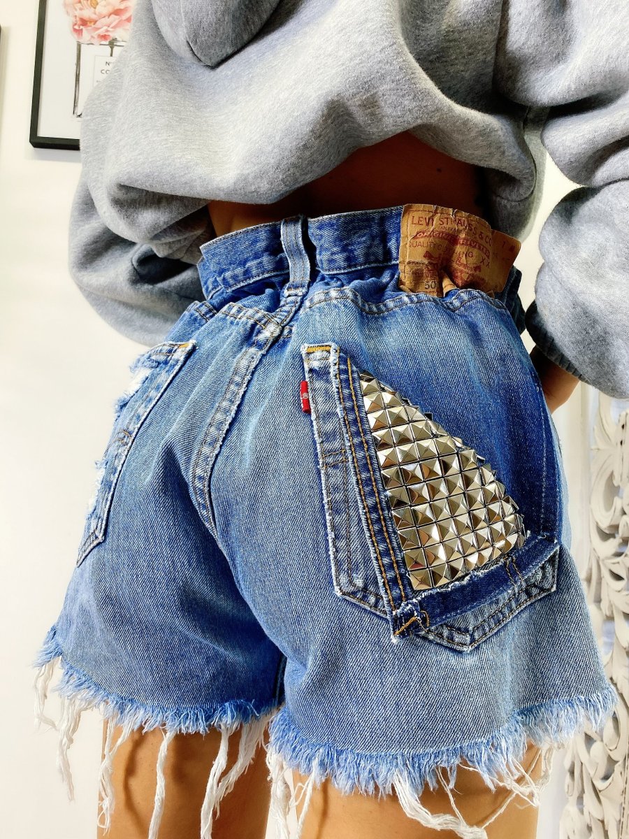 Short Vintage Levi’s alta qualità con strappi e borchie