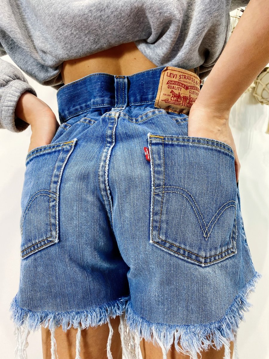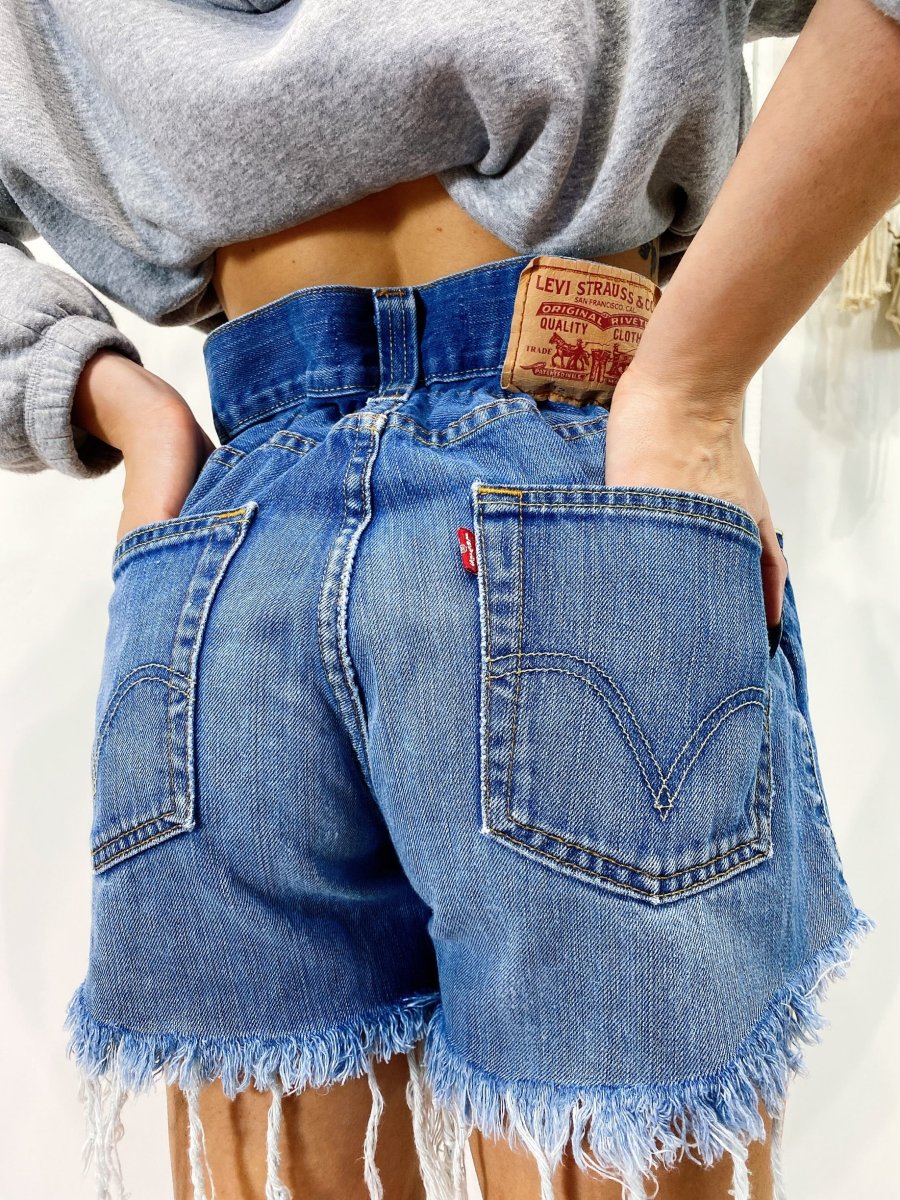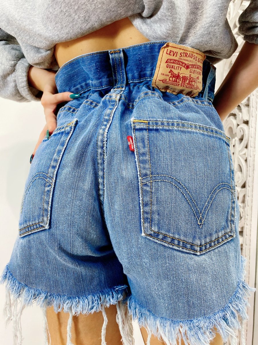 Short Vintage Levi’s alta qualità con strappi. Jeans vintage lavorati a mano Considerati pezzi unici poichè interamente Personalizzati. Lievi differenze rispetto alla foto ne denotano l’unicità e la sua completa lavorazione handmade.