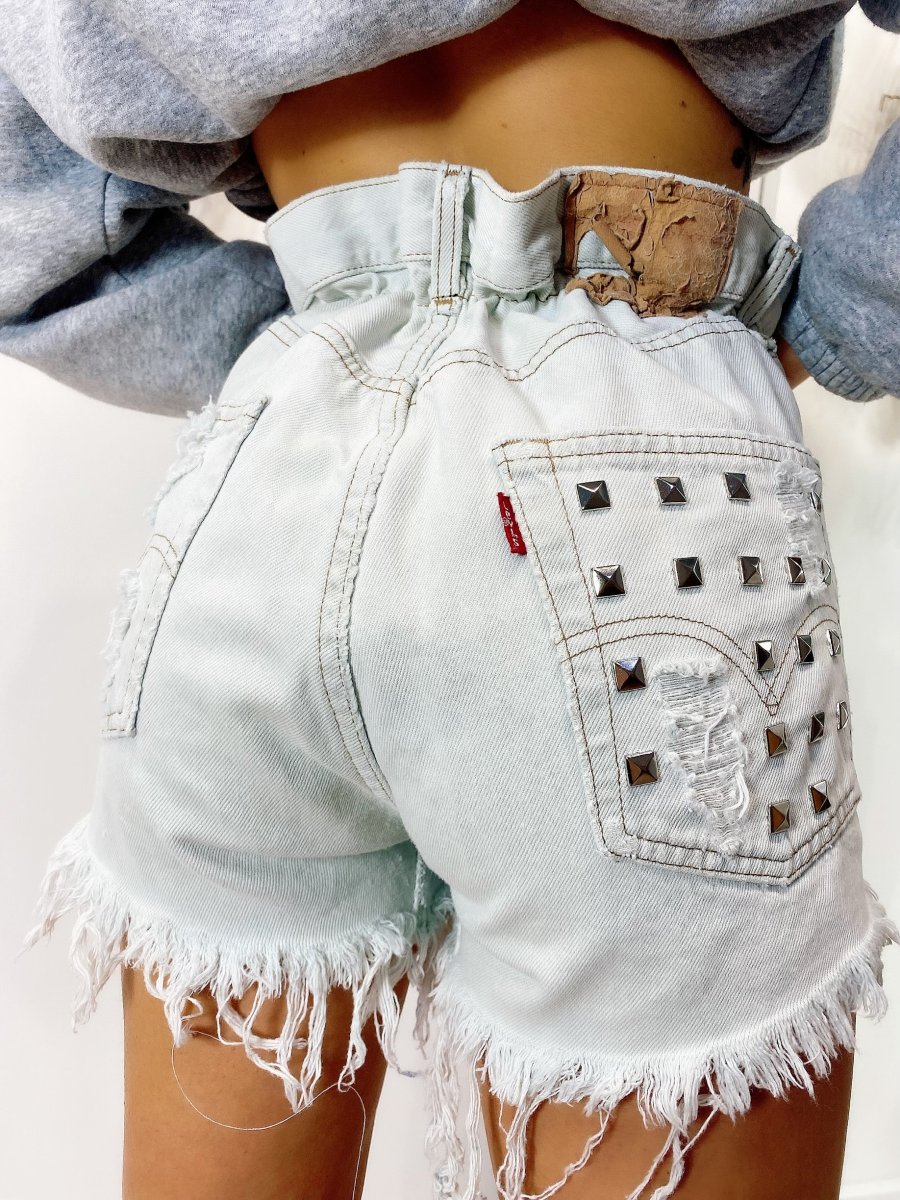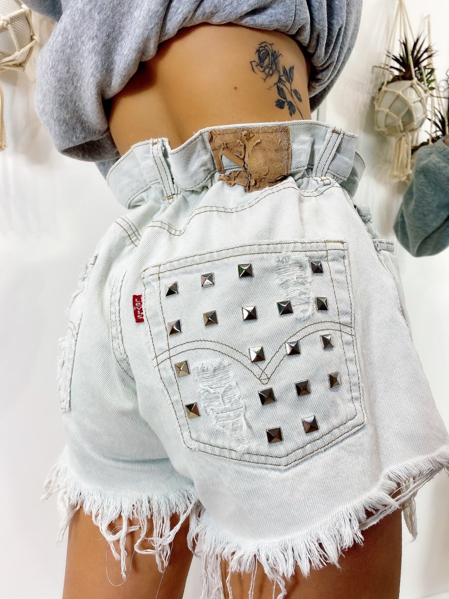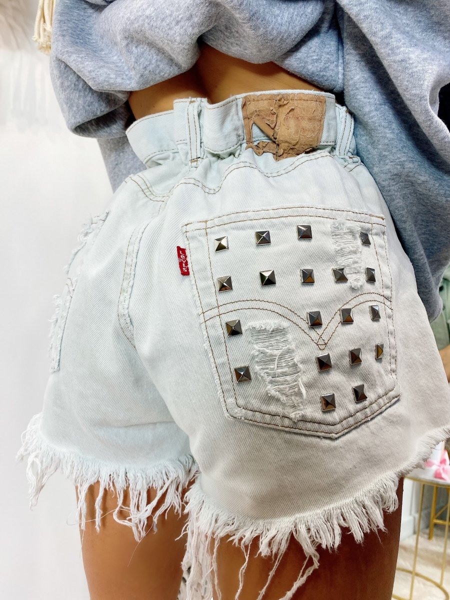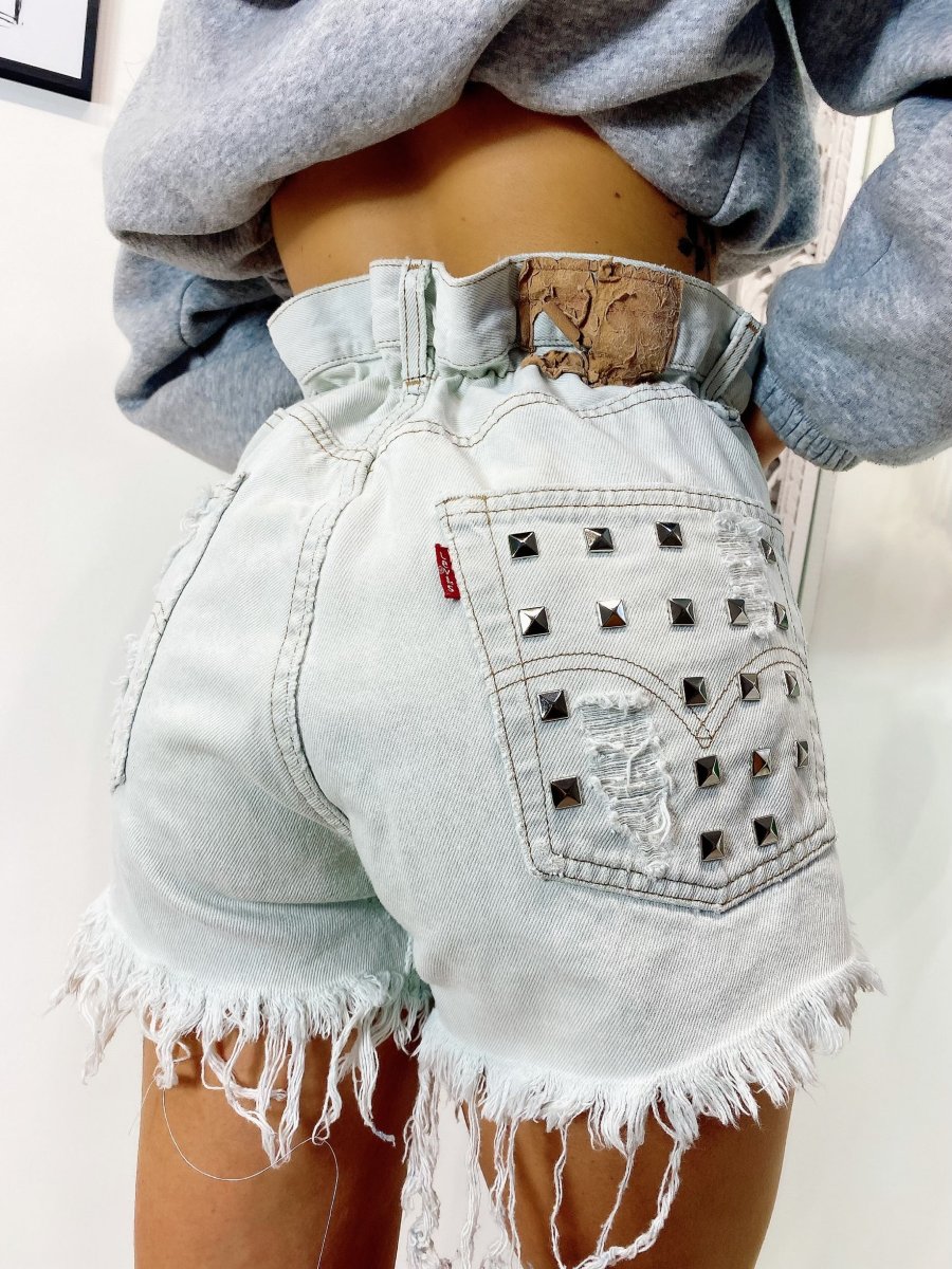 Short Vintage Levi’s alta qualità. Jeans vintage lavorati a mano Considerati pezzi unici poichè interamente Personalizzati. Lievi differenze rispetto alla foto ne denotano l’unicità e la loro completa lavorazione handmade.