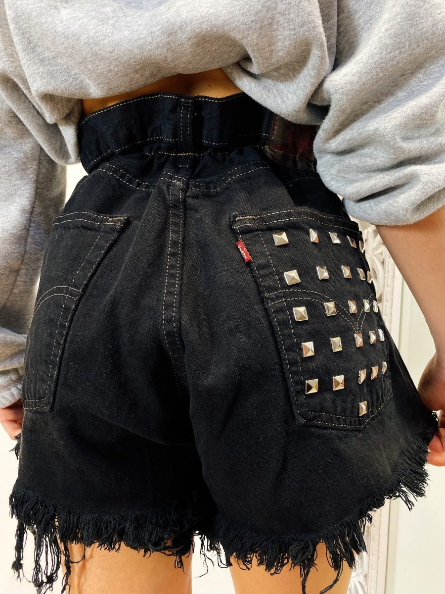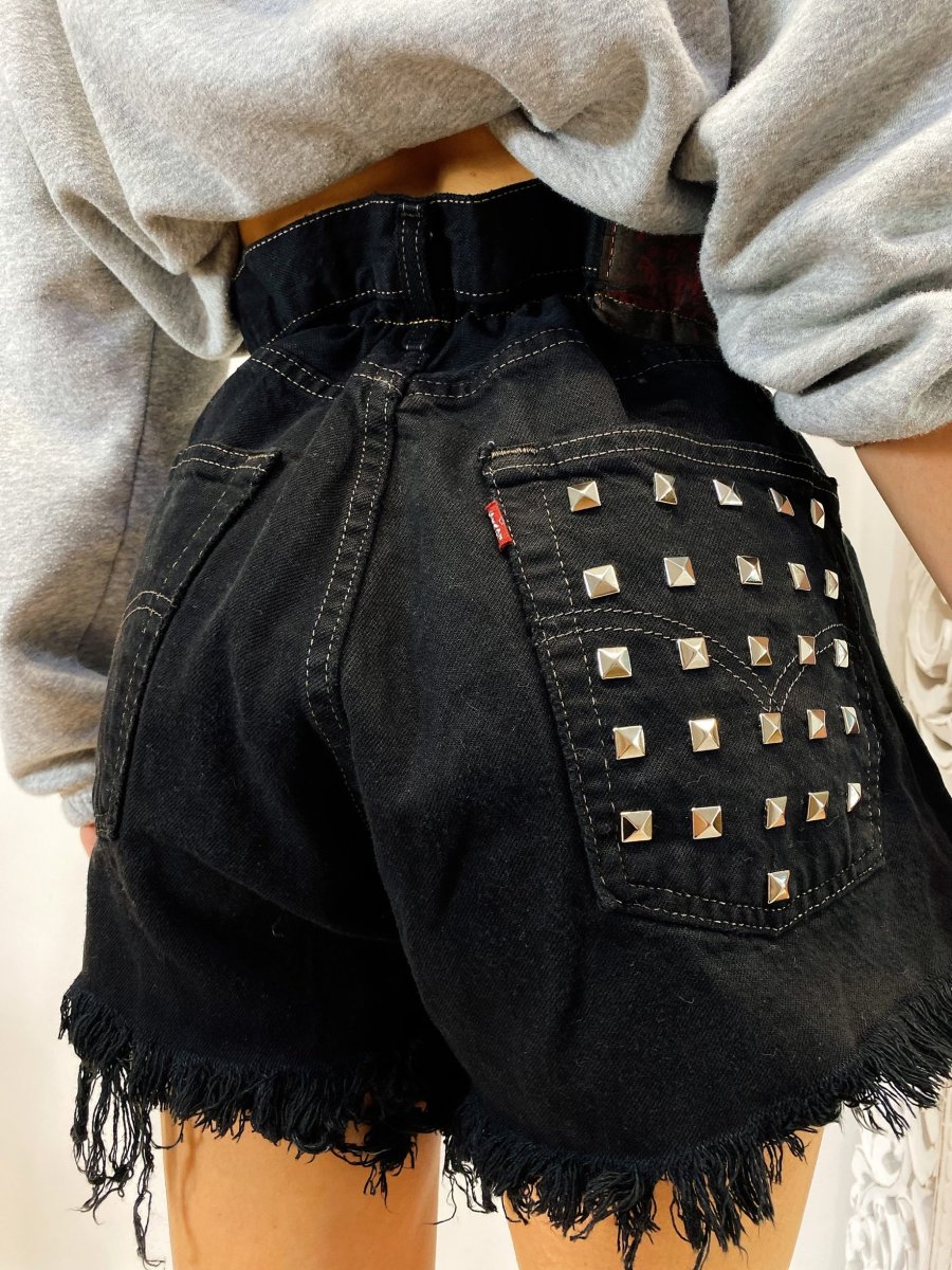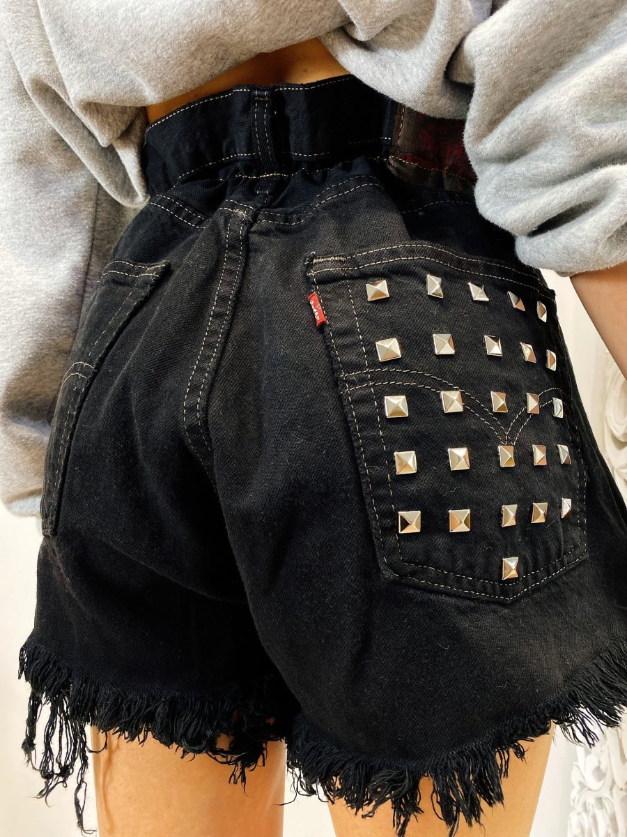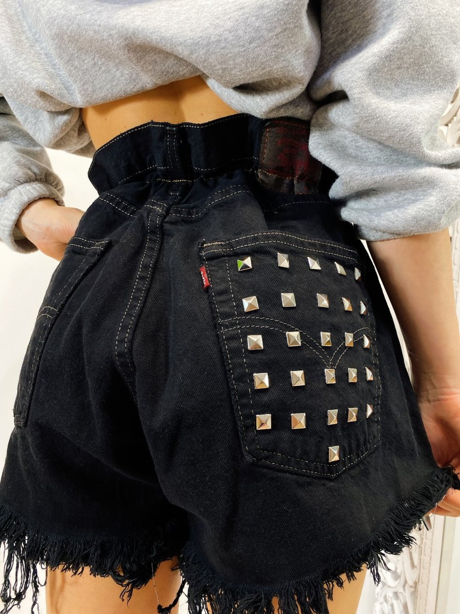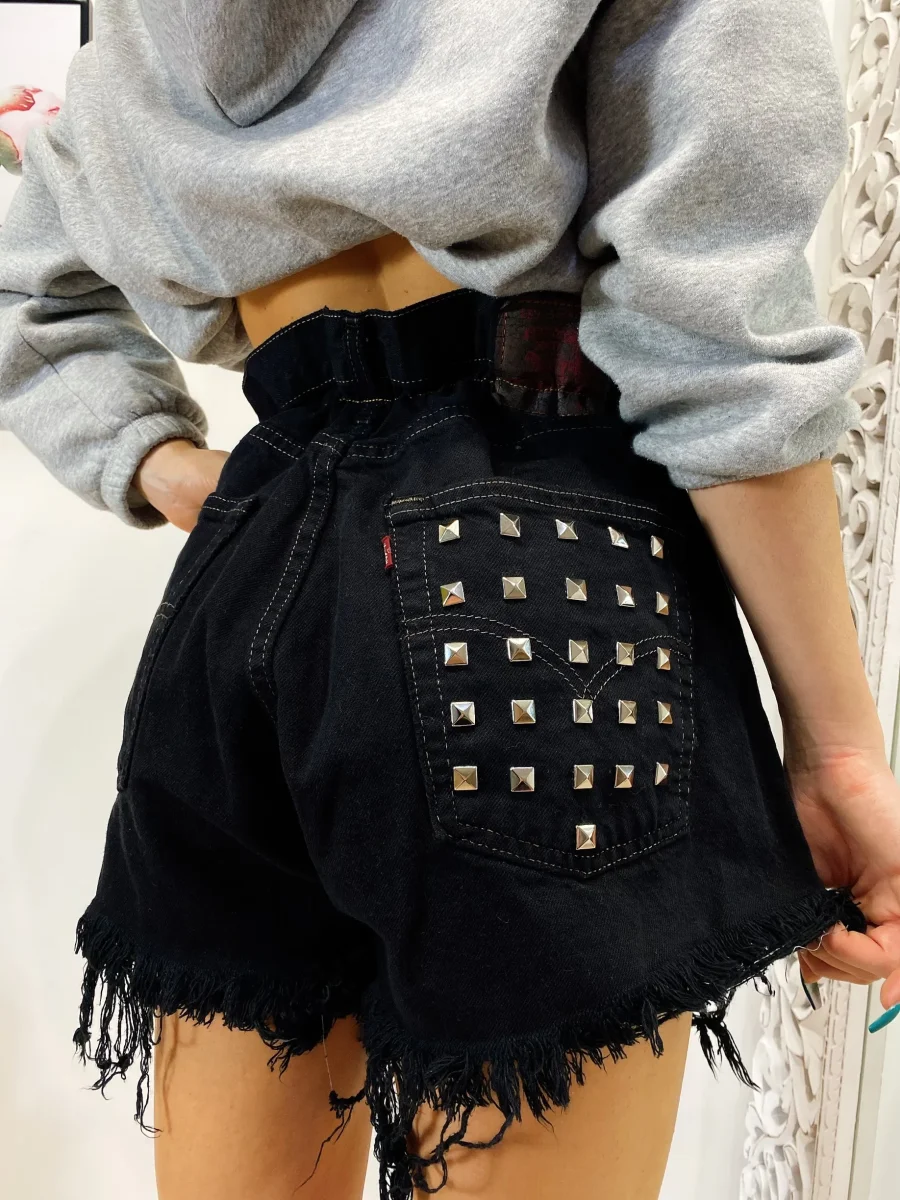 Short Vintage Levi’s alta qualità senza strappi. Jeans vintage lavorati a mano Considerati pezzi unici poichè interamente Personalizzati. Lievi differenze rispetto alla foto ne denotano l’unicità e la sua completa lavorazione handmade.