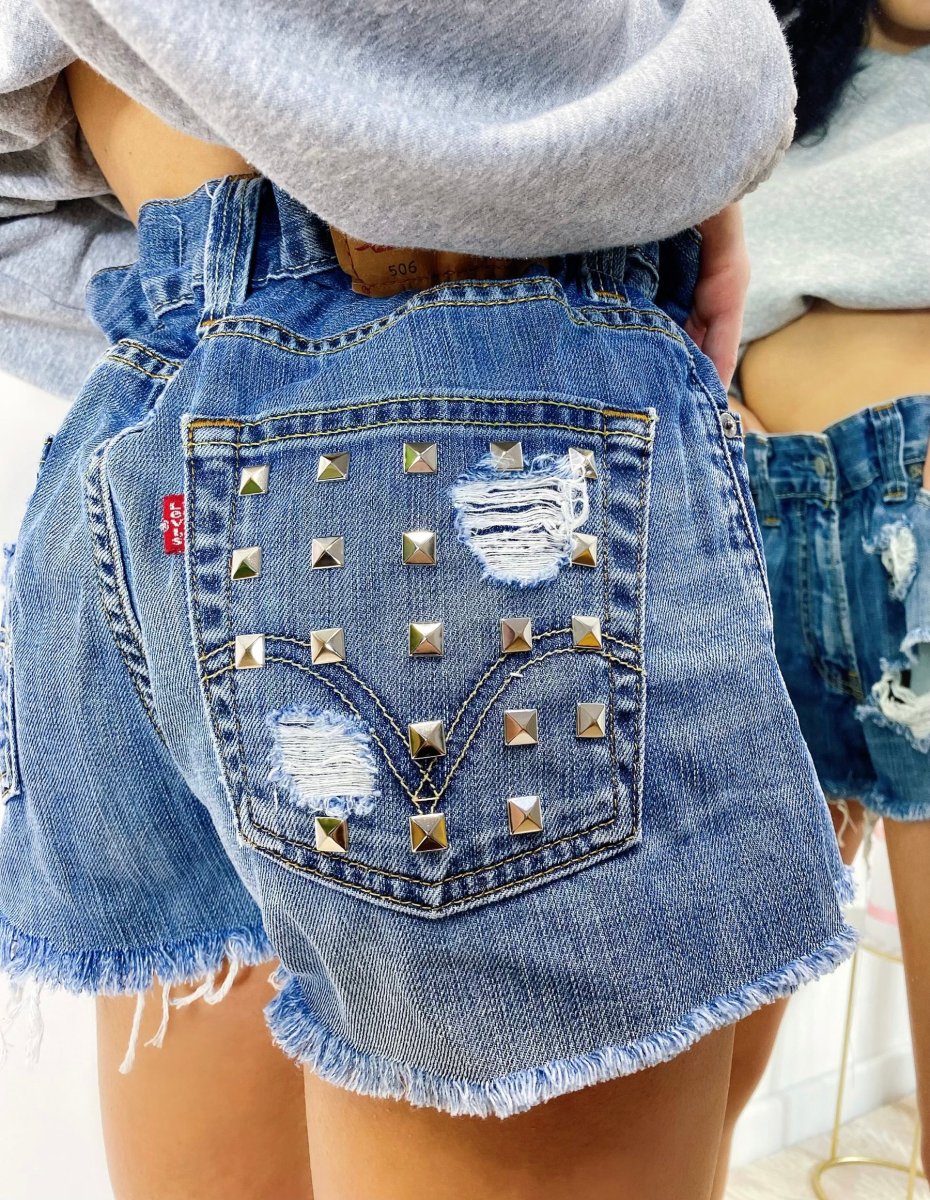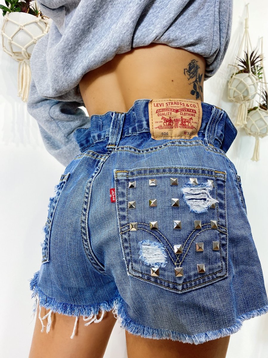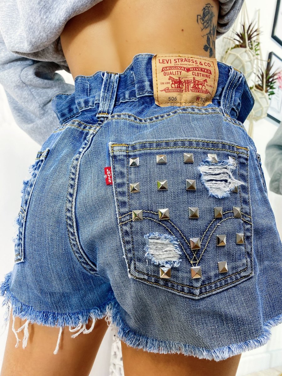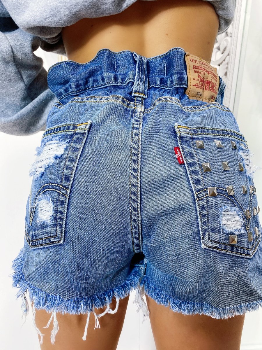 Short Vintage Levi’s alta qualità. Jeans vintage lavorati a mano Considerati pezzi unici poichè interamente Personalizzati. Lievi differenze rispetto alla foto ne denotano l’unicità e la sua completa lavorazione handmade.