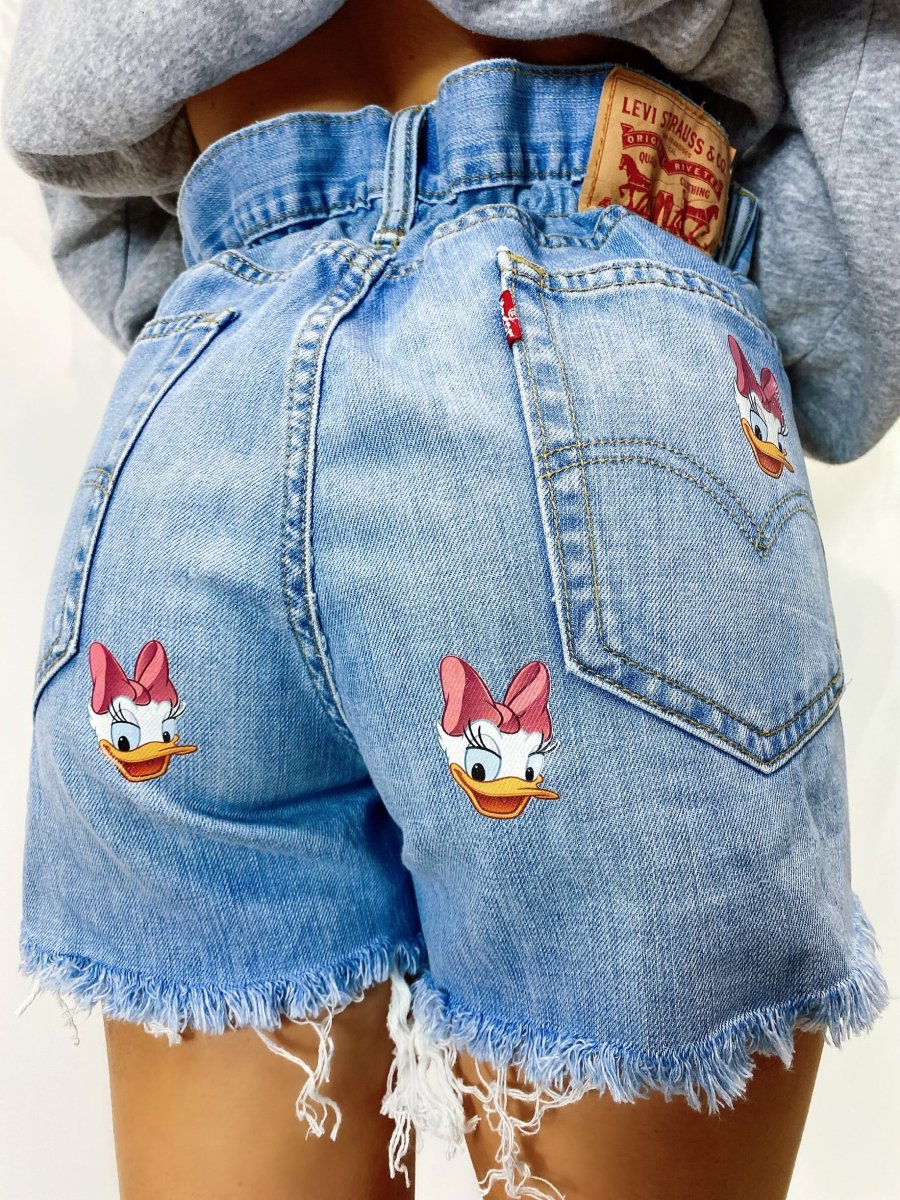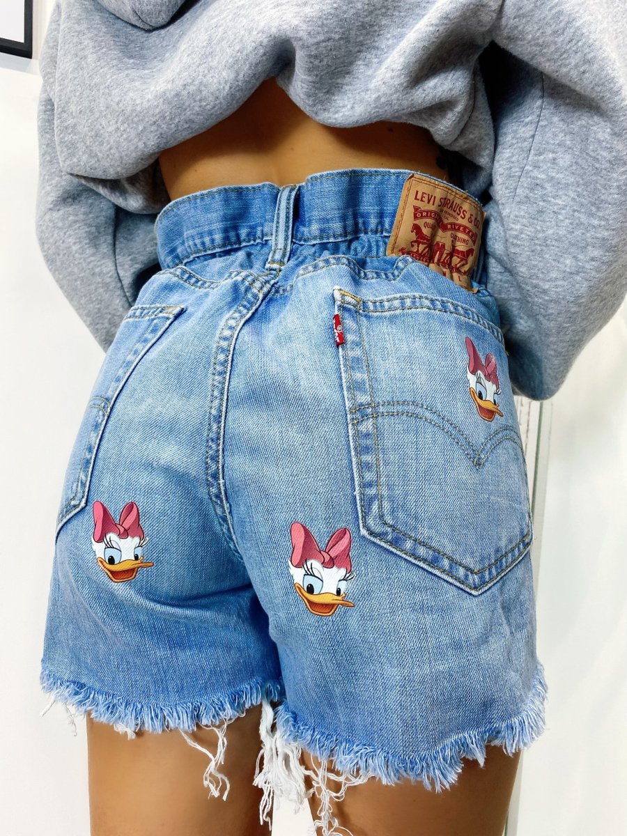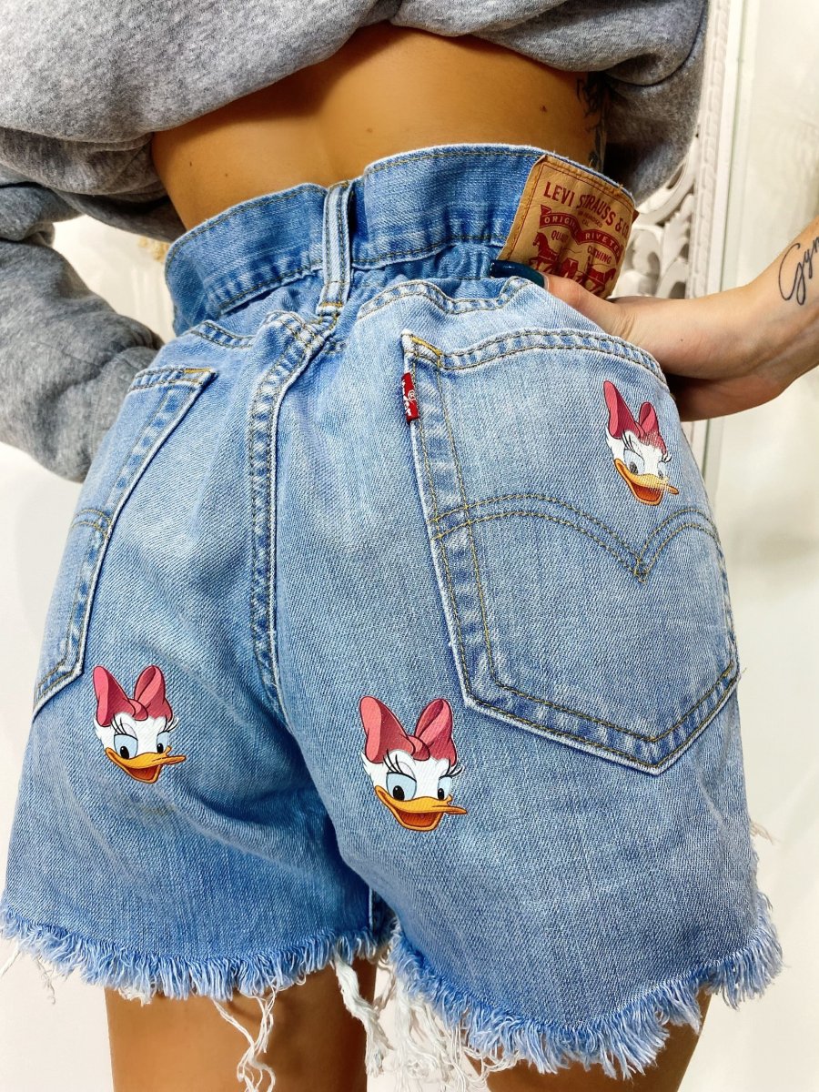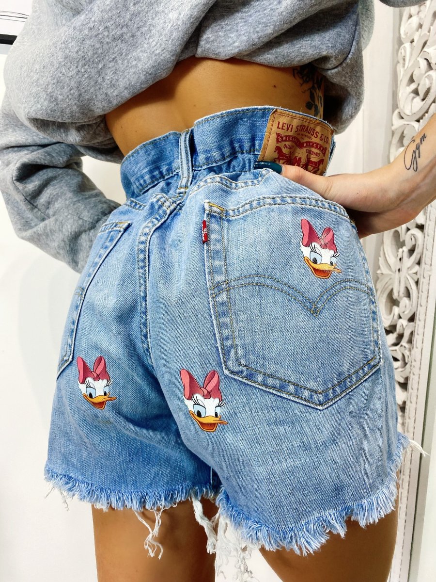Short Vintage Levi’s alta qualità senza strappi con stampa paperina.