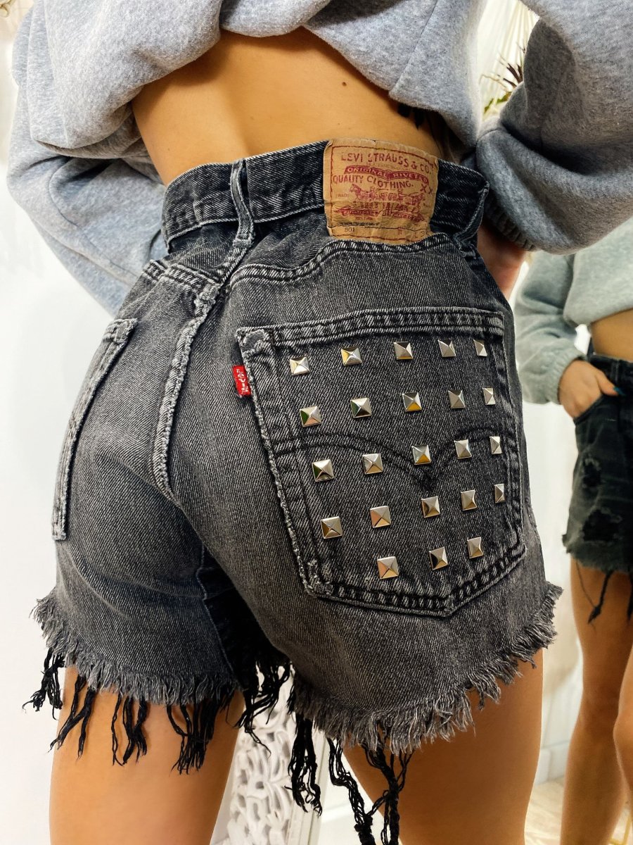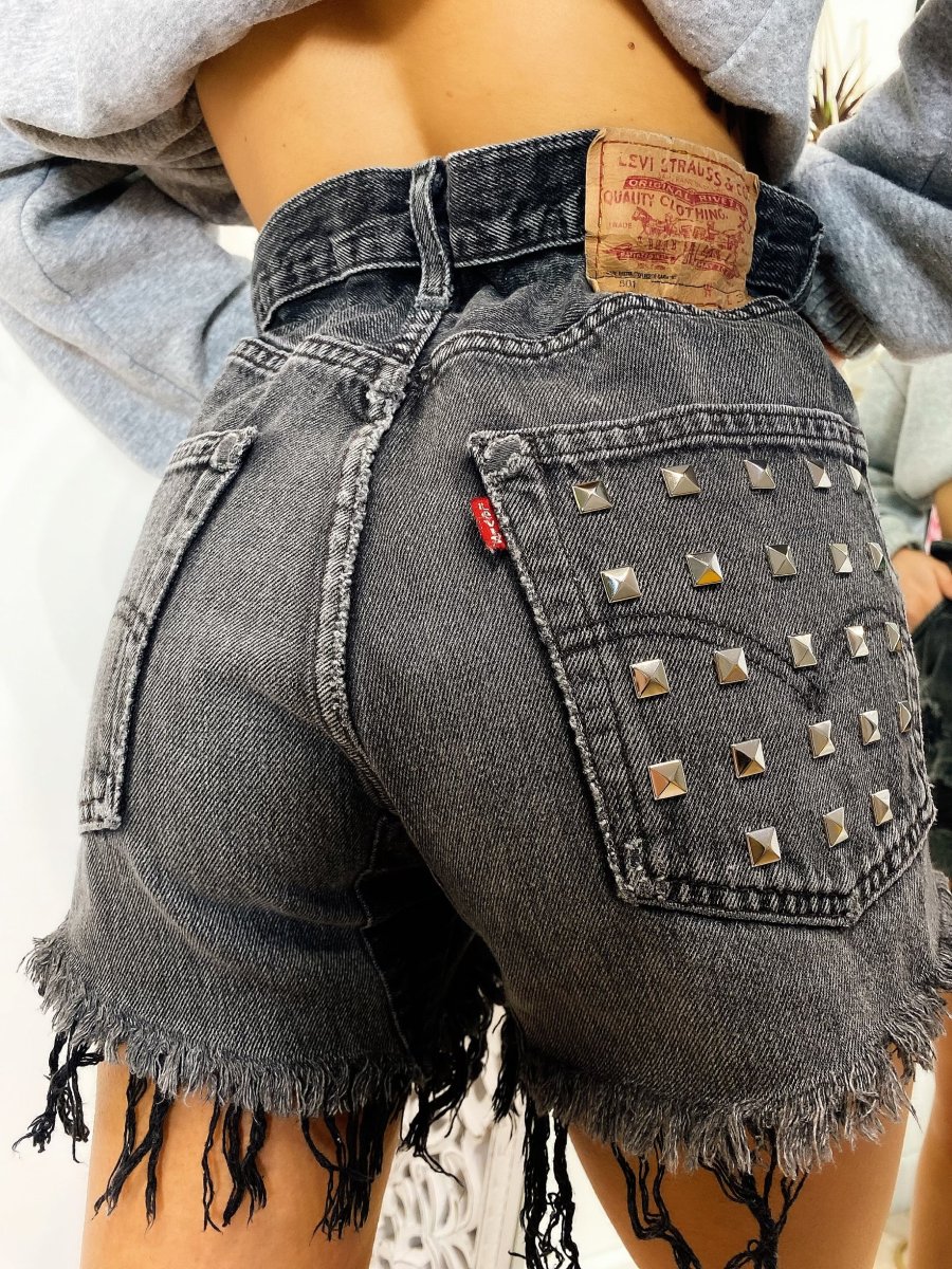 Short Vintage Levi’s alta qualità . Jeans vintage lavorati a mano Considerati pezzi unici poichè interamente Personalizzati. Lievi differenze rispetto alla foto ne denotano l’unicità e la sua completa lavorazione handmade.