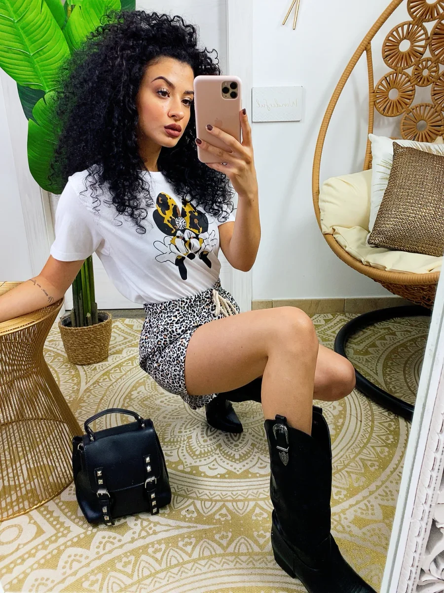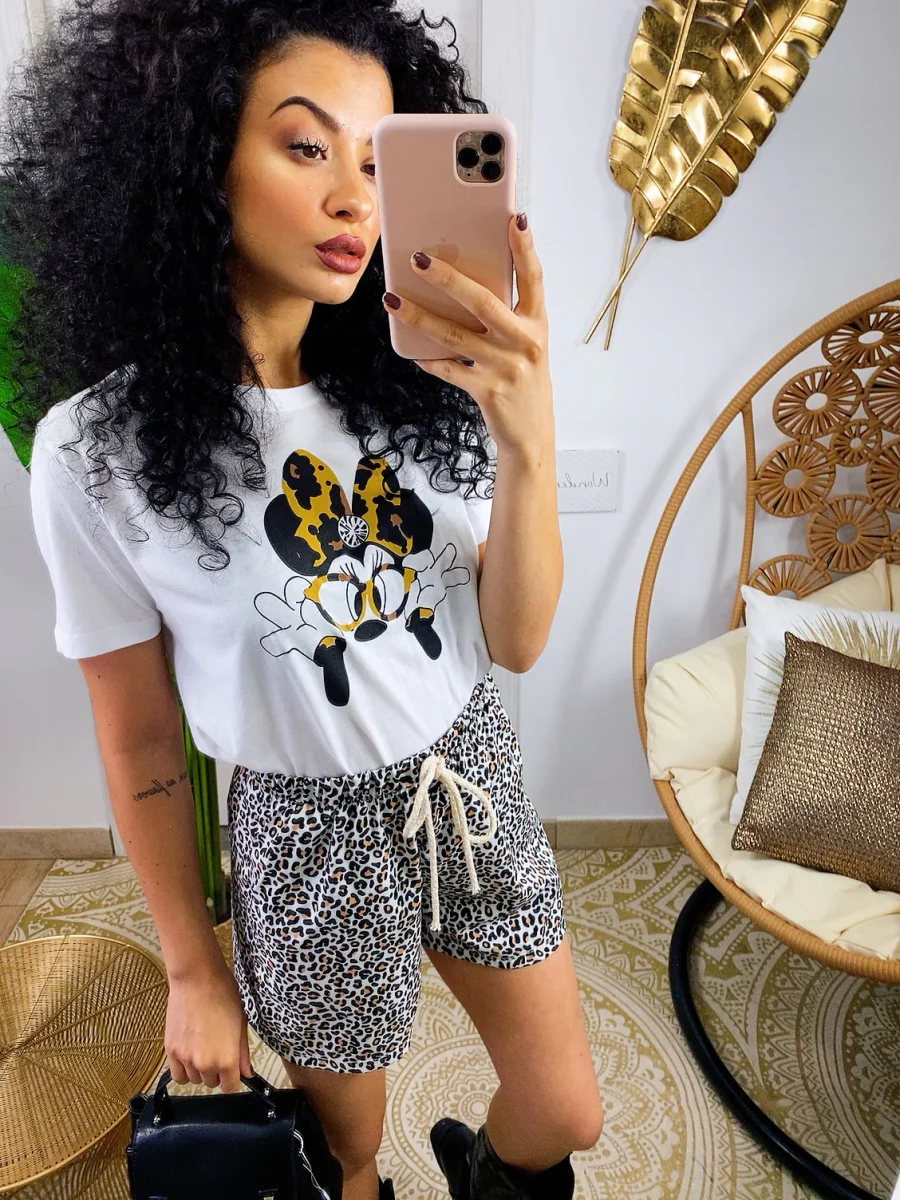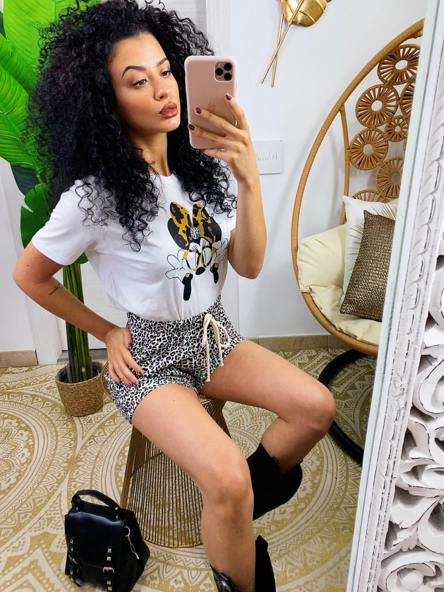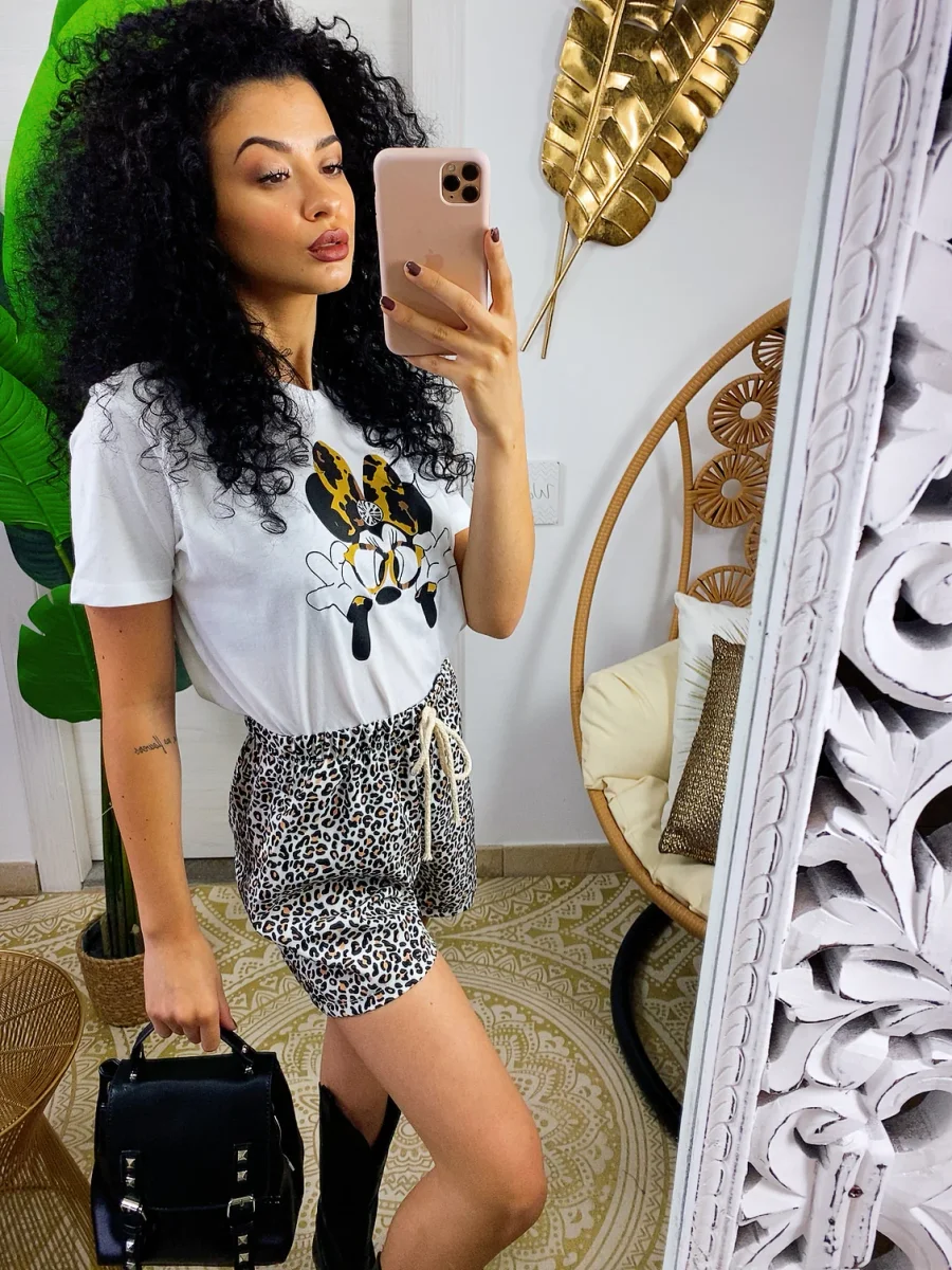 Short con fiocco orlo ondulato in cotone. Elasticizzato e cintura in vita