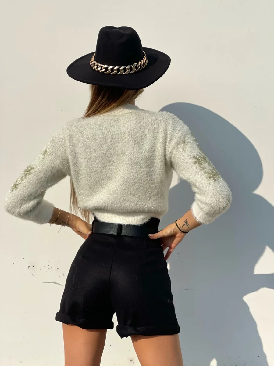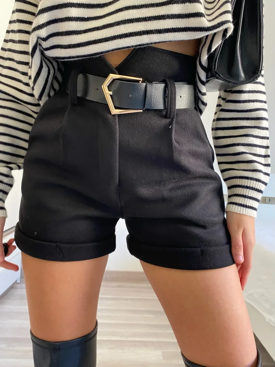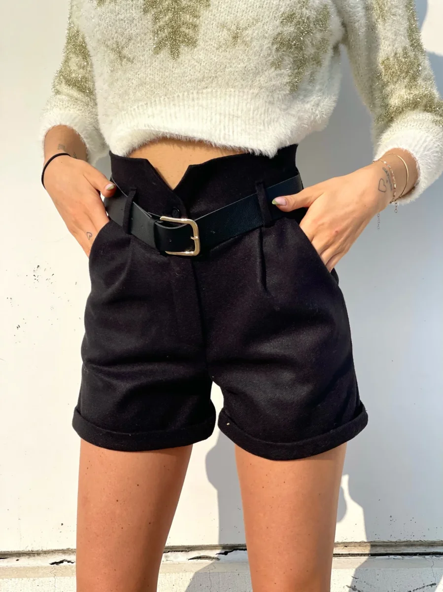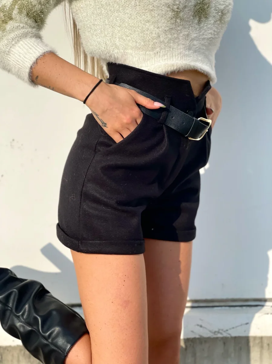 Short in panno nero a vita alta con cintura inclusa