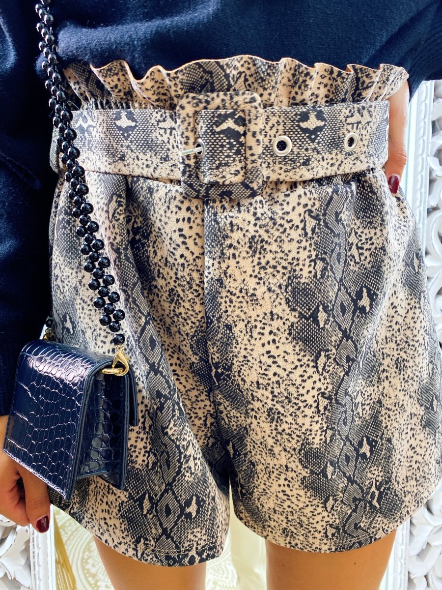 Recensisci per primo “Short pitonato marrone e grigio con cintura”