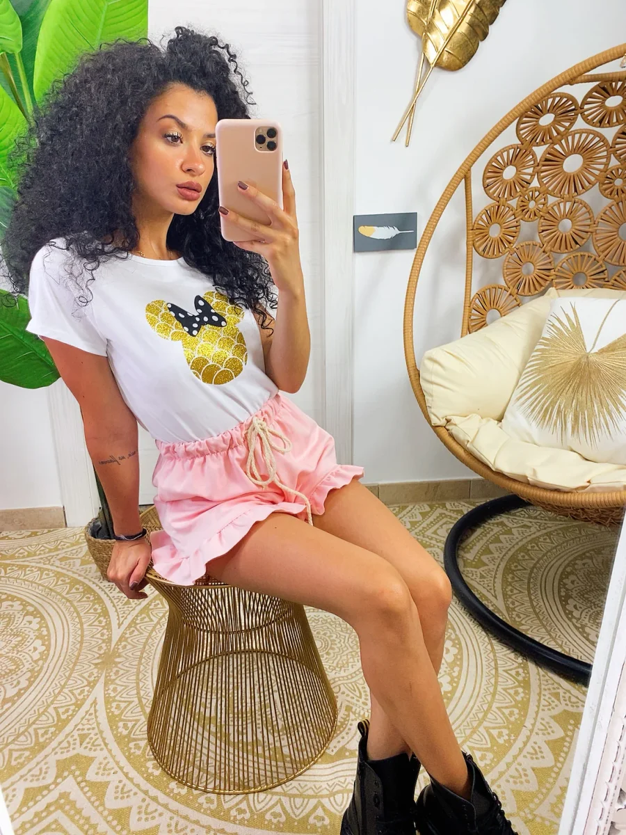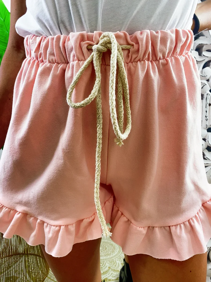 Short con fiocco orlo ondulato in cotone. Elasticizzato e cintura in vita