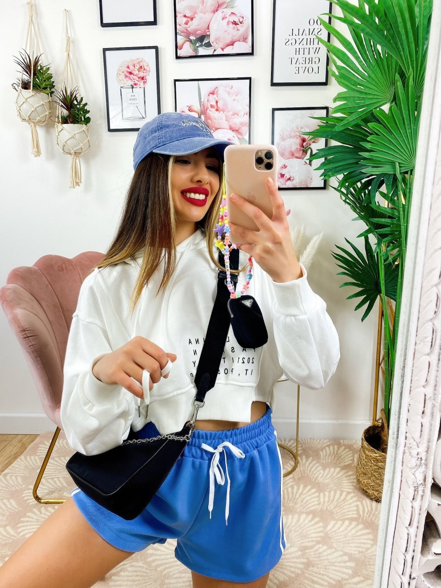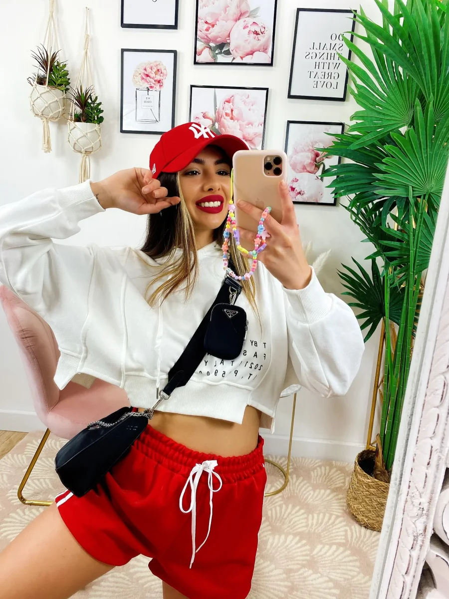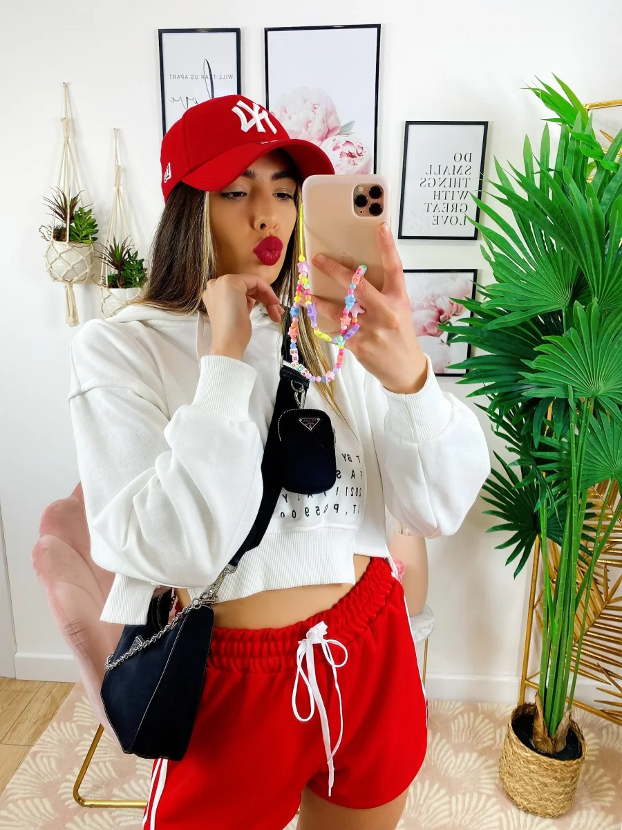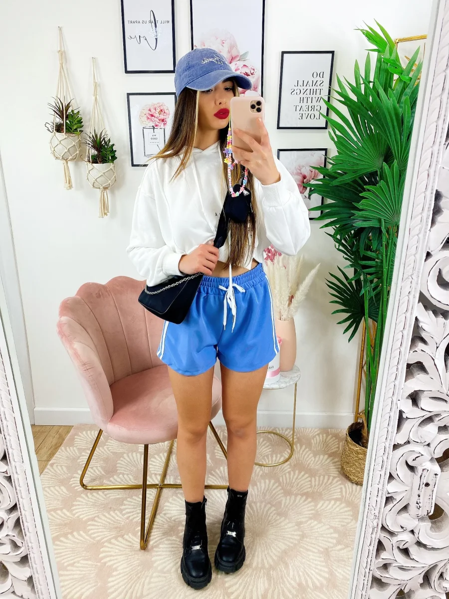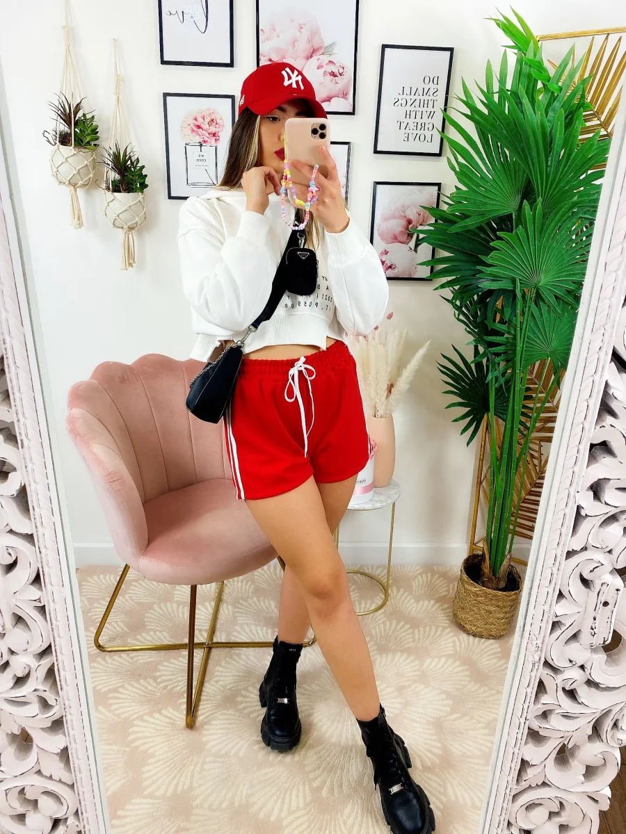 Short sportivo con Righe. Elastico in vita e laccetto regolabile. Particolari righe bianche sui lati.