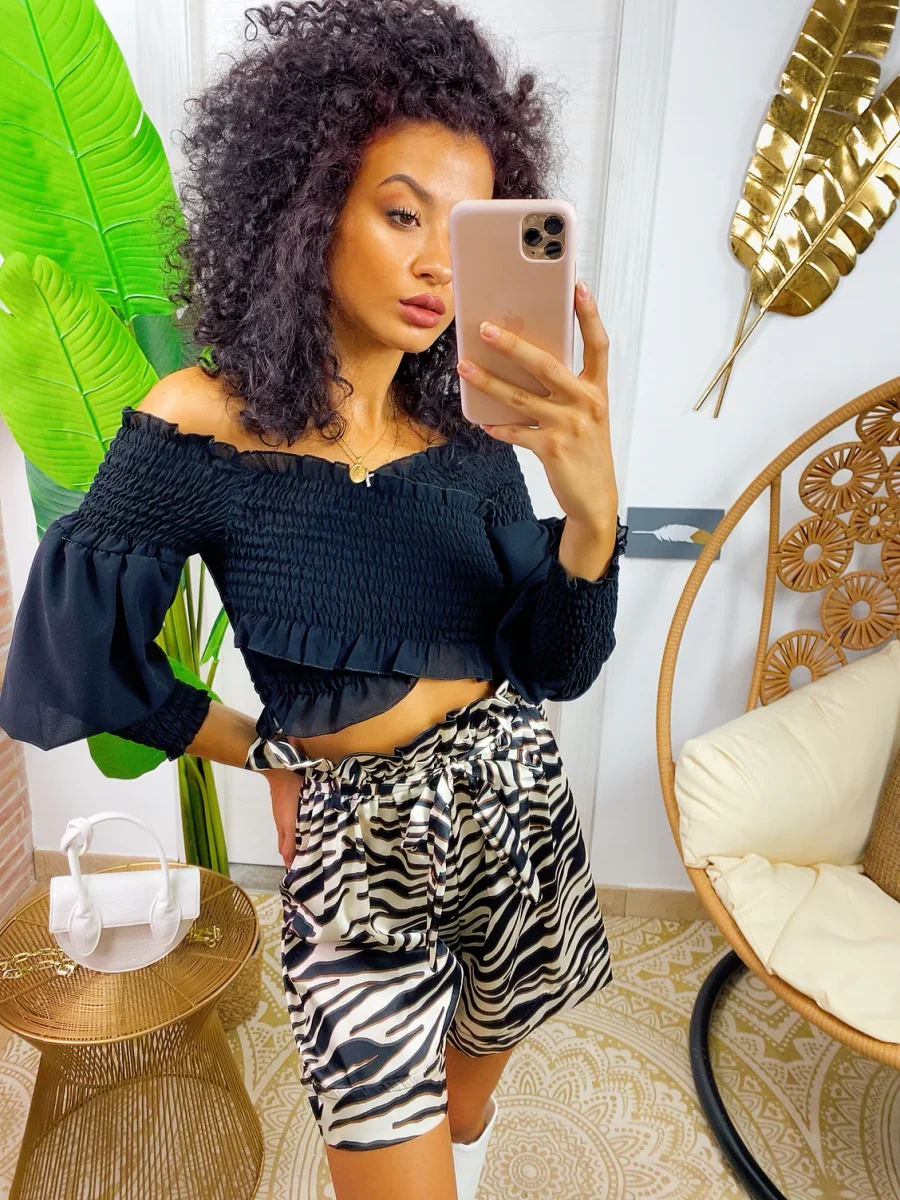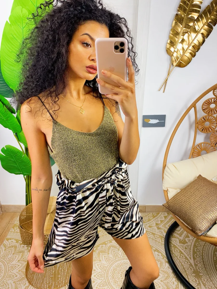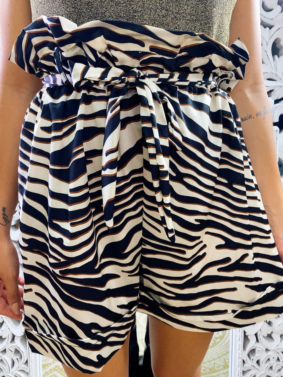 Short corto maculato con elastico in vita. Modello con cinturino in vita. Taglia unica