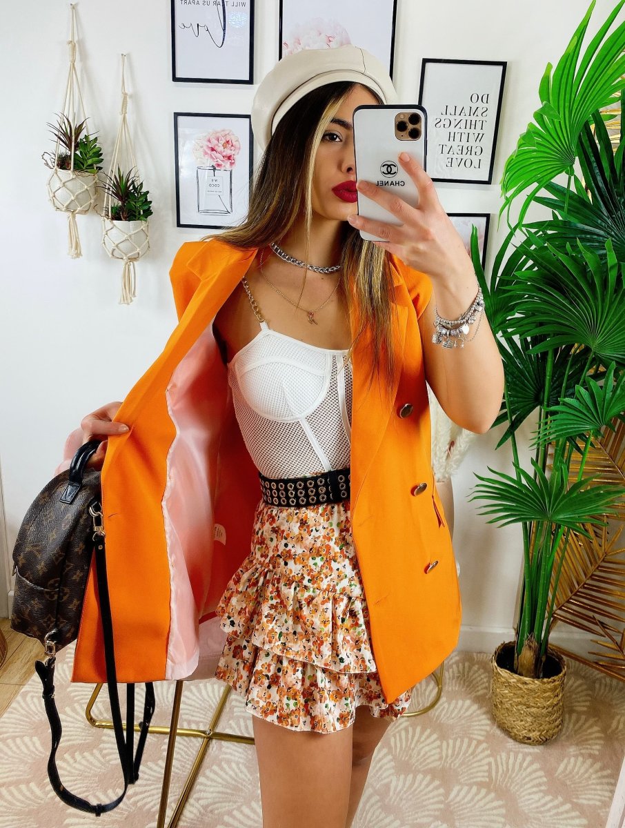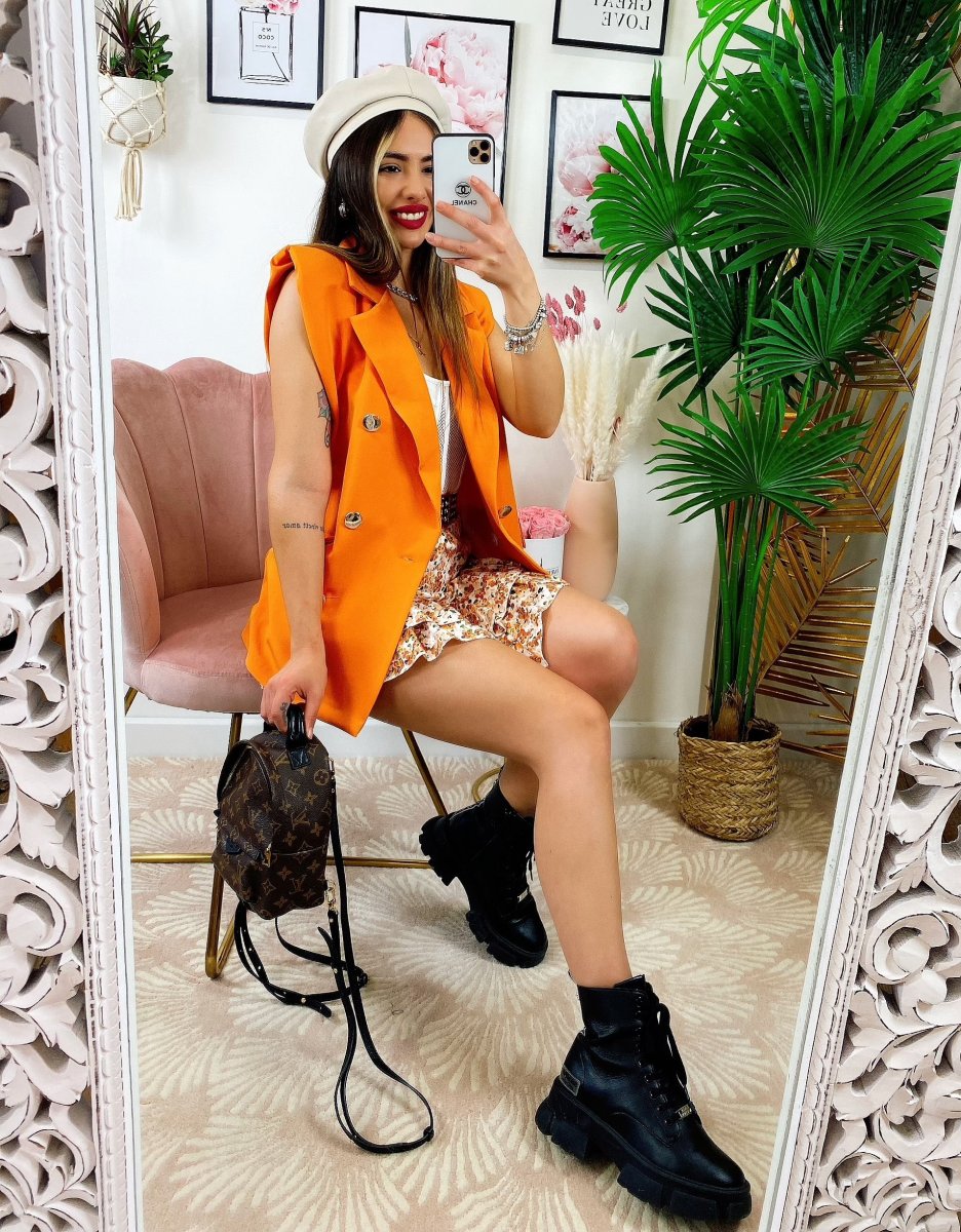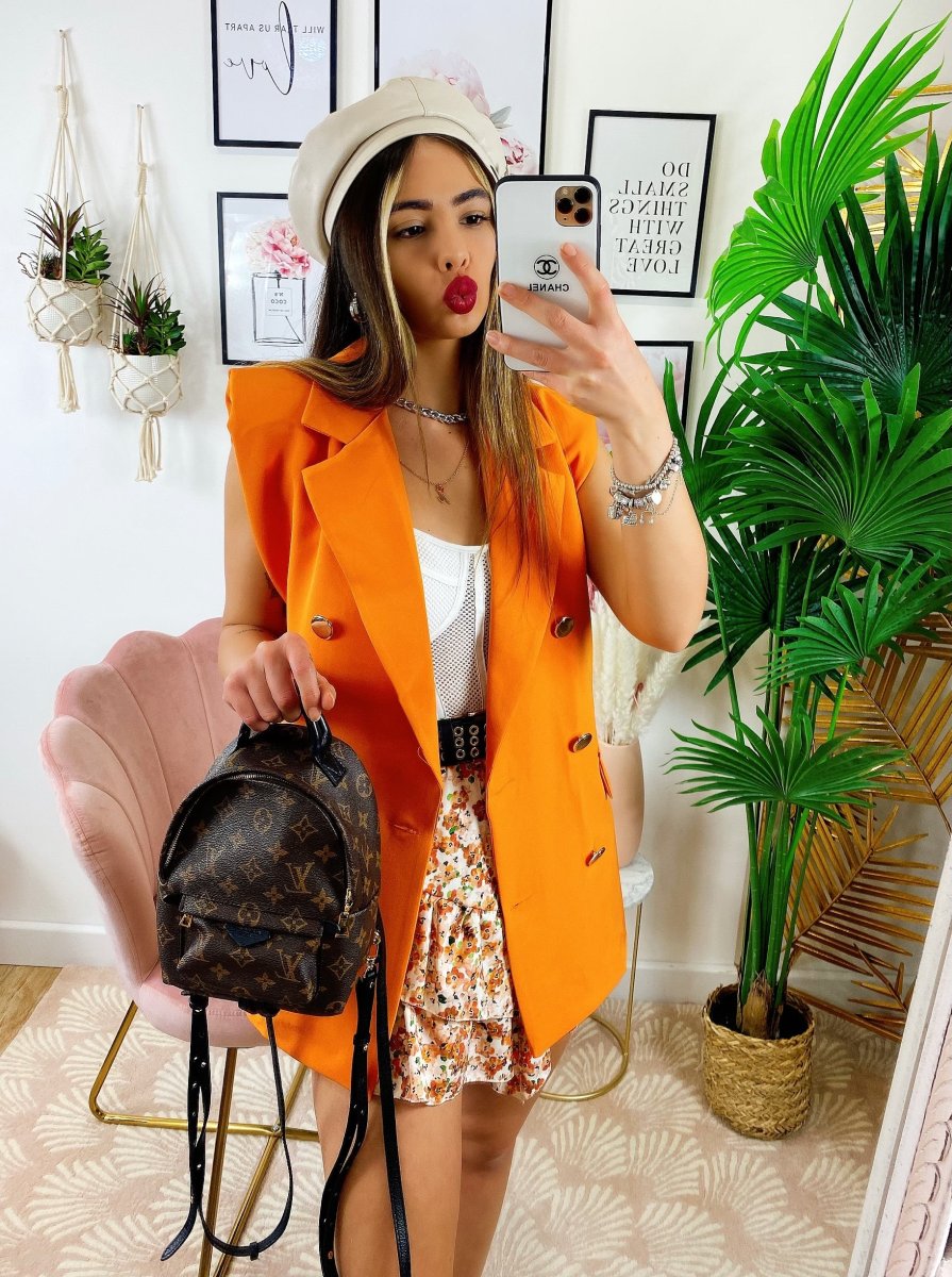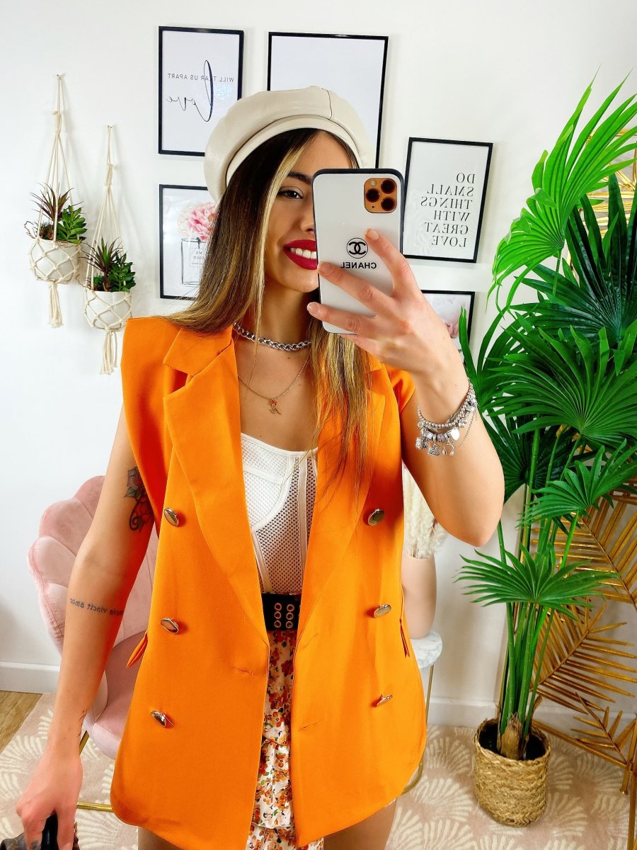 Smanicato arancio bottoni oro.