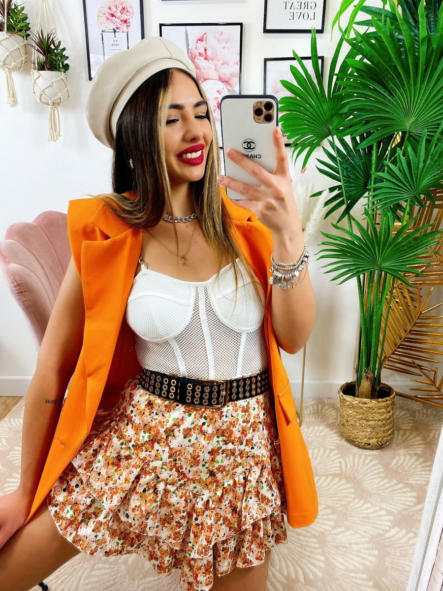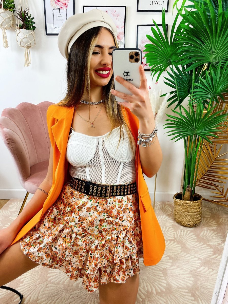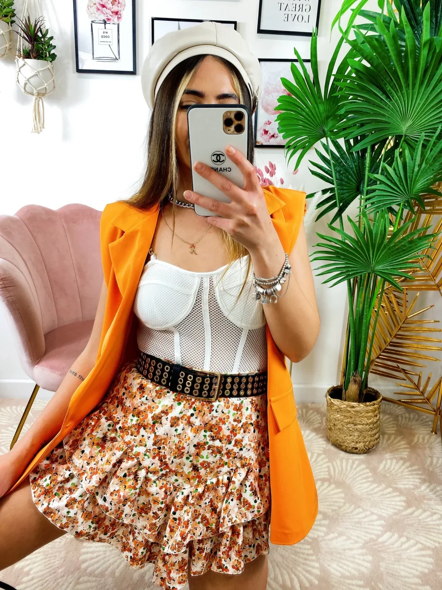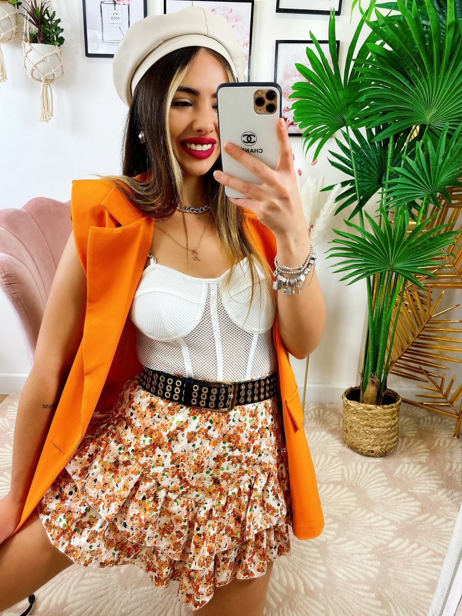 Smanicato arancio bottoni oro.