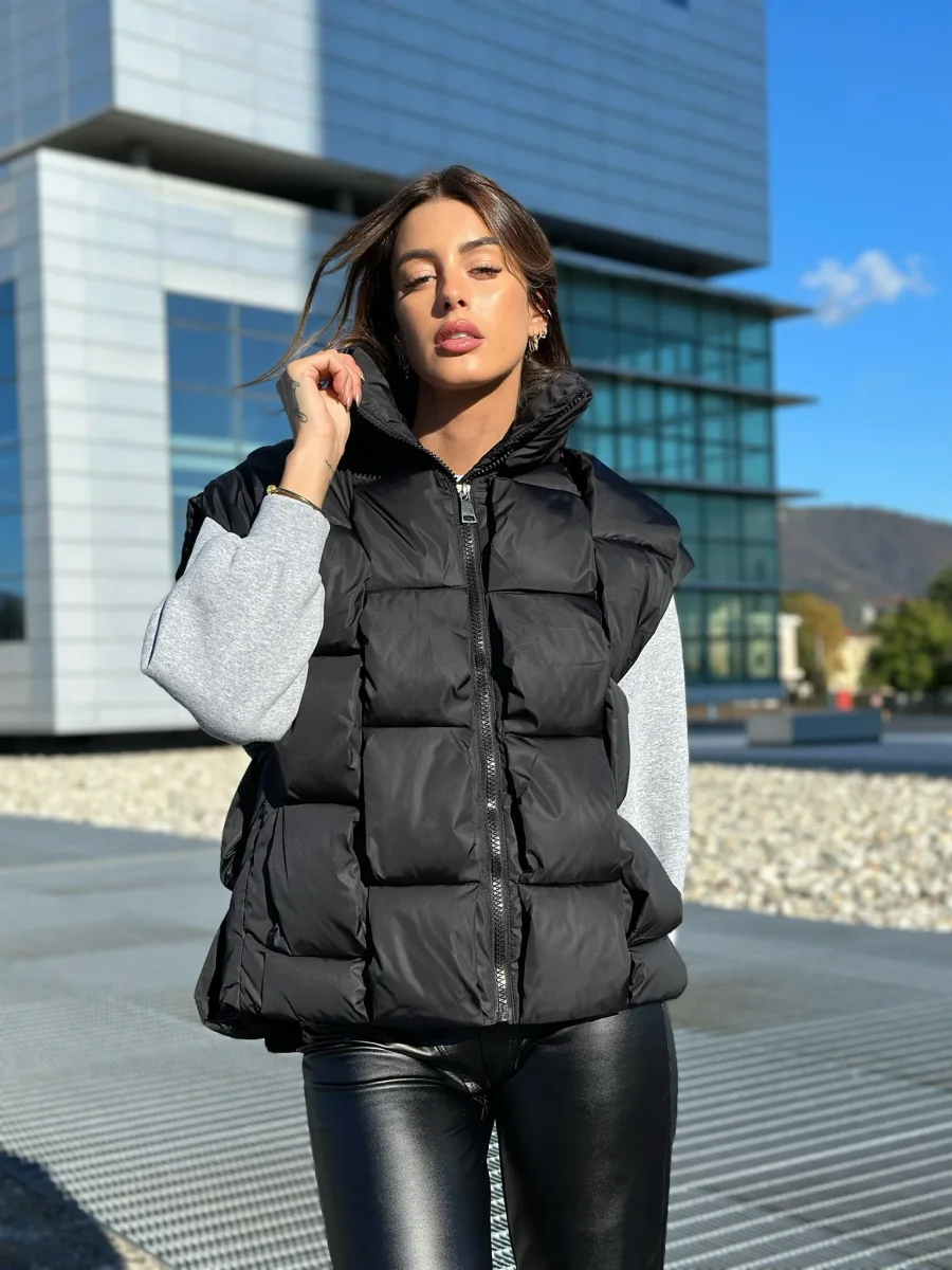 Giubbotto smanicato pesante con trama particolare sul davanti.