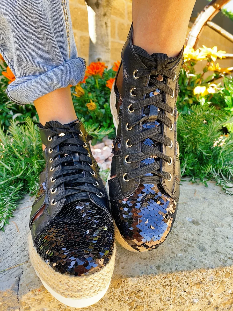 Sneakers con pailette nere e argent double colour.