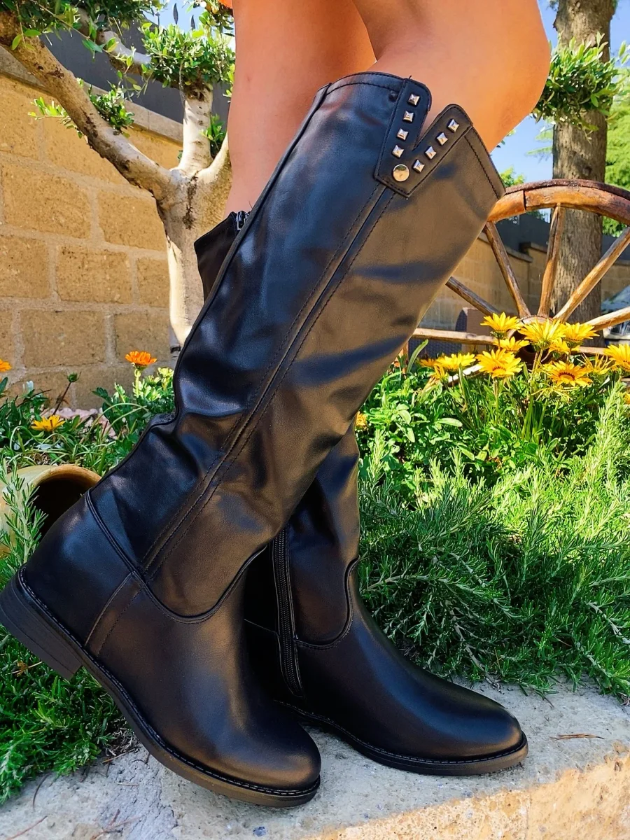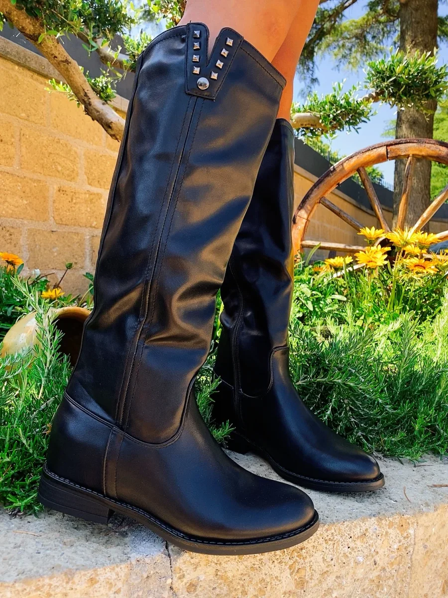 Stivale alto al ginocchio con Dettaglio In borchie ottima qualità con calzata regolare.