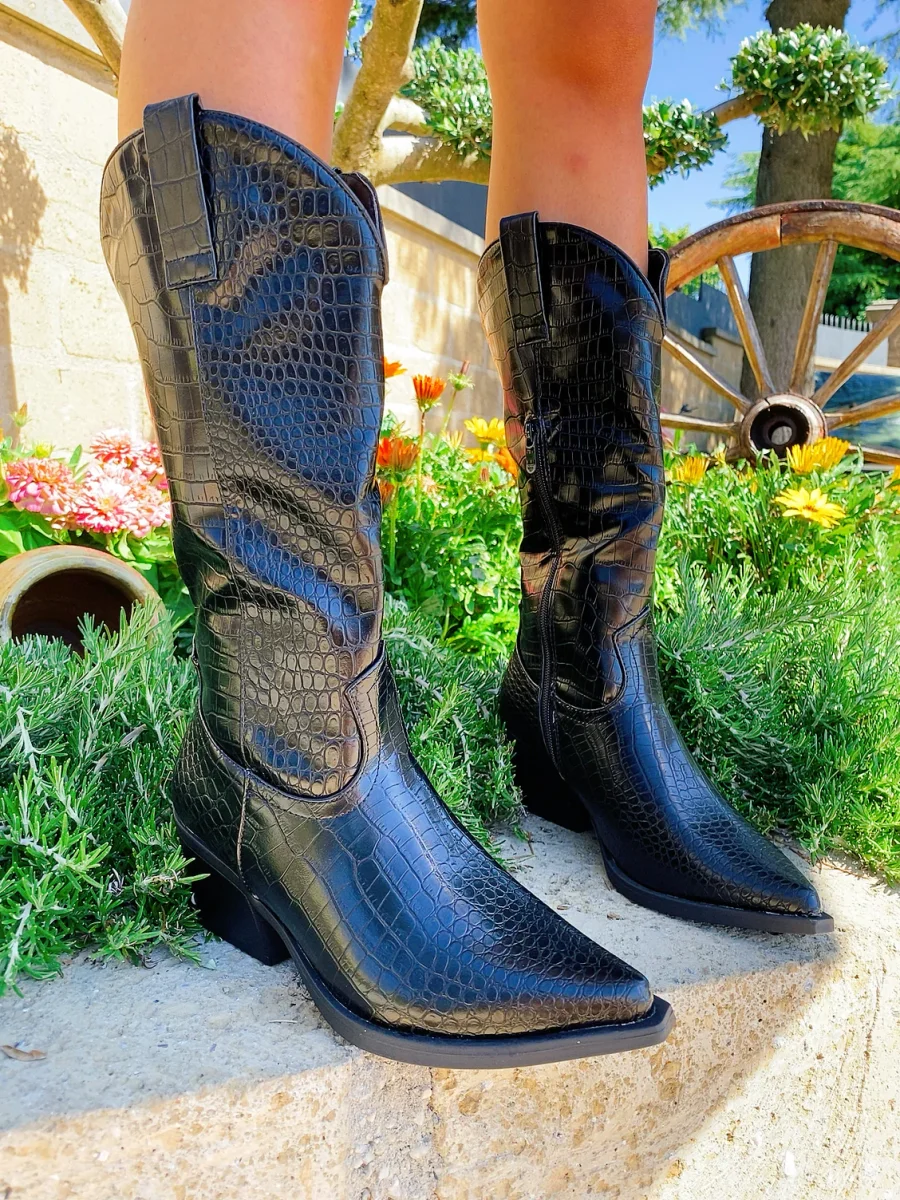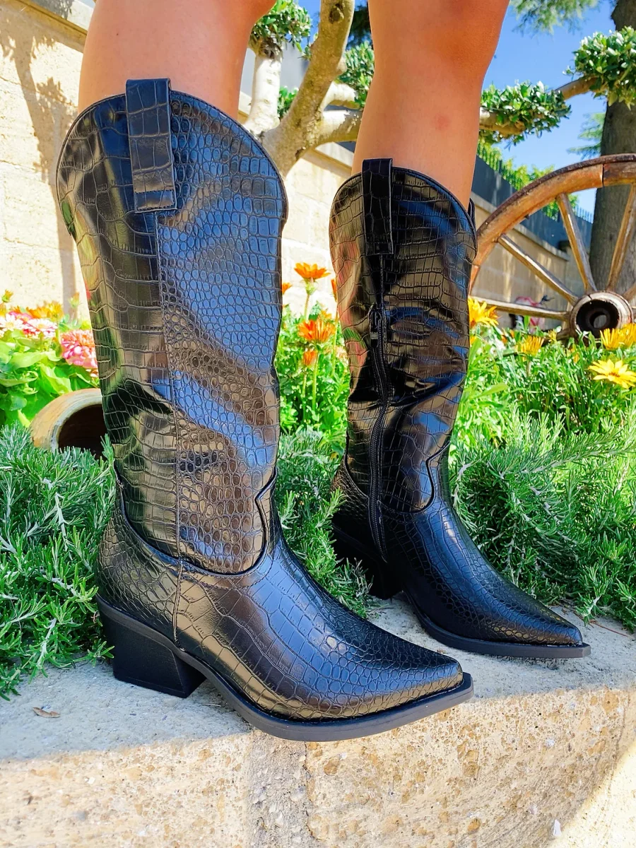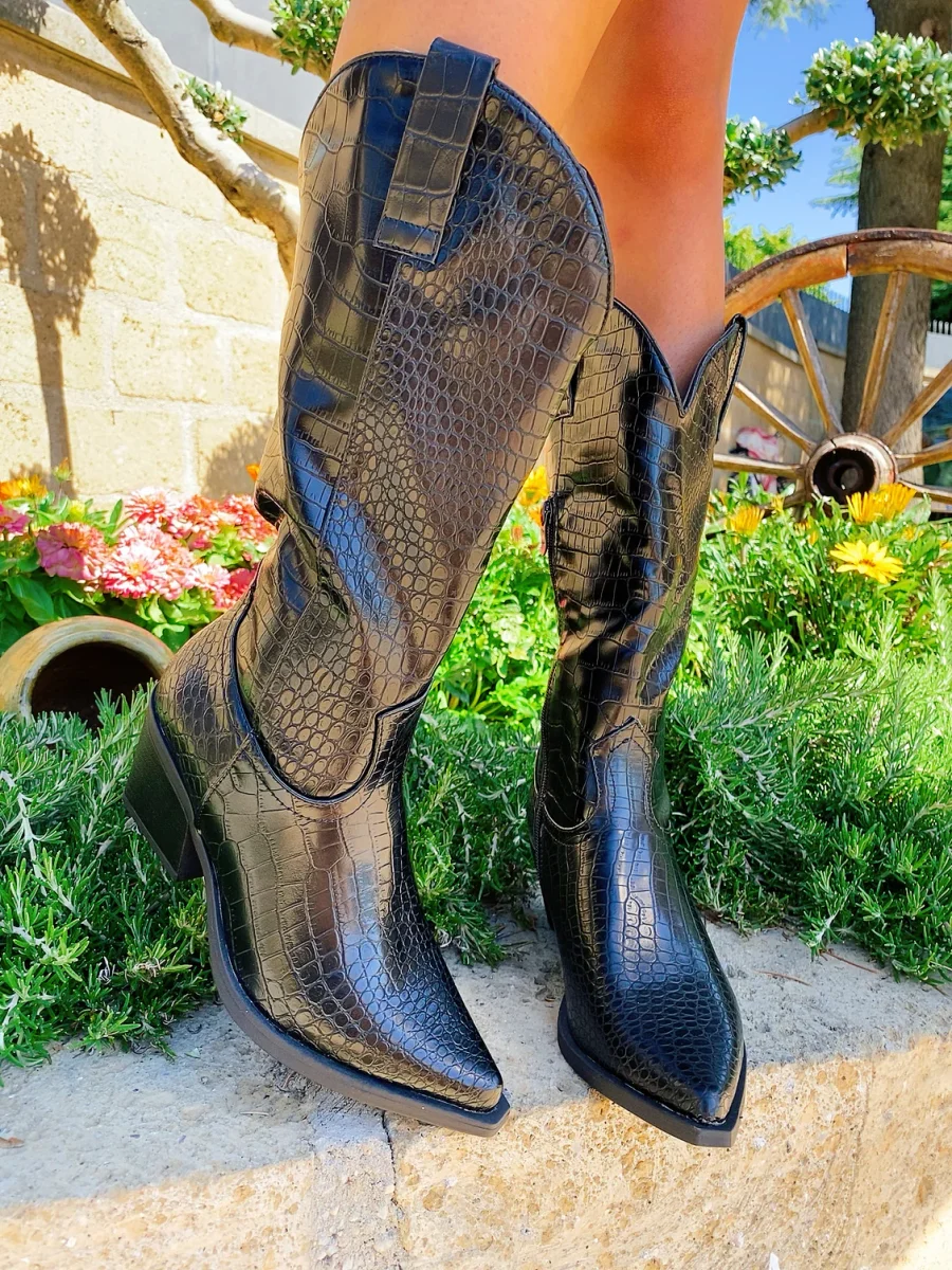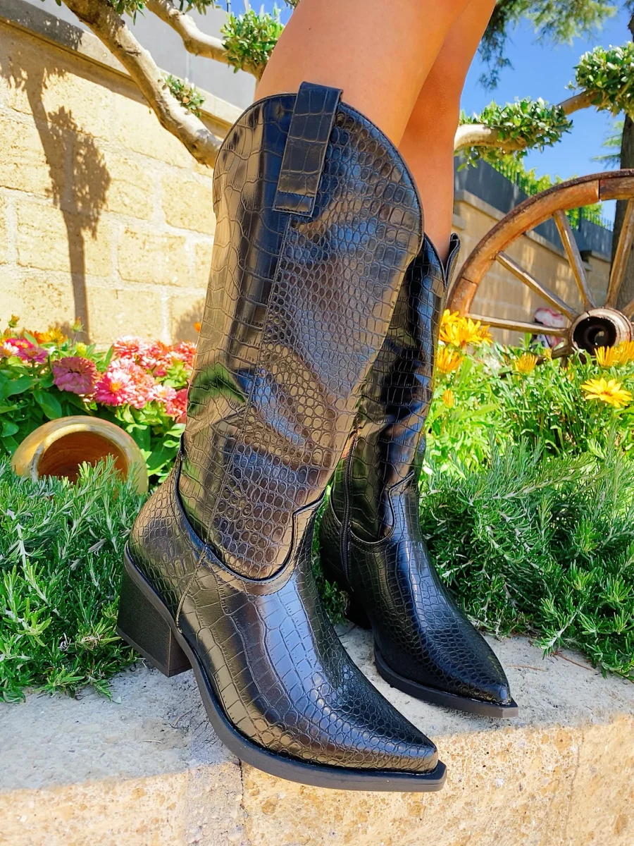 Stivale medio alto effetto croco rigido ma molto comodo. Calzata regolare