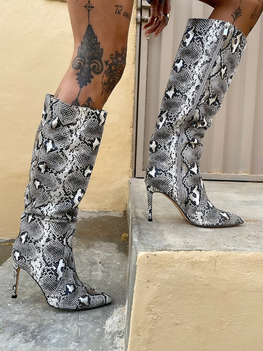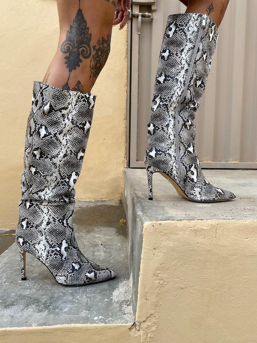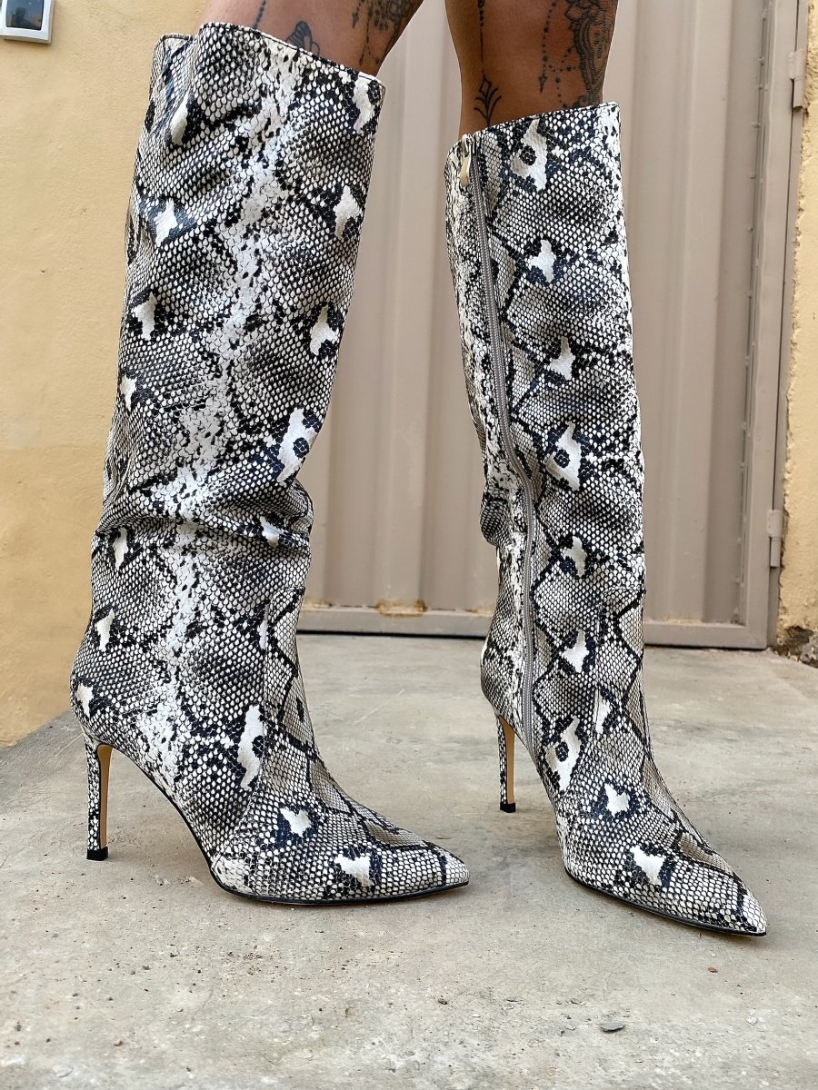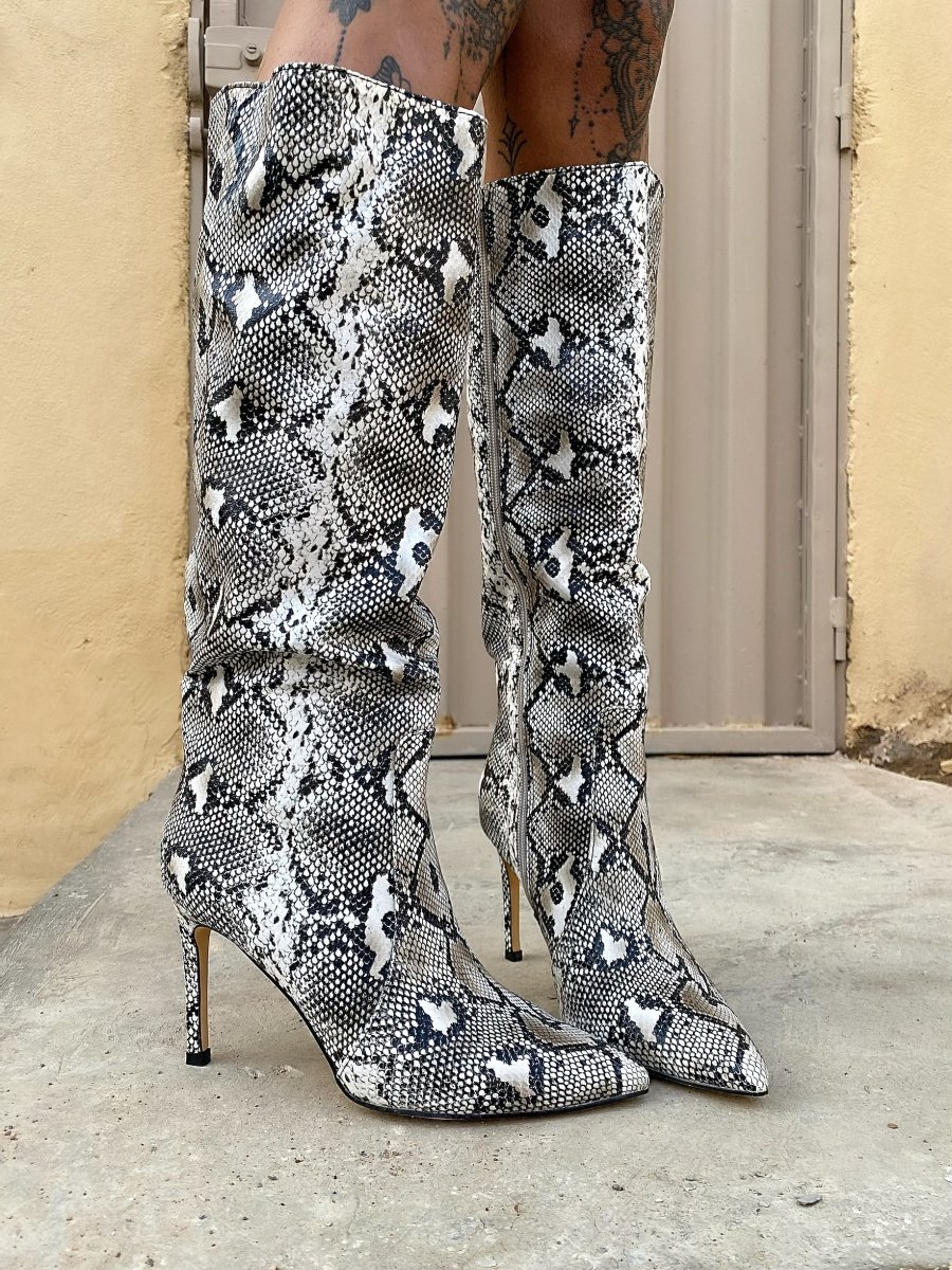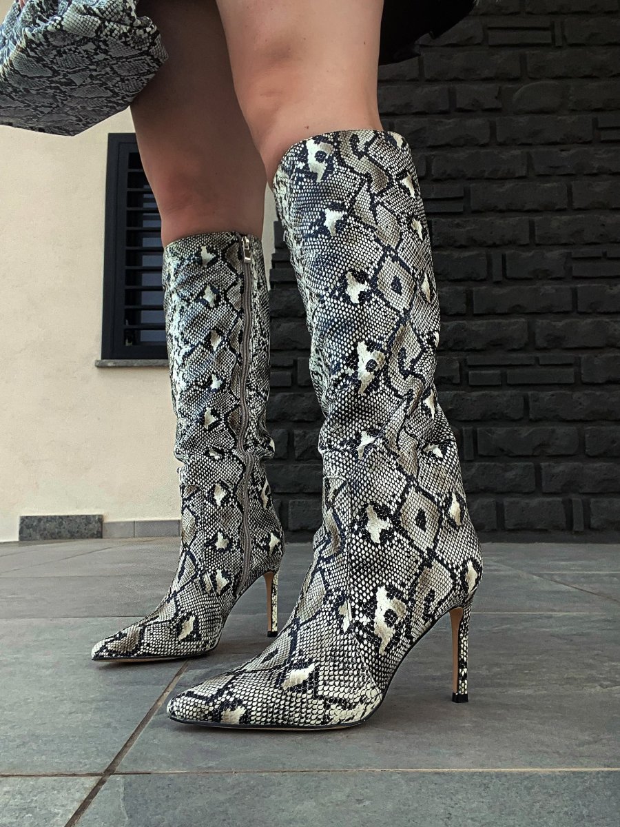 Stivale pitonato tacco fino