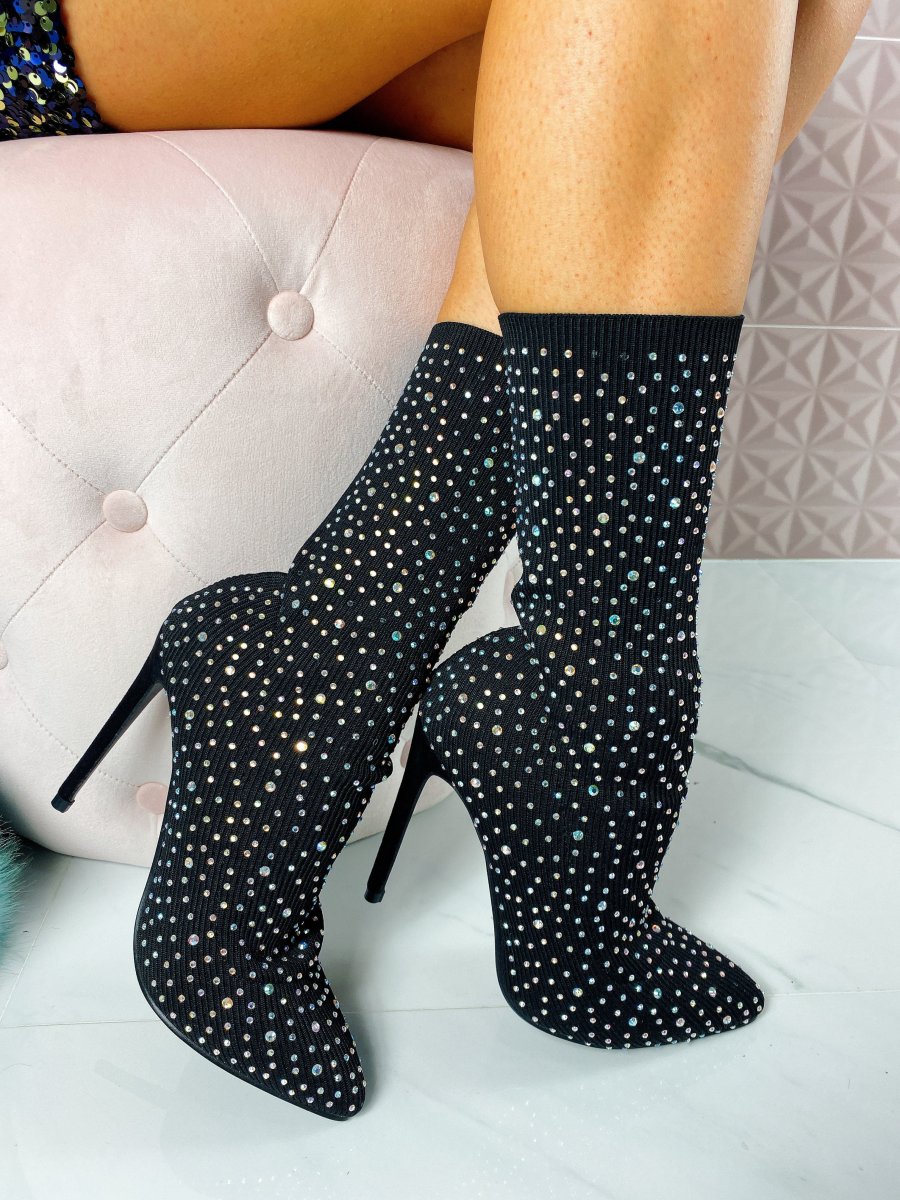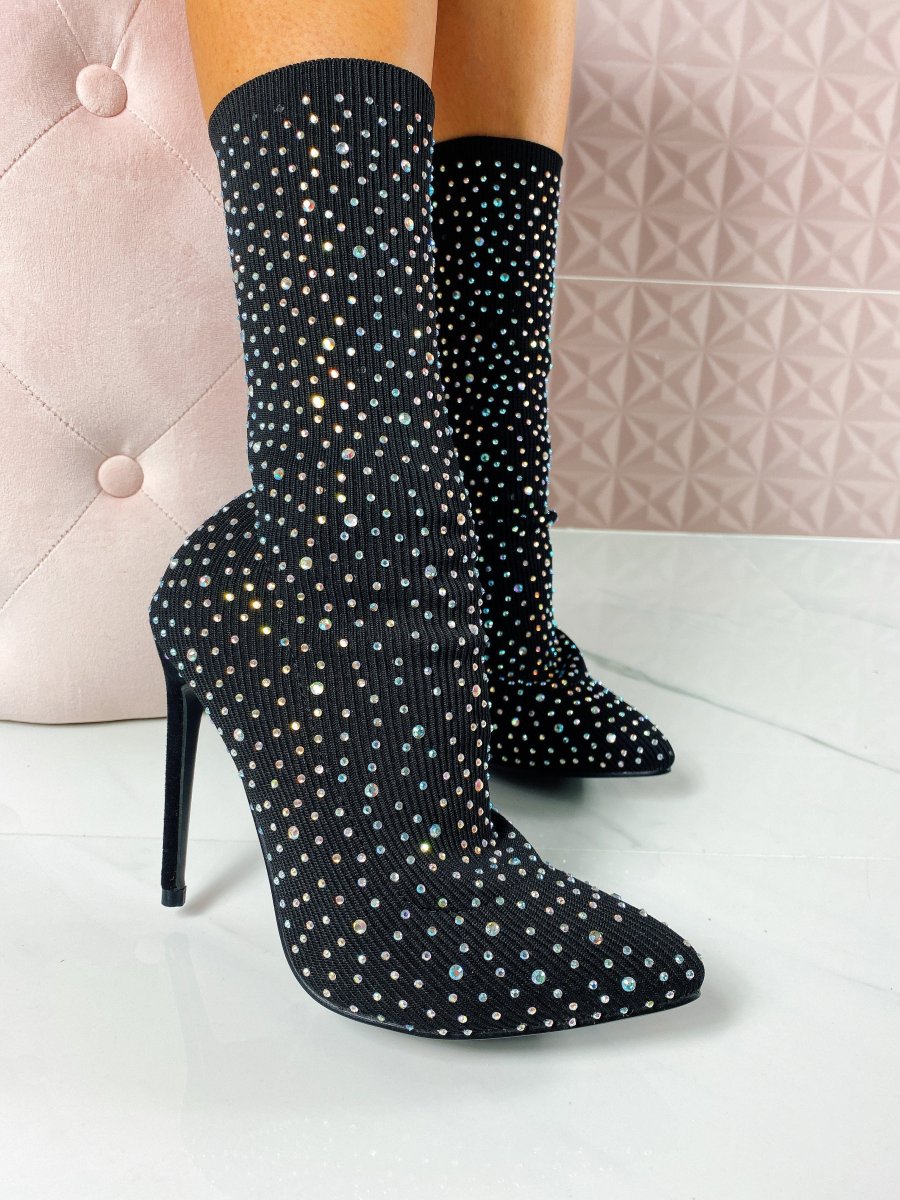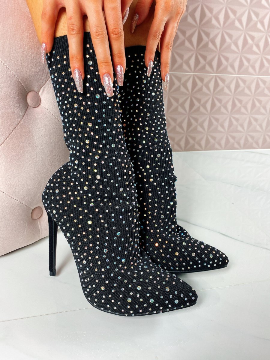 Stivale a calzino aderentissimo. Tra i mezzi numeri meglio uno in più . Pieno di strass