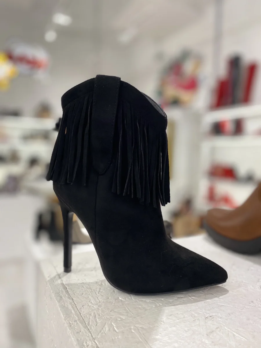 Stivaletto comodo con frange tacco fino.