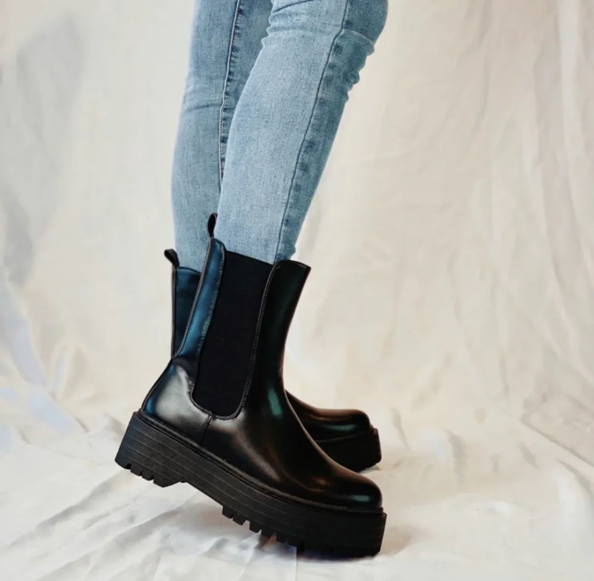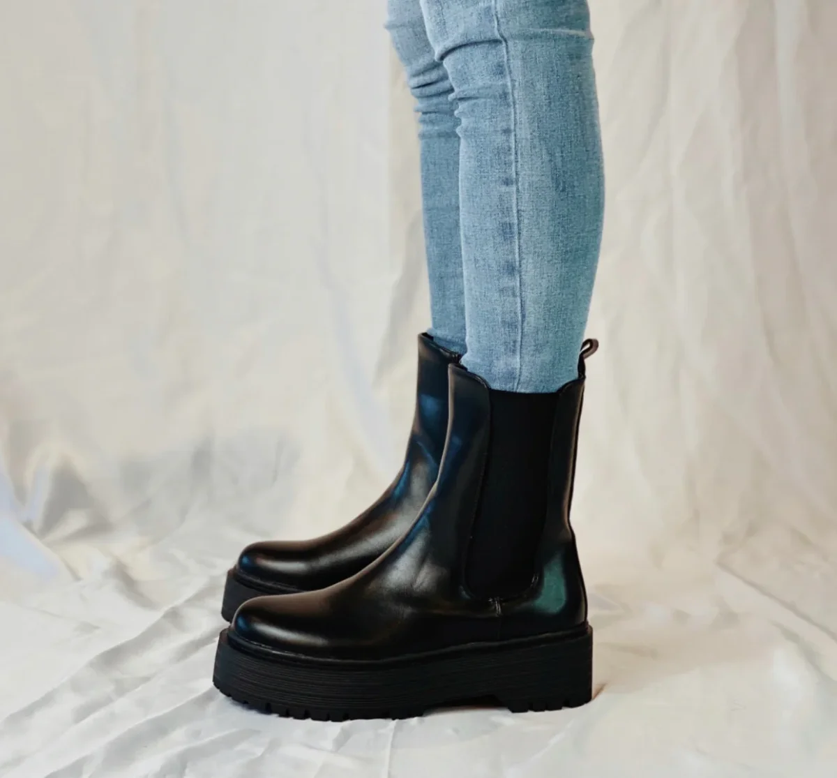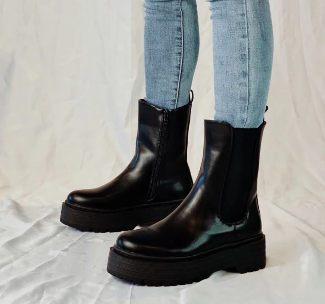 Stivaletto alto nero con banda.