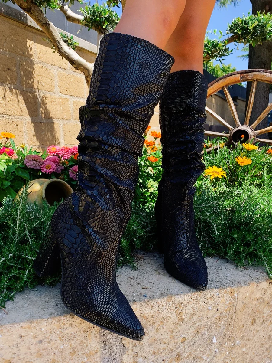 Stivale alto con zip laterale alta qualità. Calzata regolare, imbottitura interna.