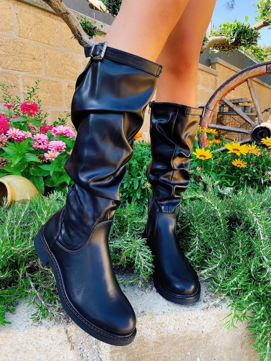 Stivali neri arricciati con fibbia molto comodi. Calzata regolare