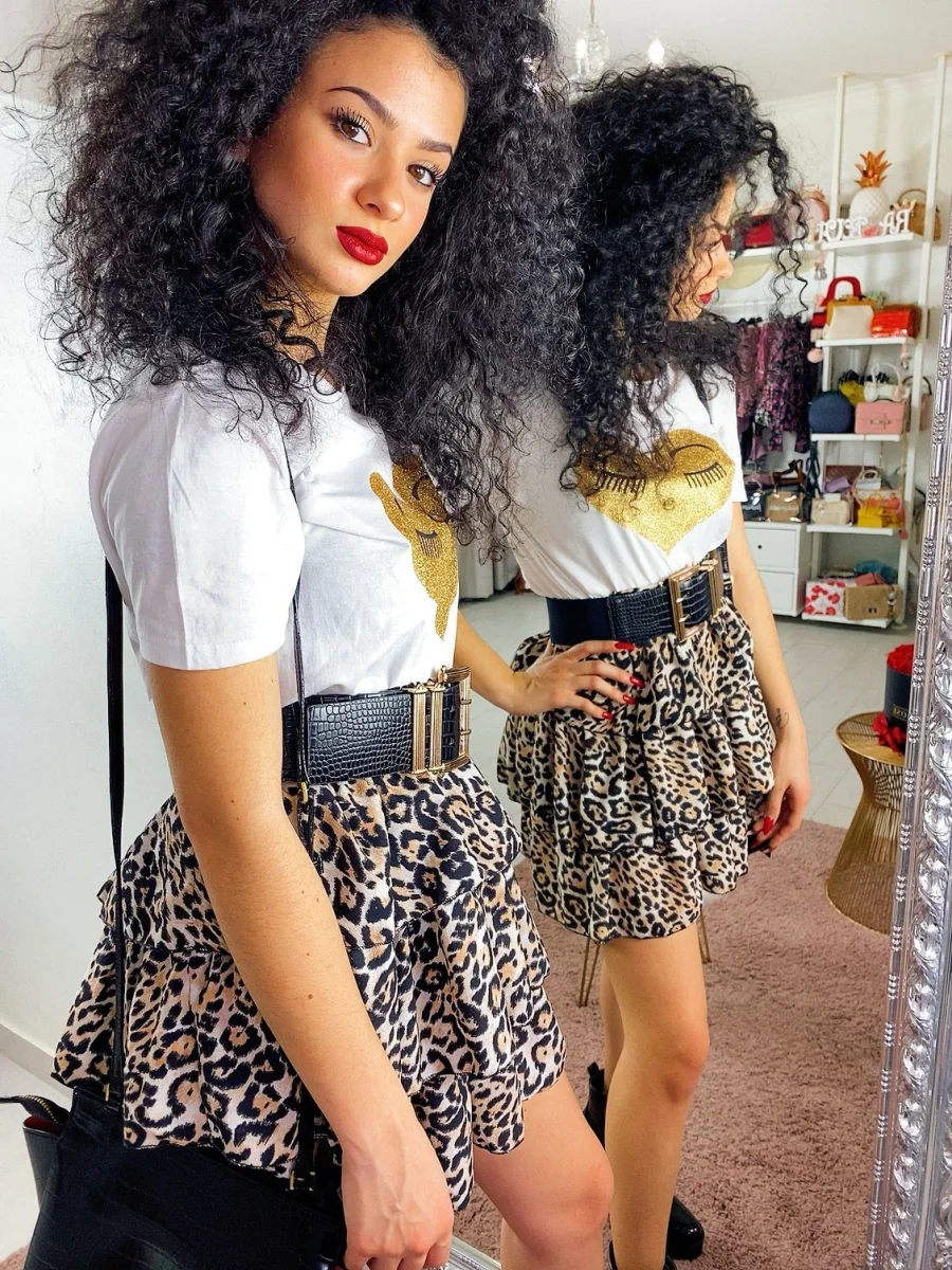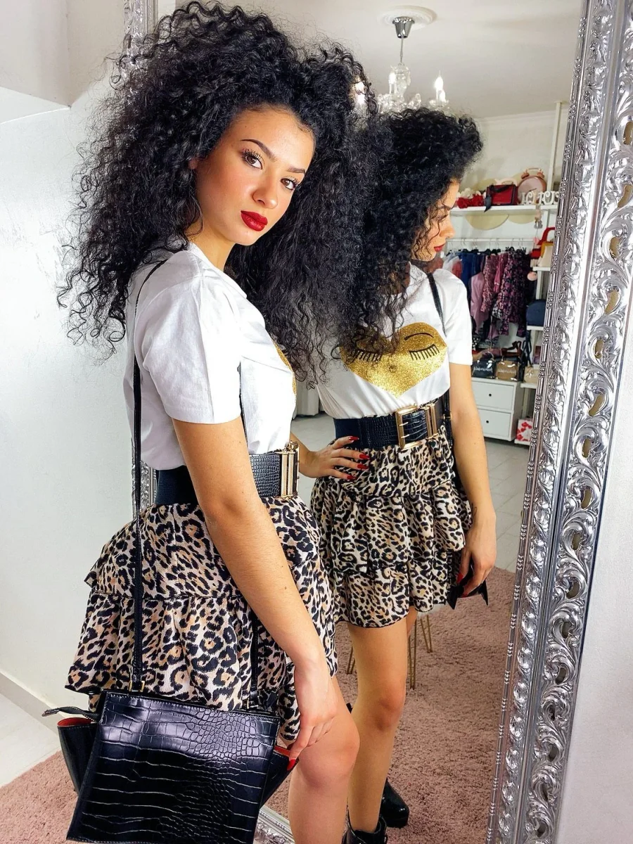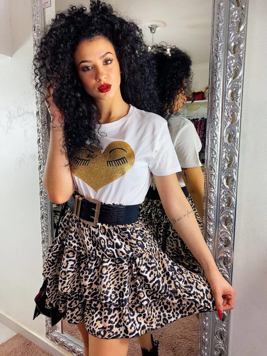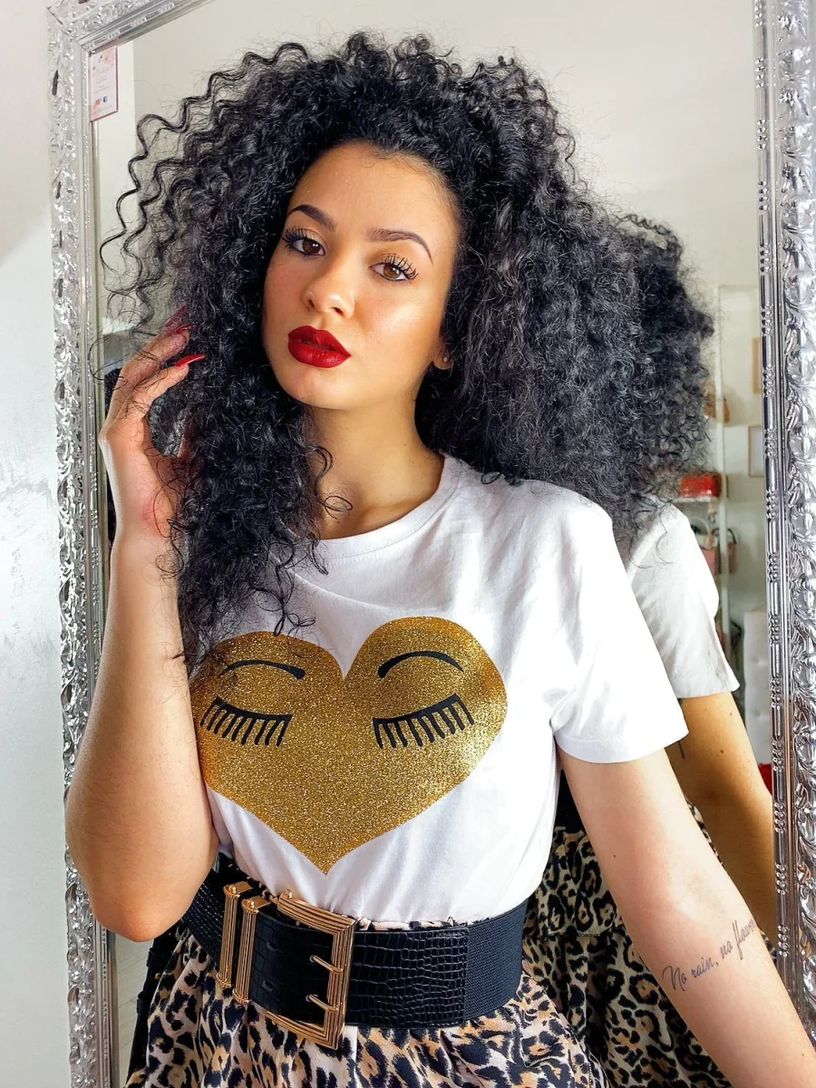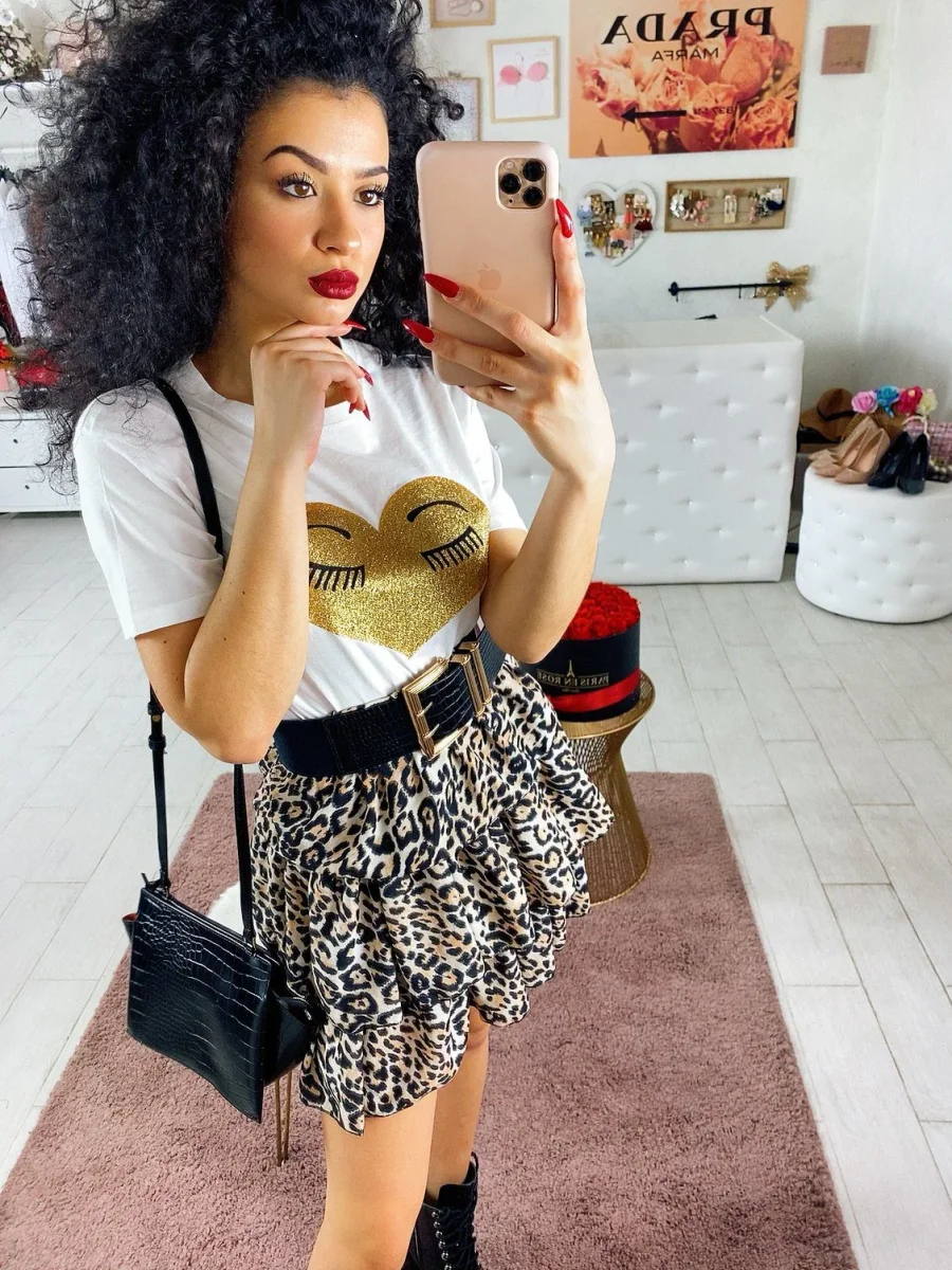 Maglietta glitter con stampa a cuore completamente glitterato oro. Lunghezza regolare