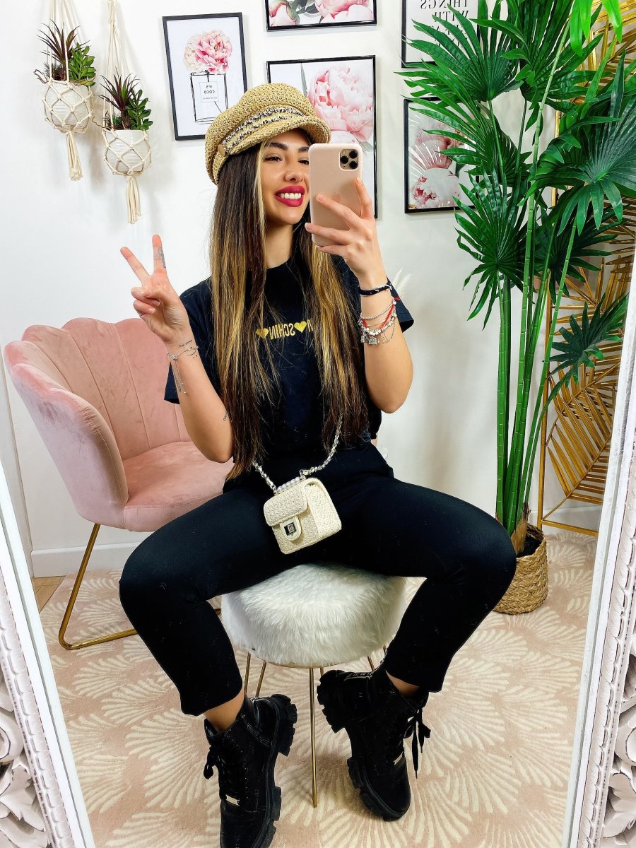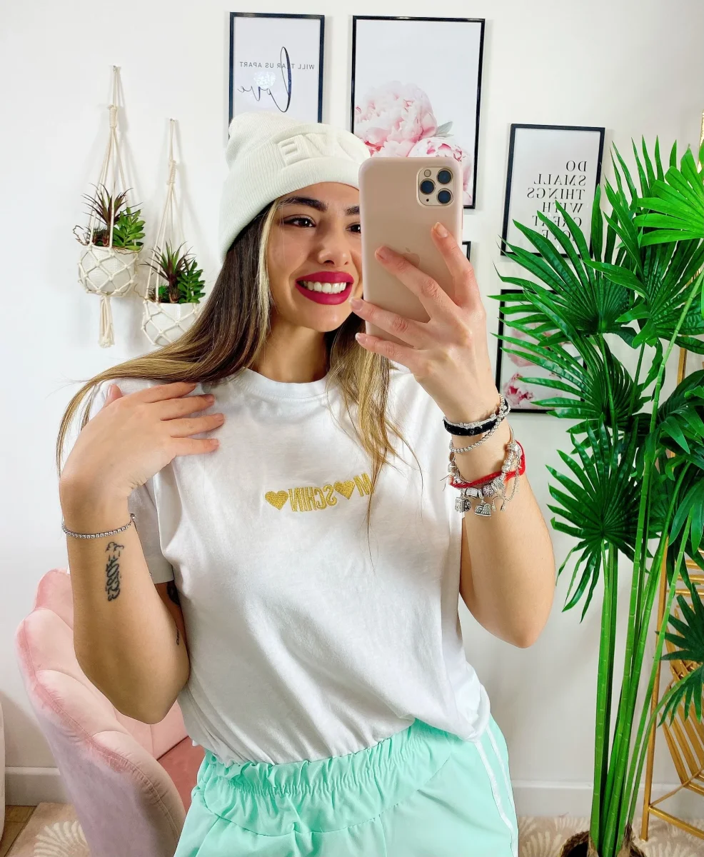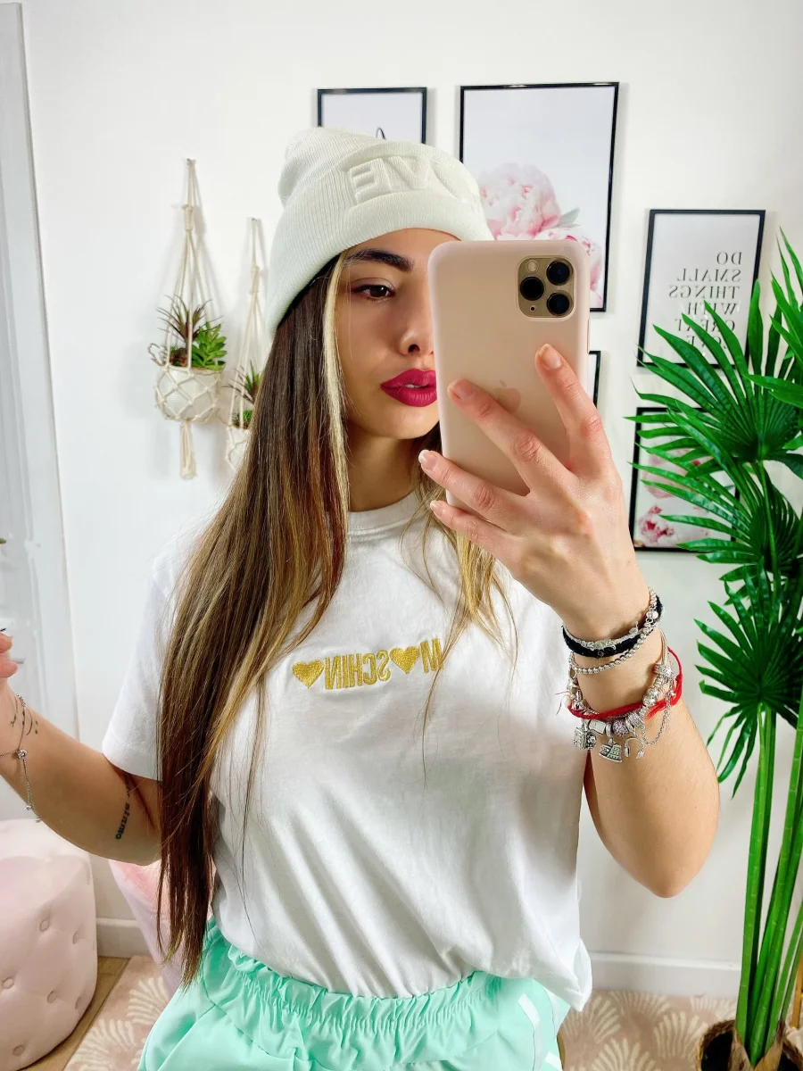 T-shirt crop con stampa a cuori, manica corta
