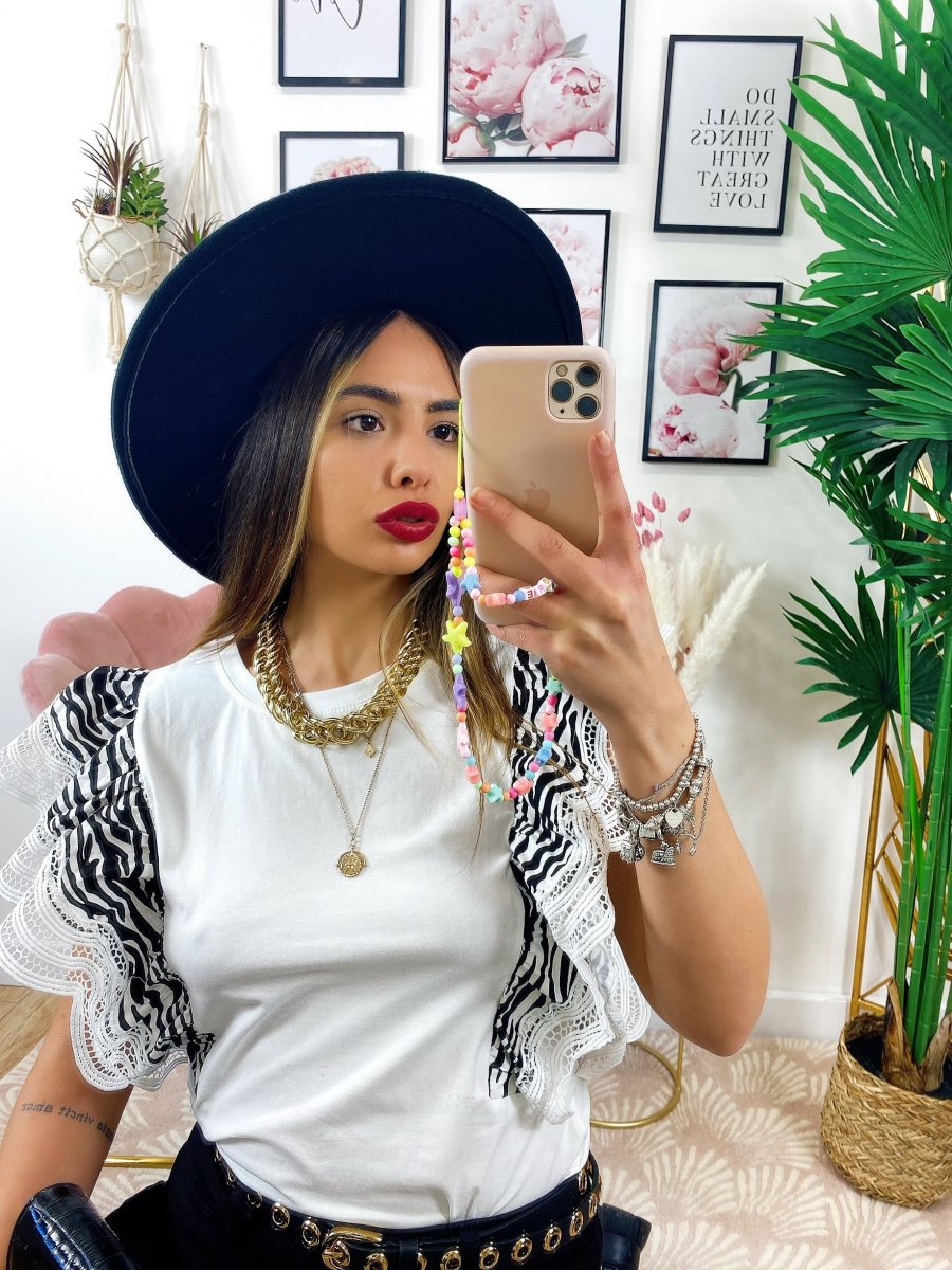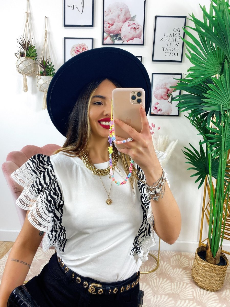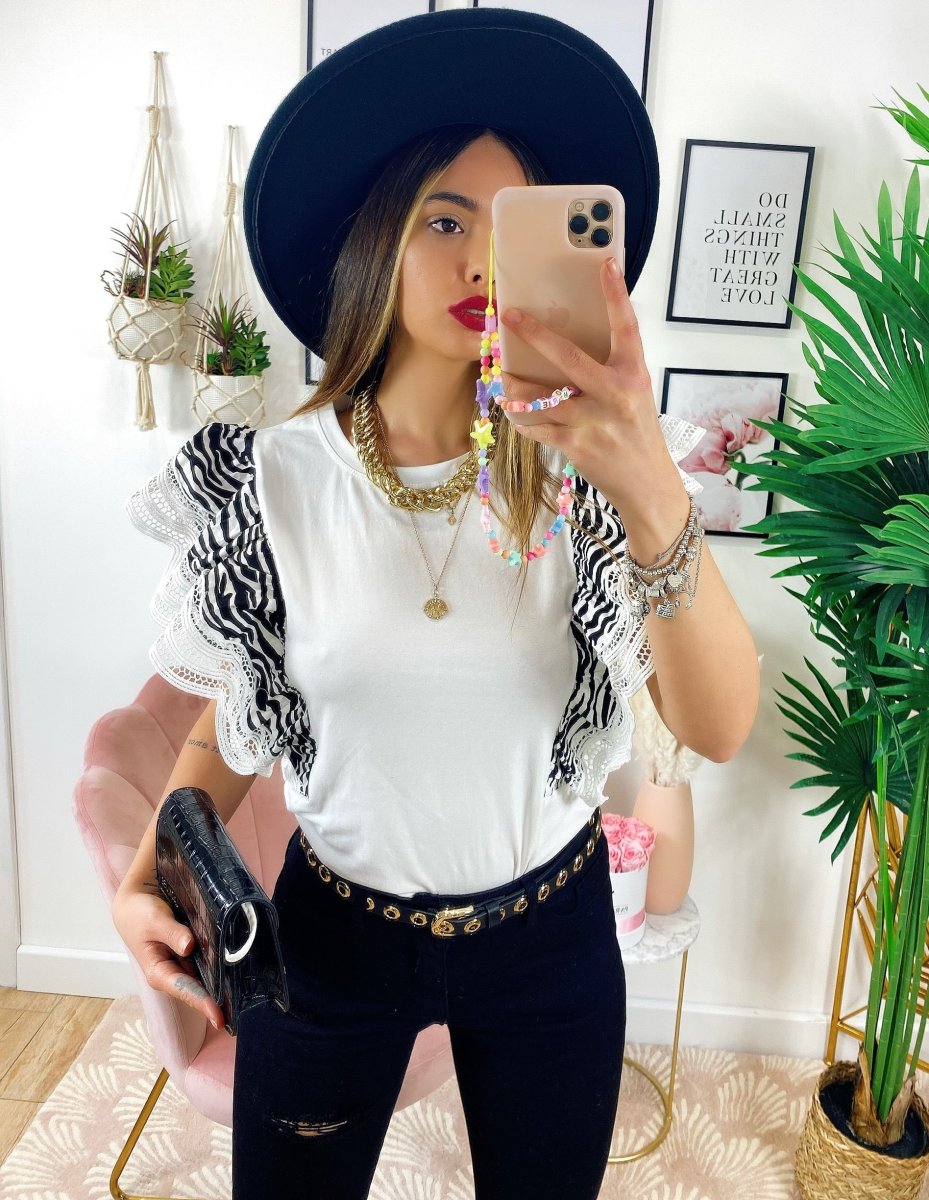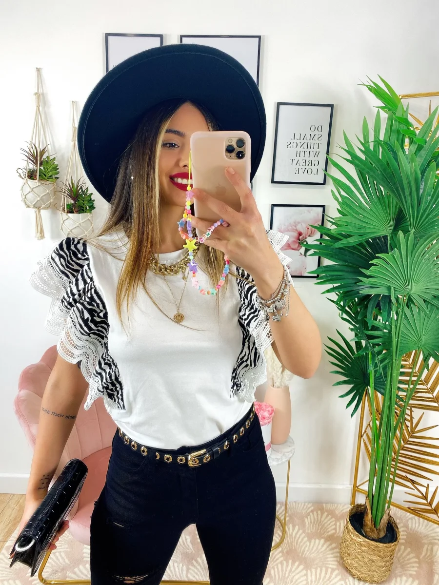 T-Shirt con voilant zebrata.