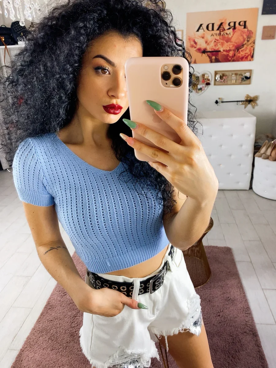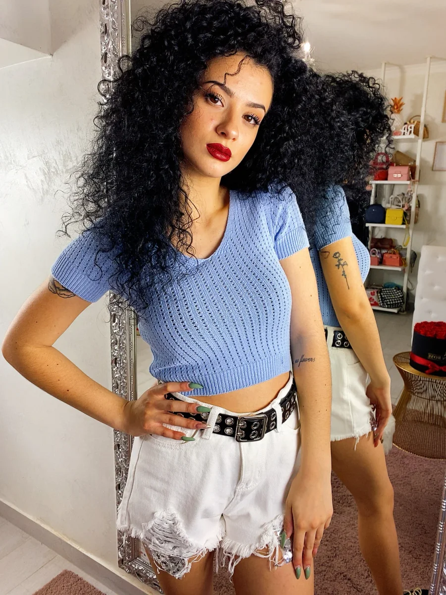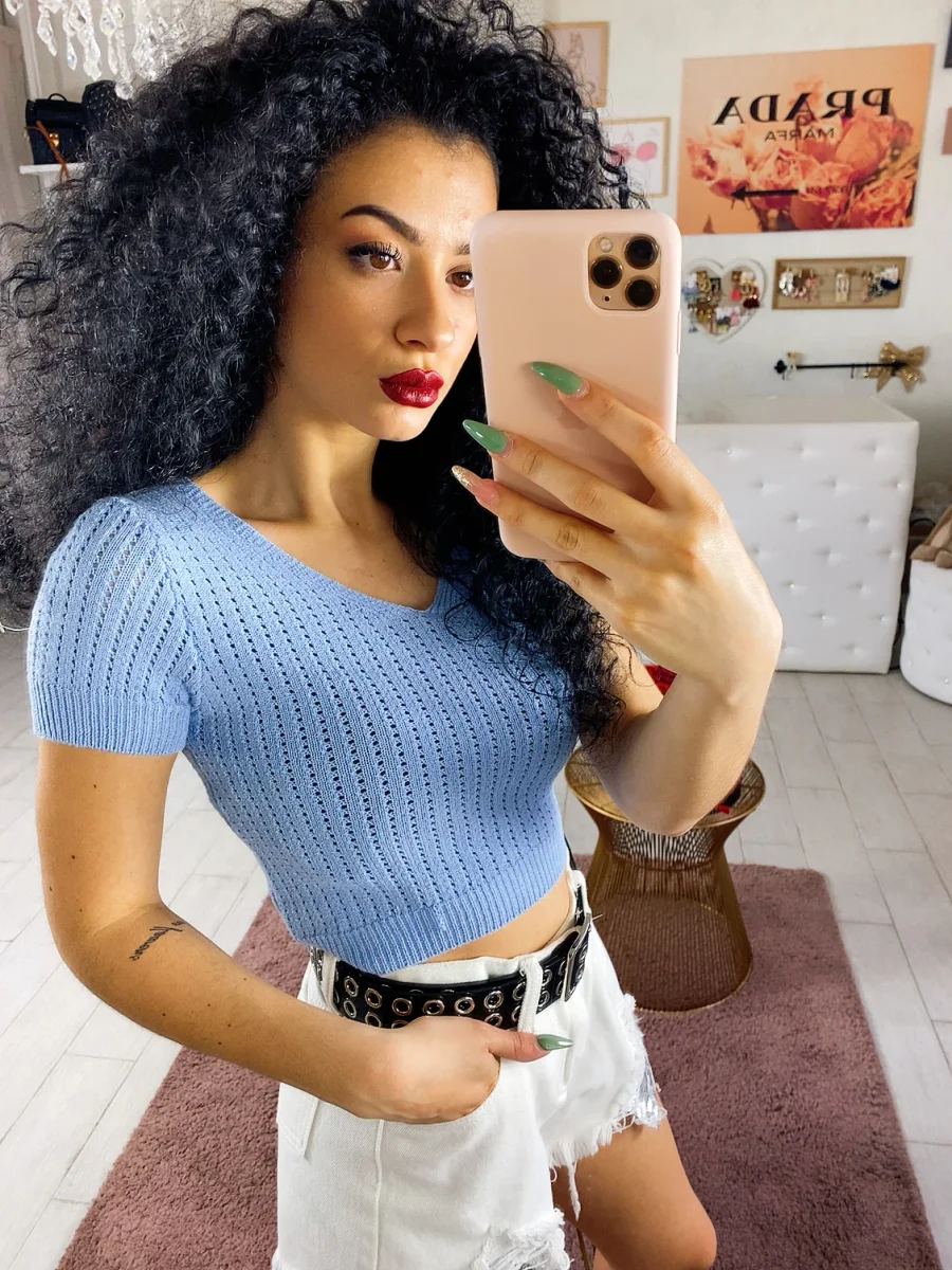 T-shirt traforata in maglia. Colore bellissimo e fresco per questa stagione