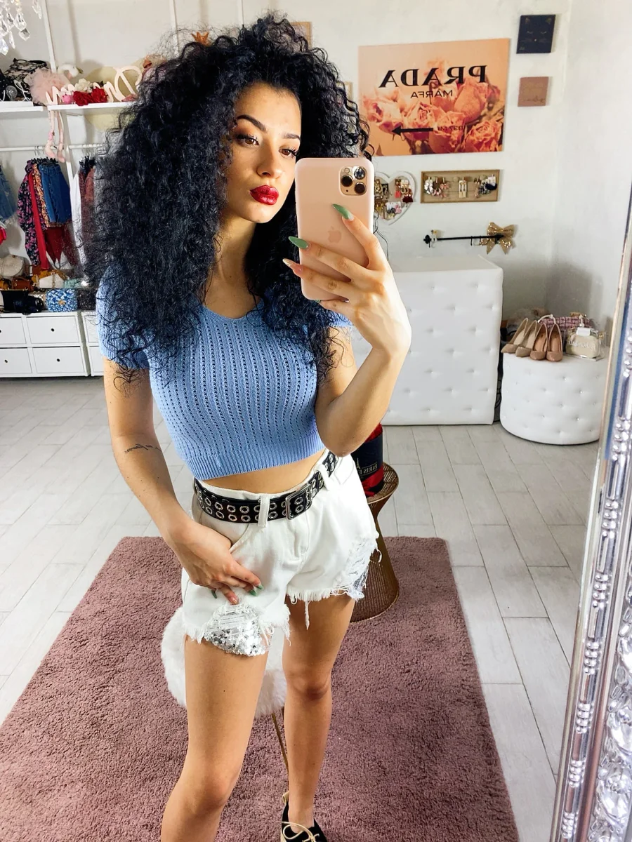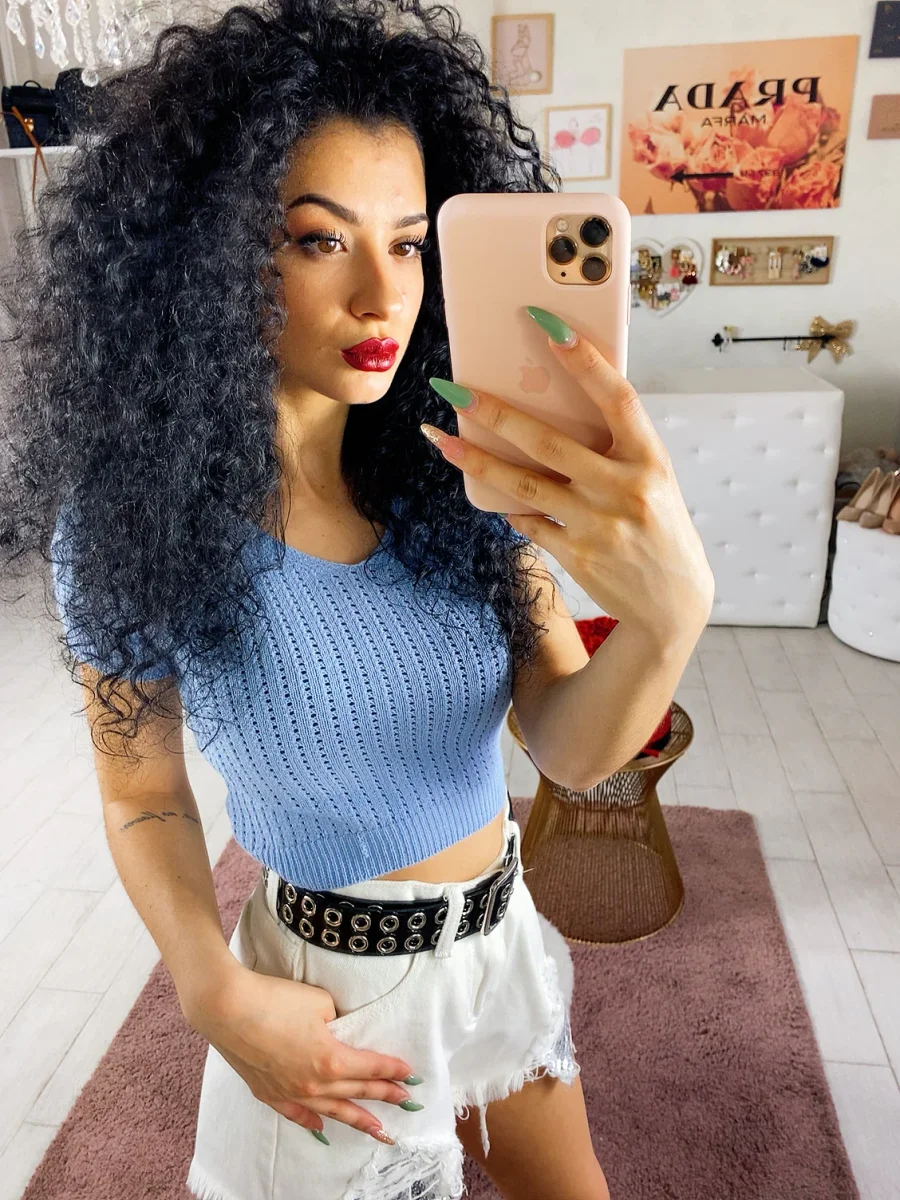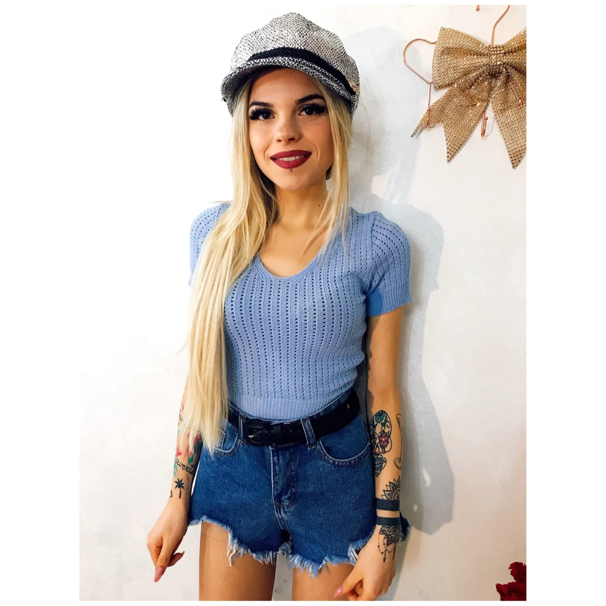 T-shirt traforata in maglia. Colore bellissimo e fresco per questa stagione