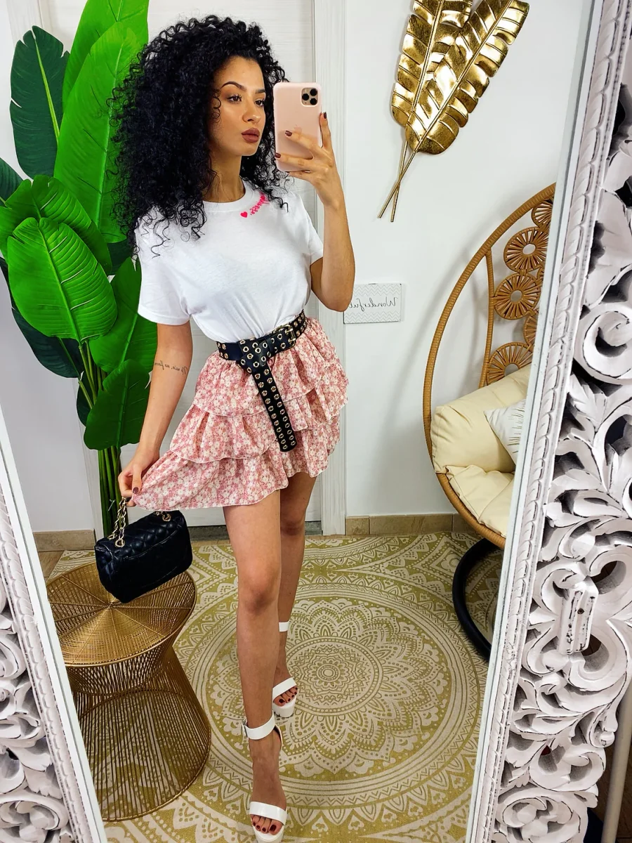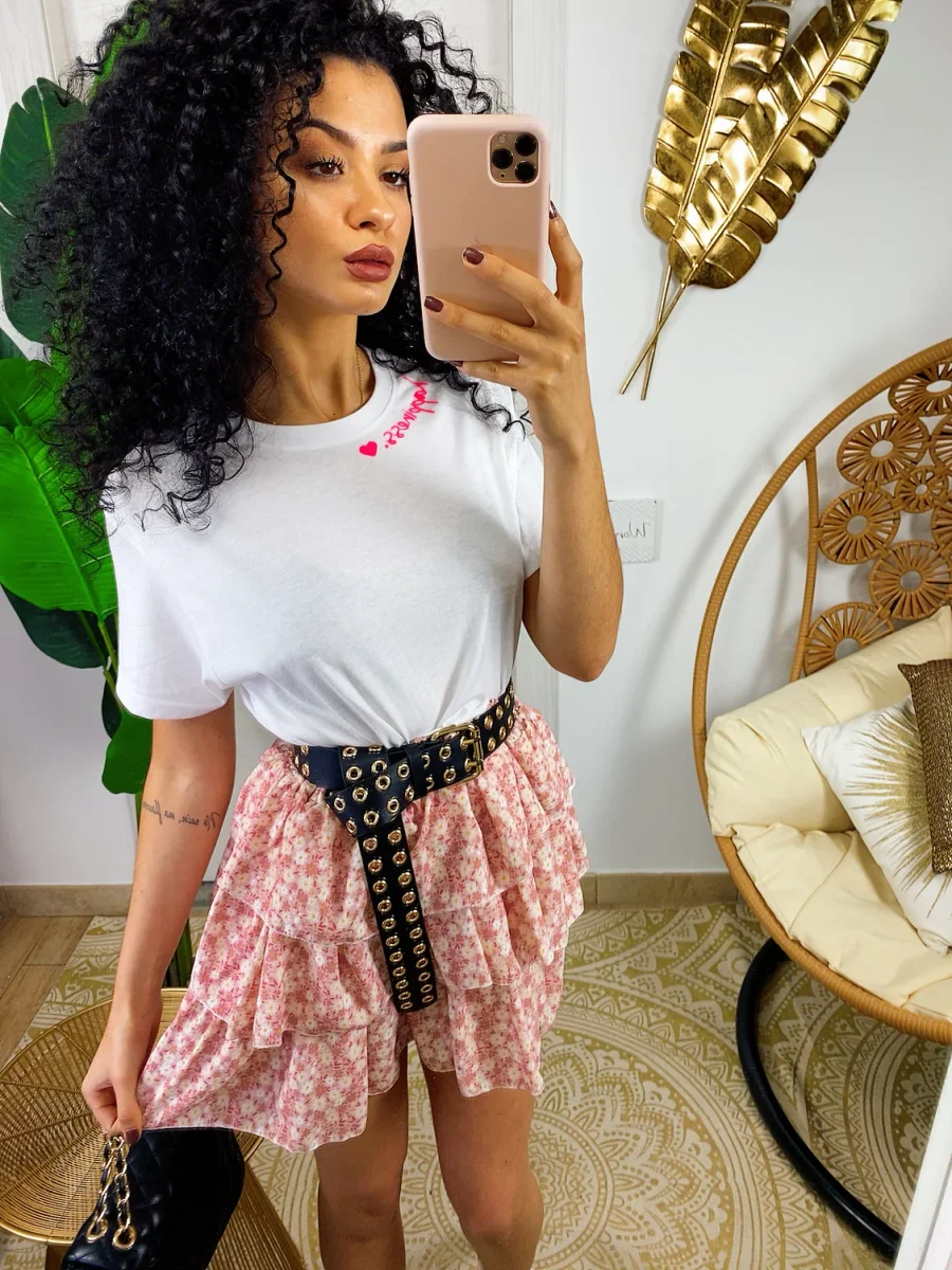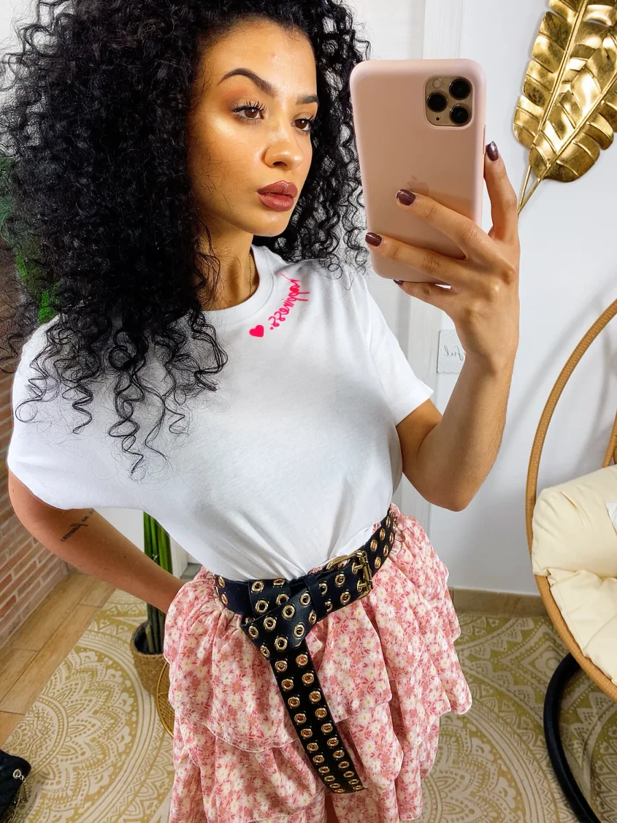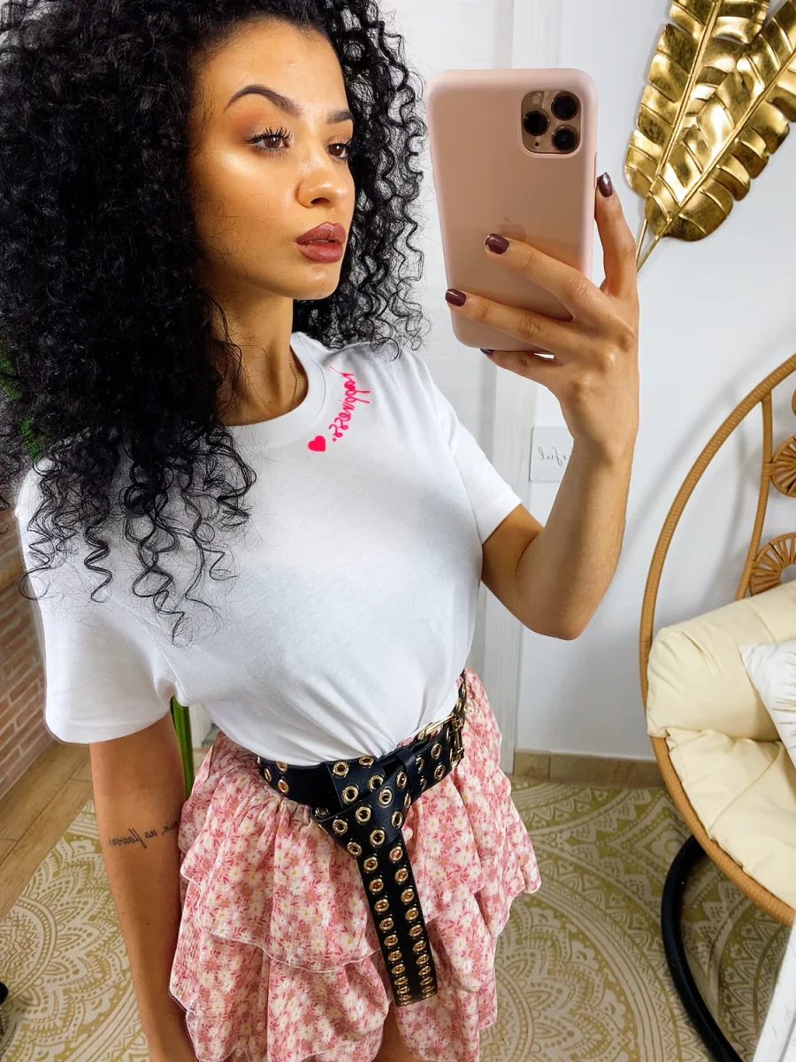 Magliettina in cotone a manica corta con stampa sul collo. Modello corto