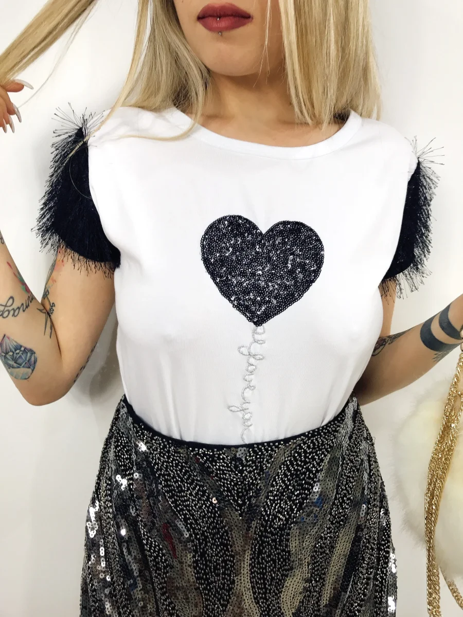 T-shirt in cotone con dettagli sulle maniche. Tessuto elasticizzato
