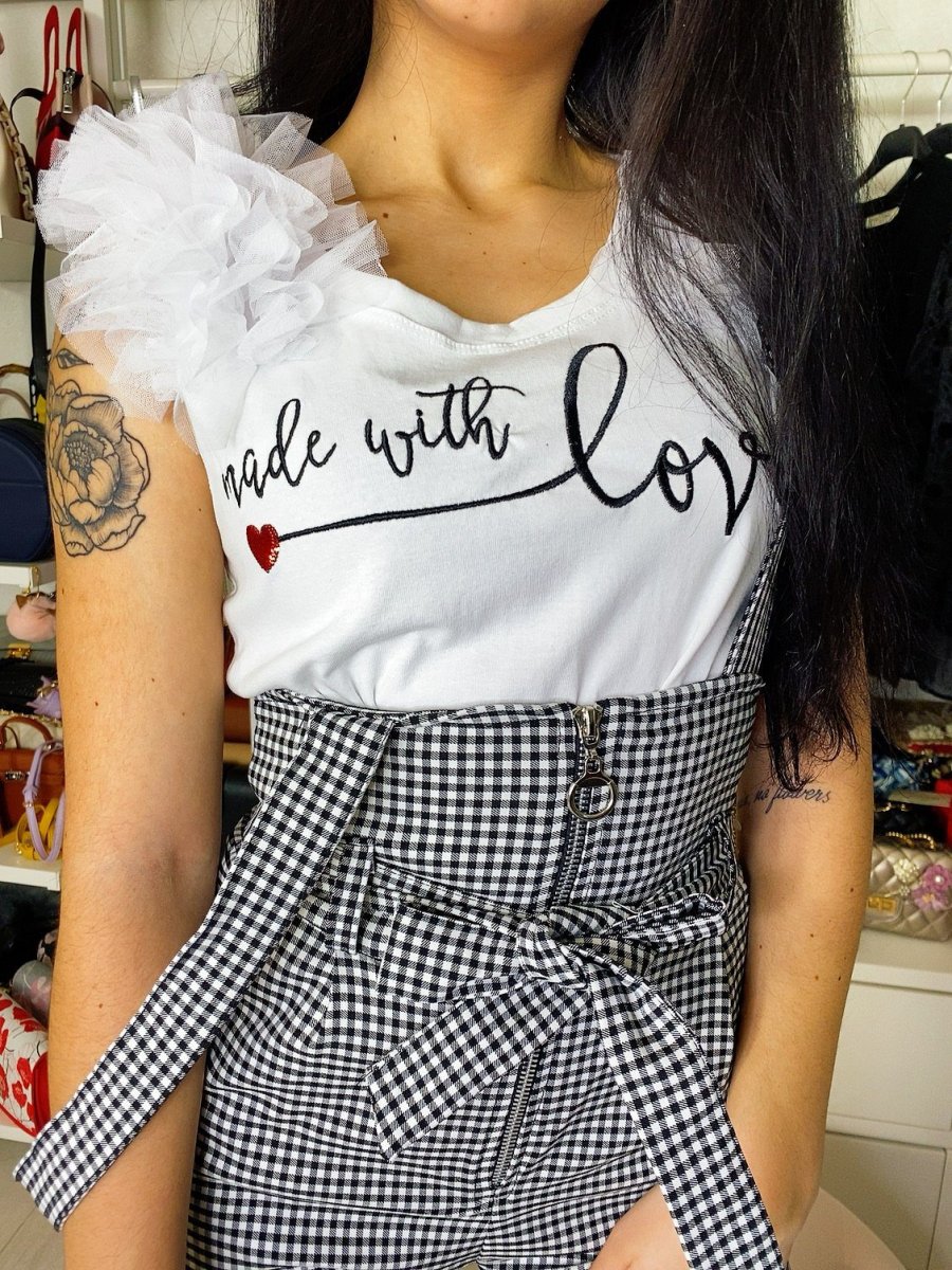 Magliettina in cotone lunghezza regolare. Rouge sulla spallina. Taglia unica