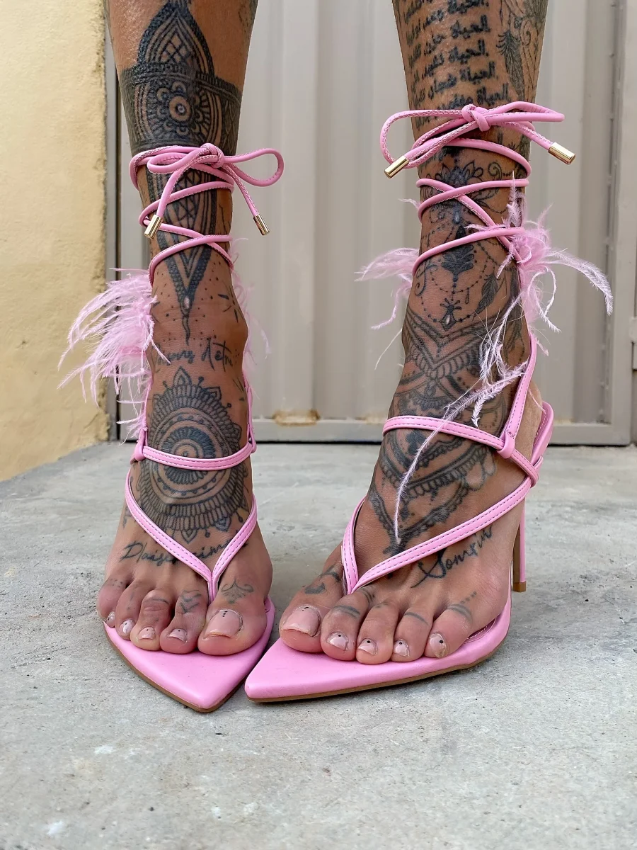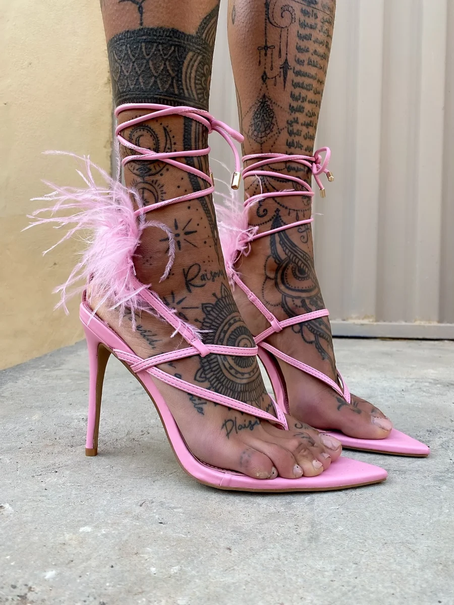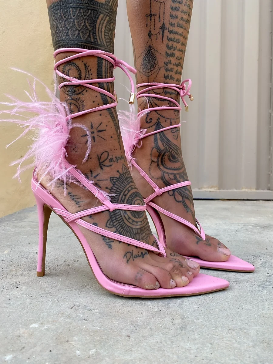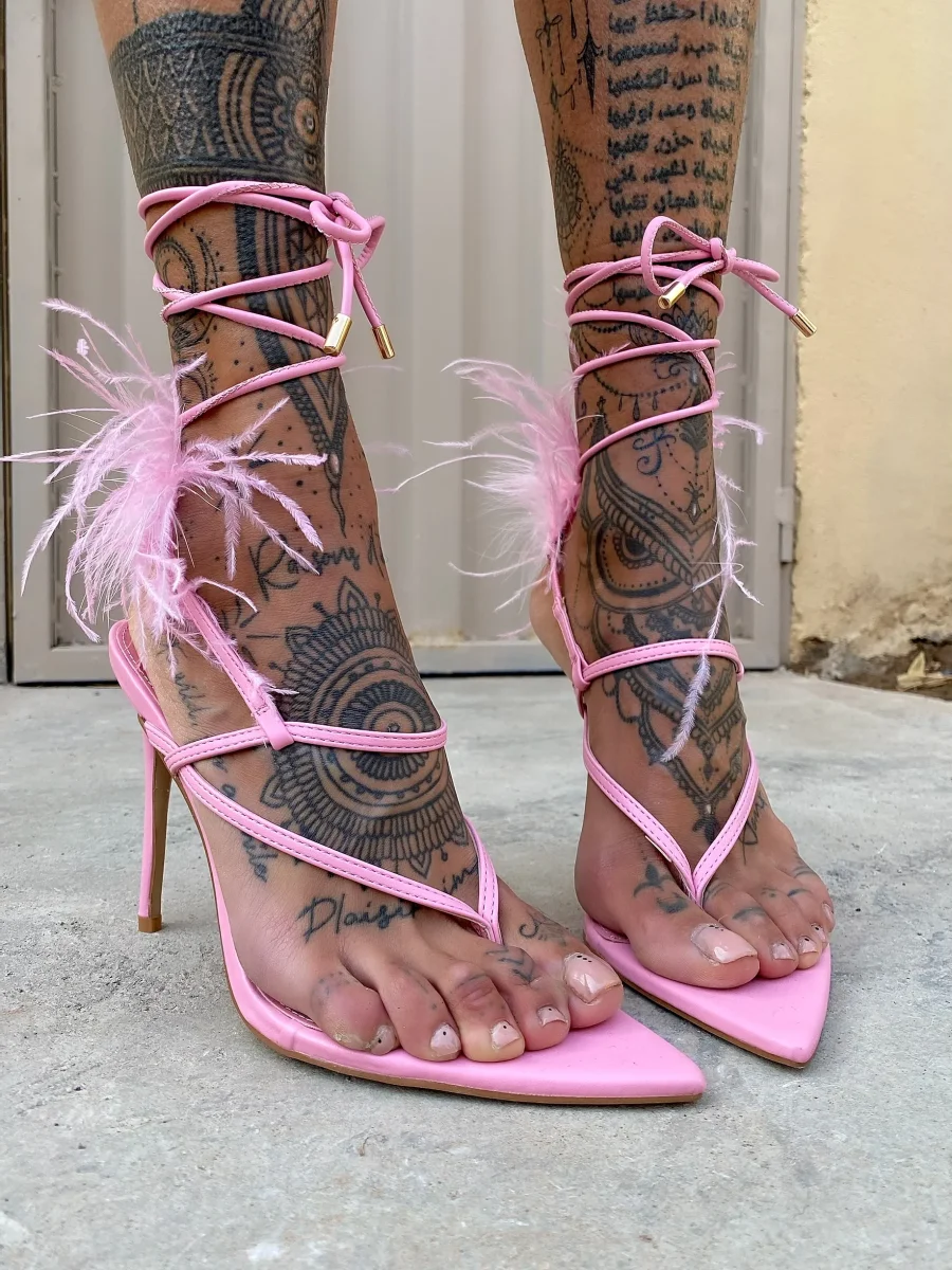 Tacchi alla schiava con piume nude, altezza tacco 12cm