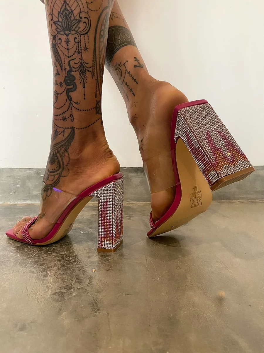 Tacchi fucsia flame con brillantini, altezza tacco 11cm