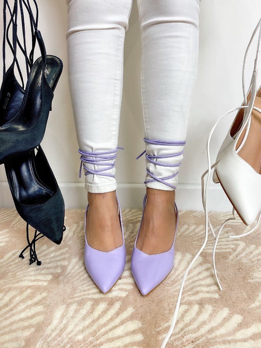 Tacco 10 cm chiusura con lacci. Calzata regolare