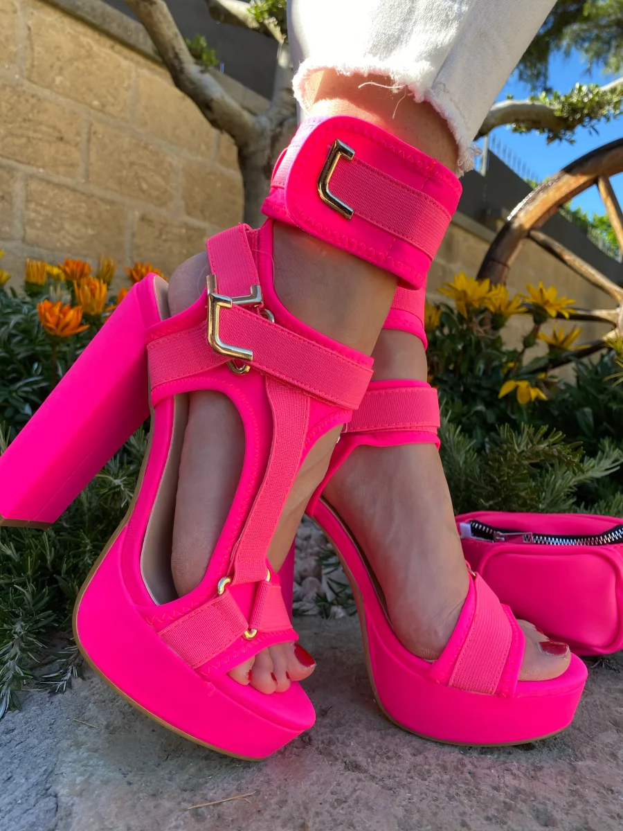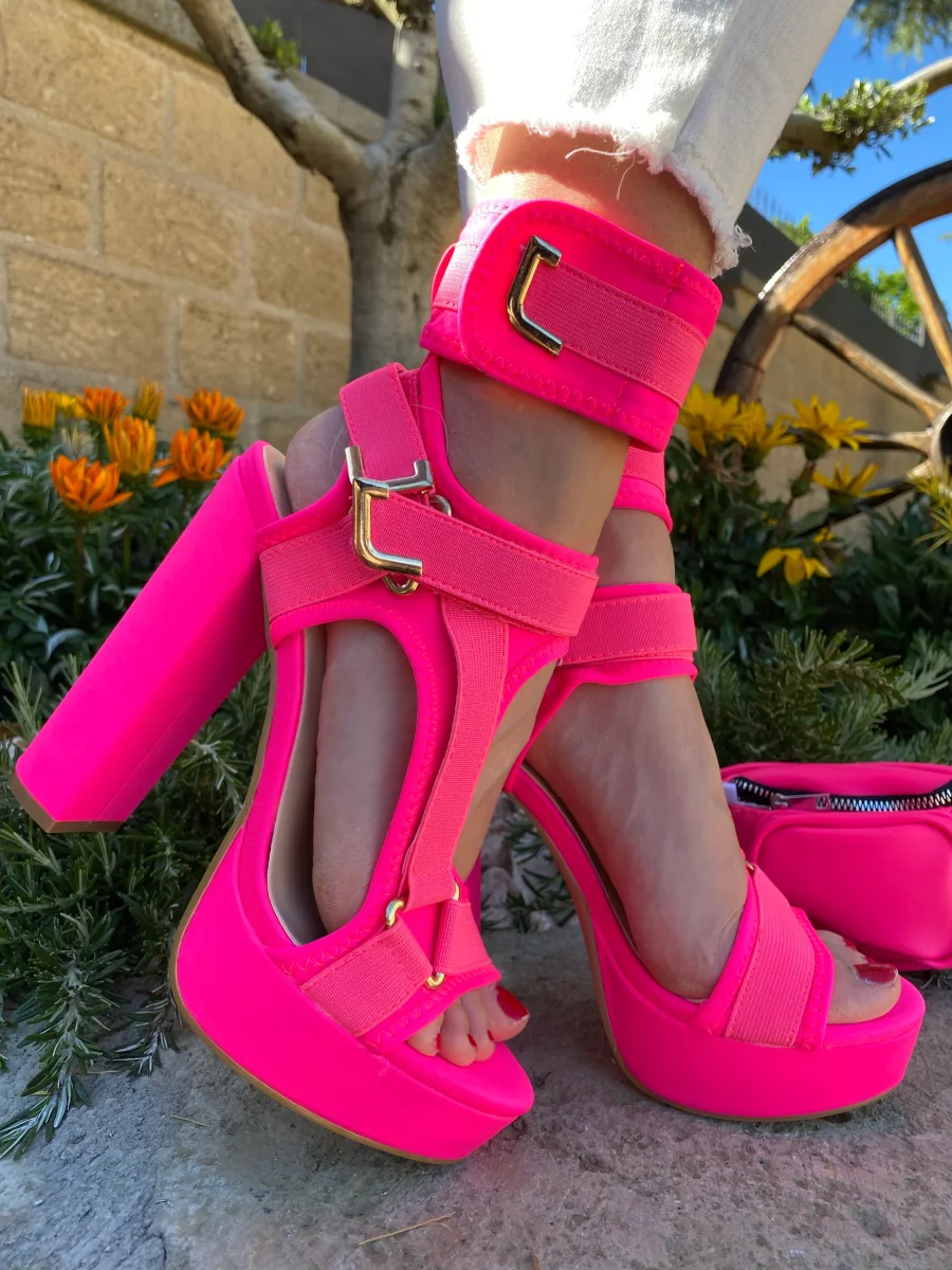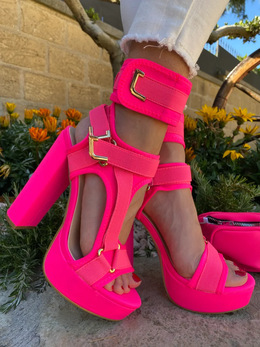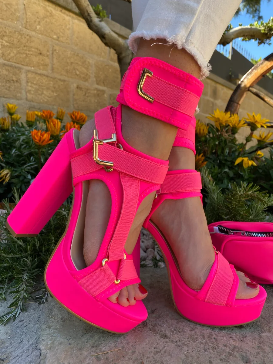 Tacco con plateau comodissimo, chiusura alla caviglia. Calzata regolare