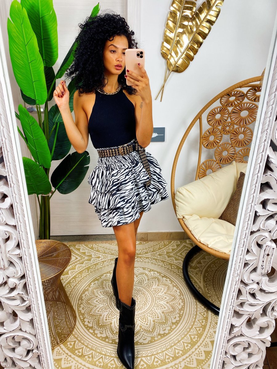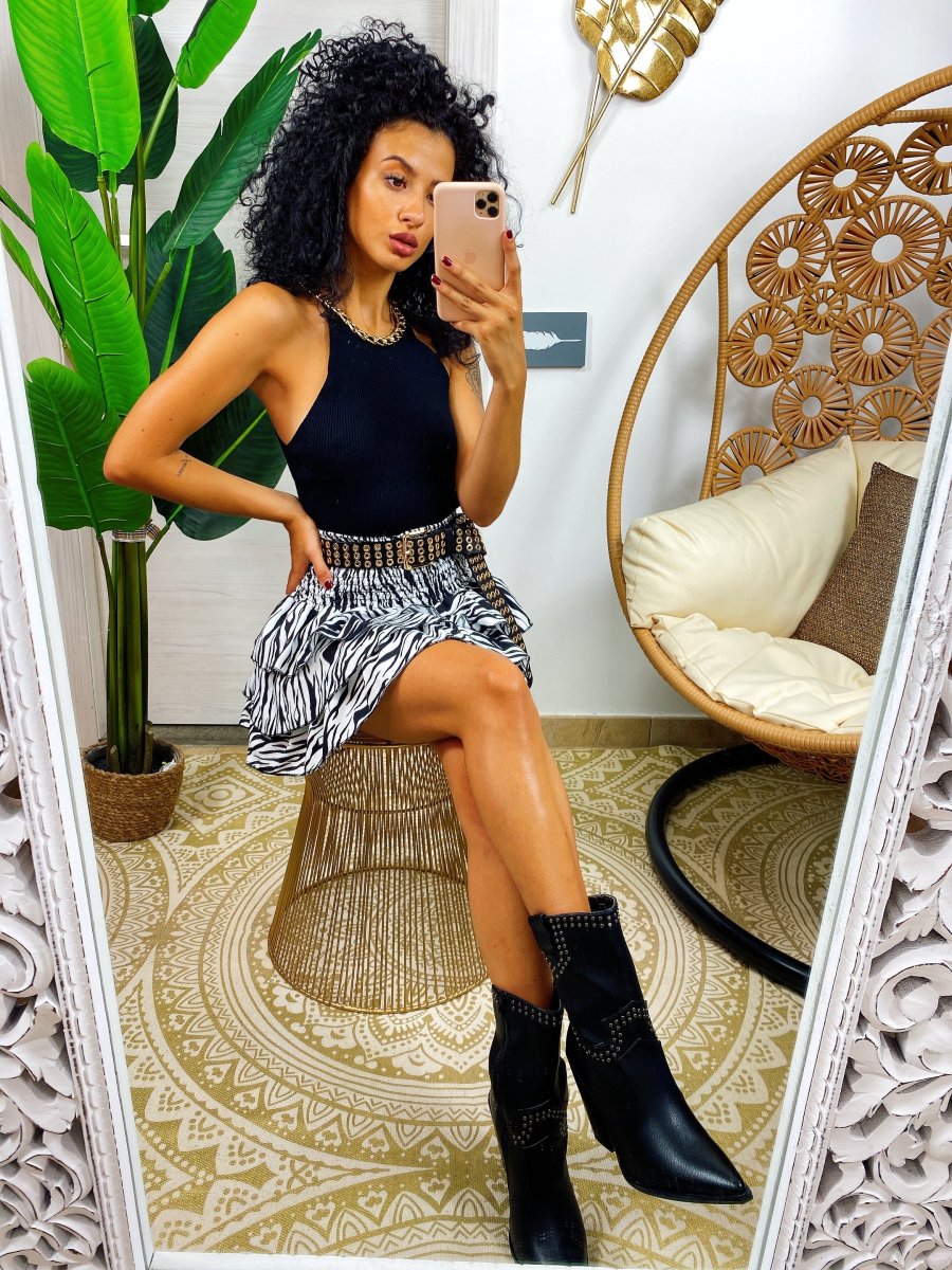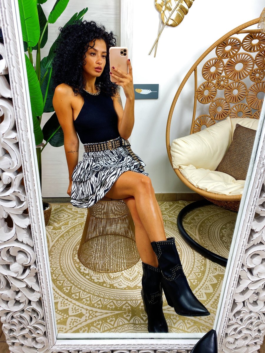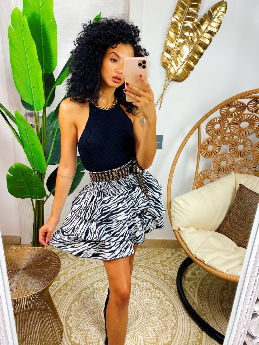 Top a costine in cotone medio pesante con catena al collo. Lunghezza regolare in vita.