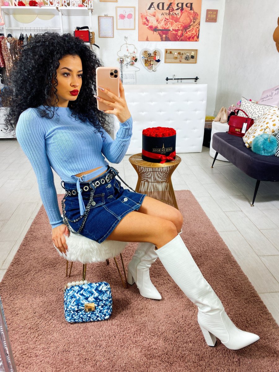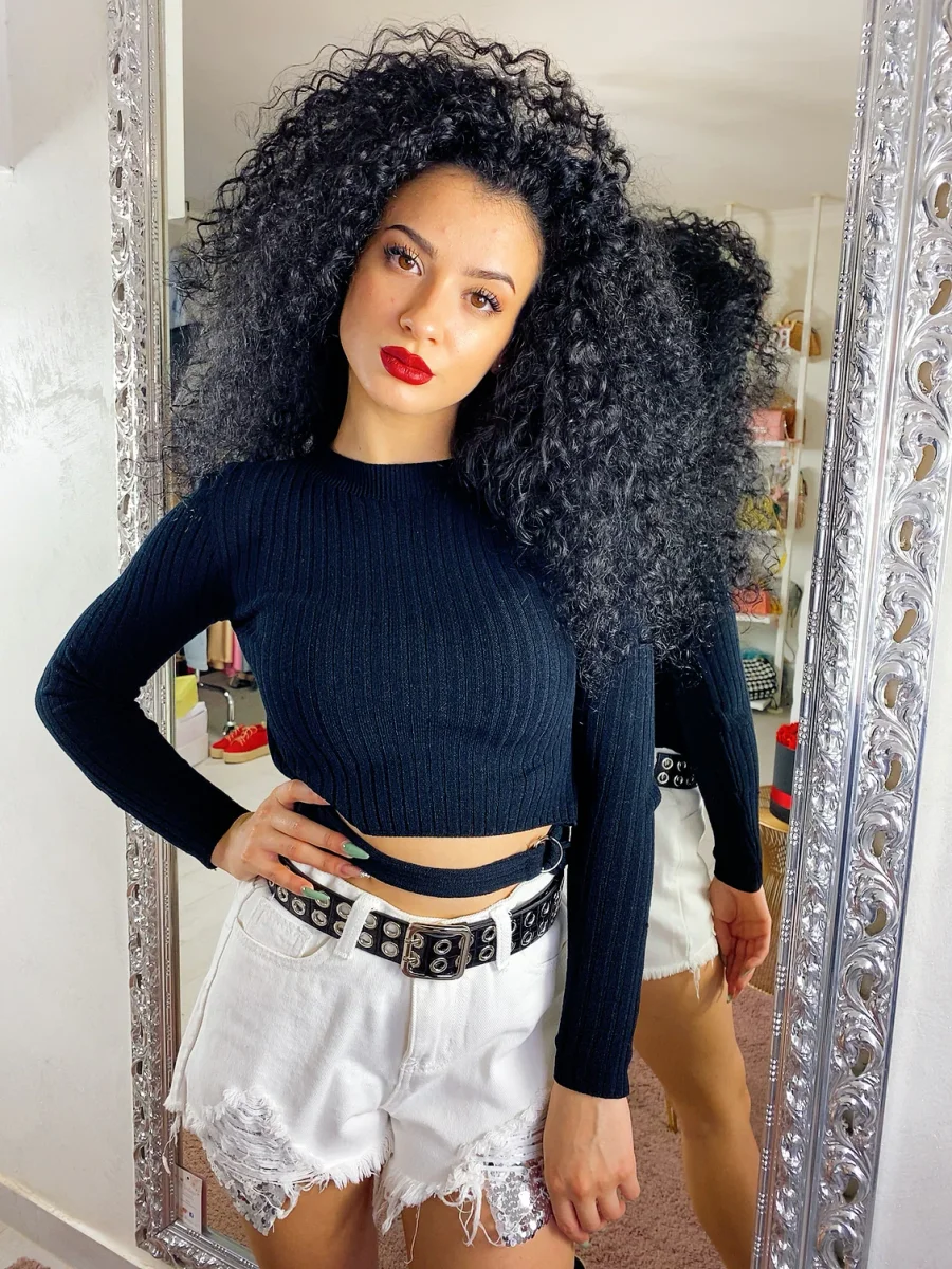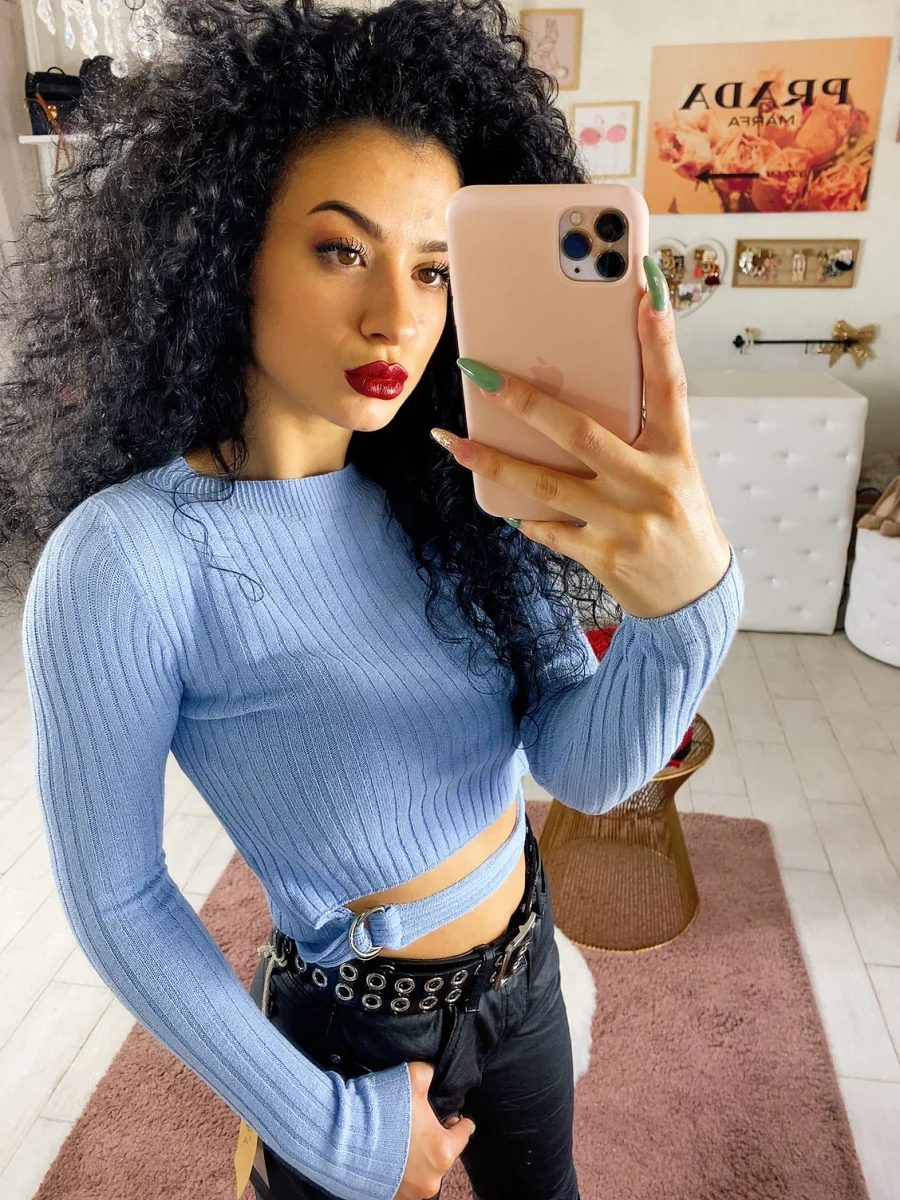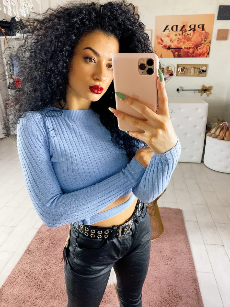 Blusa o topna manica lunga leggermente in collo alto il tutto in tessuto primaverile con lacciò a cinghia regolabile.