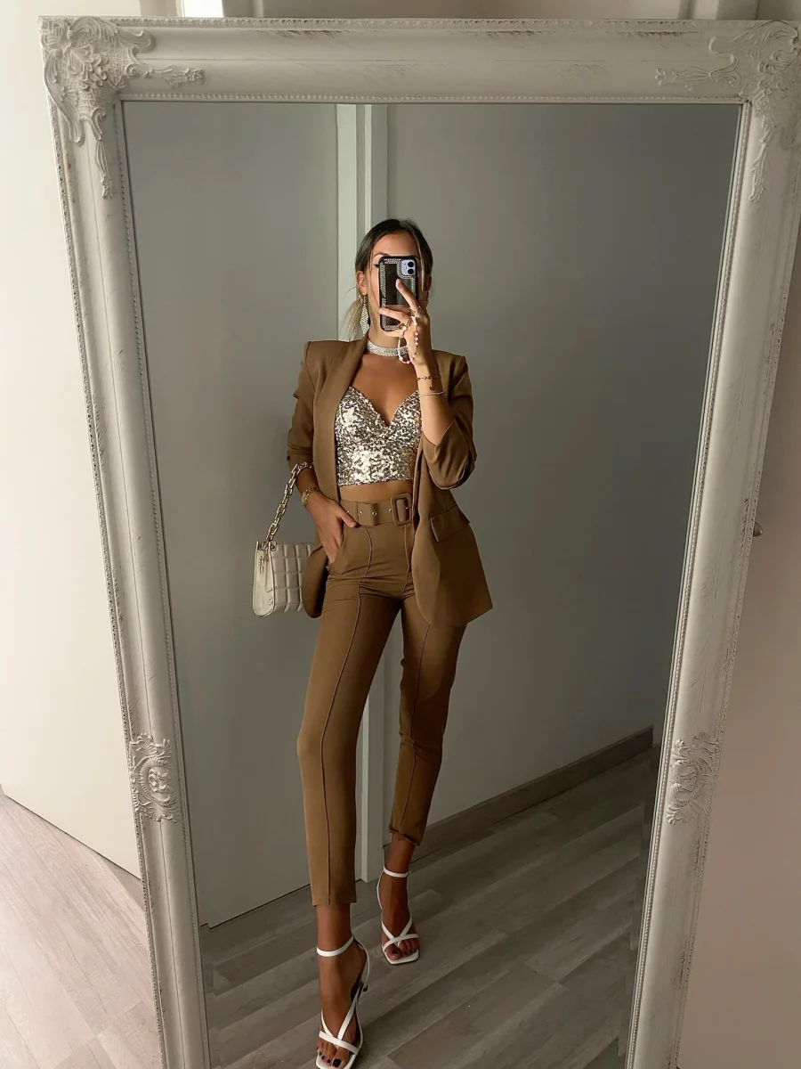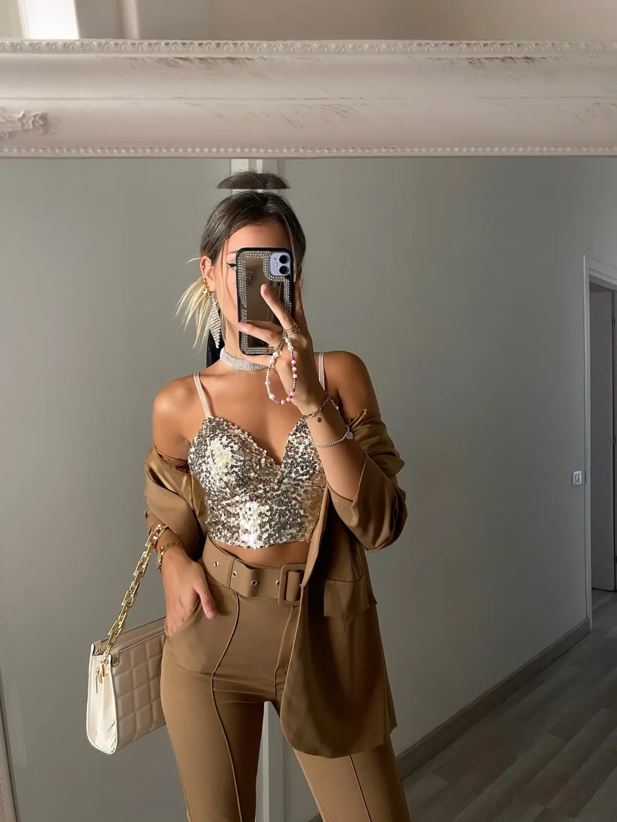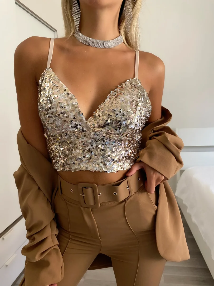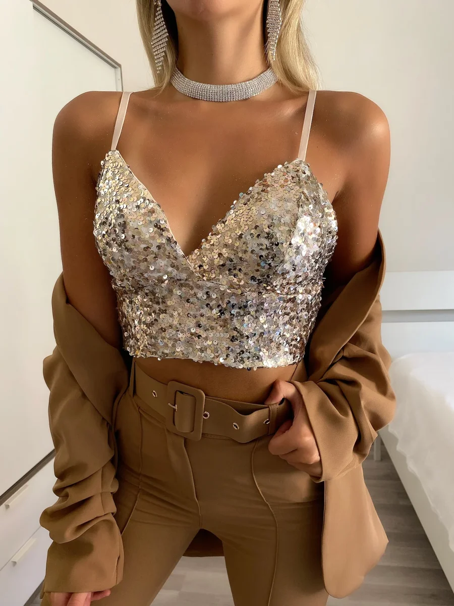 Top con coppe e spalline regolabili completamene ricoperto di paillettes